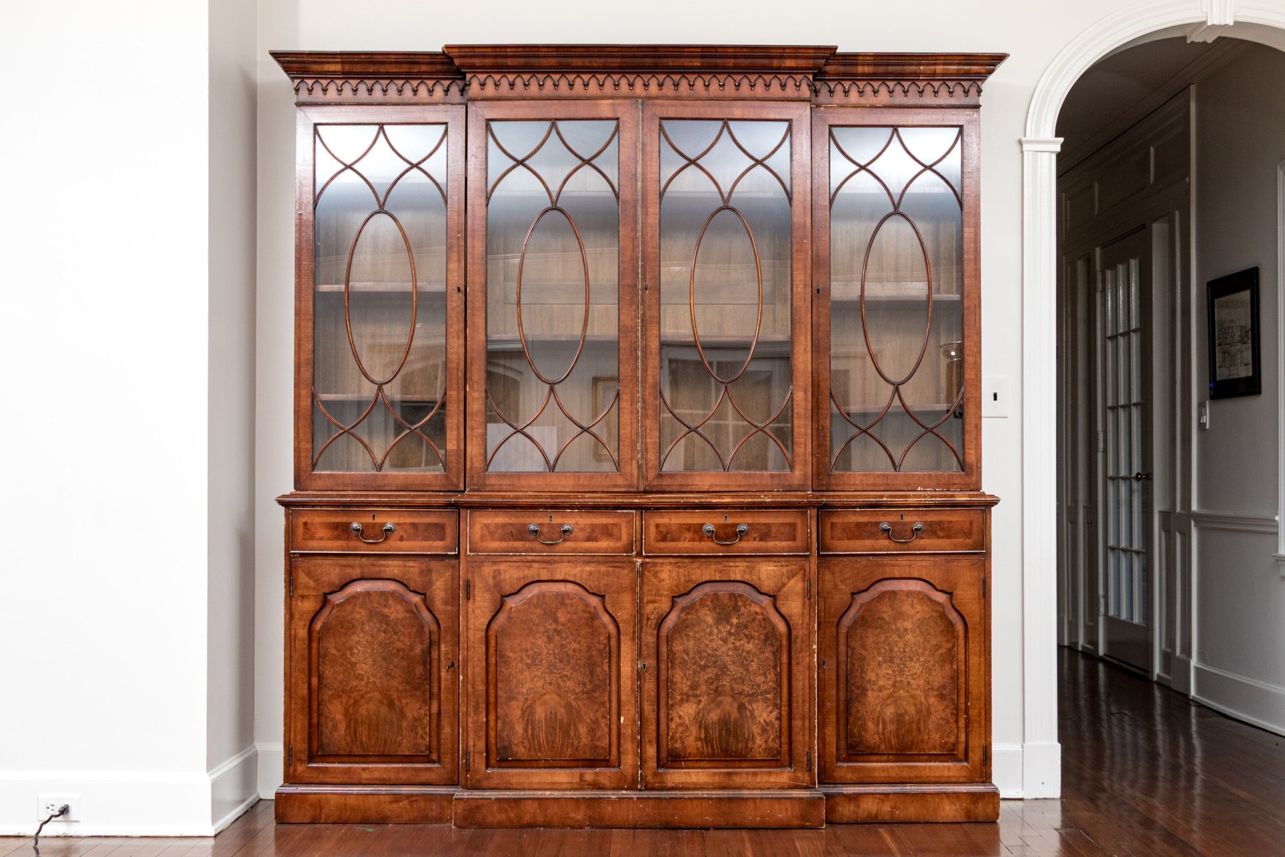 Georgian Style Burl Veneered Breakfront, As-is #456585. Black Rock Galleries provides high end estate liquidation services through online estate auctions and a 50,000 sq ft designer showroom. estate liquidator, estate sale, online auction, antiques, fine art, liquidation, clean outs, auction, consignment, interior design, fine jewelry, collectibles, appraisals, estate appraisals, estate services, decor, furniture, furniture consignment, antique center, consignment shop. We offer appraisal services and specialize in fine art, jewelry, antiques and decorative arts. Sell with us. Black Rock Galleries is the tri-state's largest estate liquidator serving New England and the greater New York City area. We are the trusted source for expert appraisals, auction services, estate sales, and consignments. Black Rock Galleries is the east coast's largest and most trusted estate liquidator, with locations in Connecticut, greater Boston, MA and Raleigh, NC, Fairfield, Southport, Apex, TX. We are the best source for expert appraisals, auction services, estate sales and consignments. We have served thousands of families and estates with compassion, professionalism and expertise. BRG works with attorneys, executors, realtors and families to bring the greatest return on personal and estate property in the current market. Our unique combination of services make us the easy choice to get the job done in a timely and stress-free manner. We are with you from the initial consultation to the final clean out. Our house-built online auction software platform offers clients a dynamic approach to liquidating their personal property. This venue is most successful in bringing the best return with the least amount of disruption for our clients. See our services page for a complete description of this offering. Georgian Style Burl Veneered Breakfront, As-is #456585