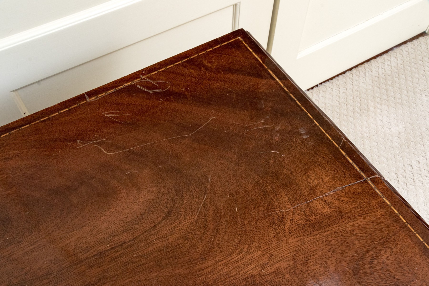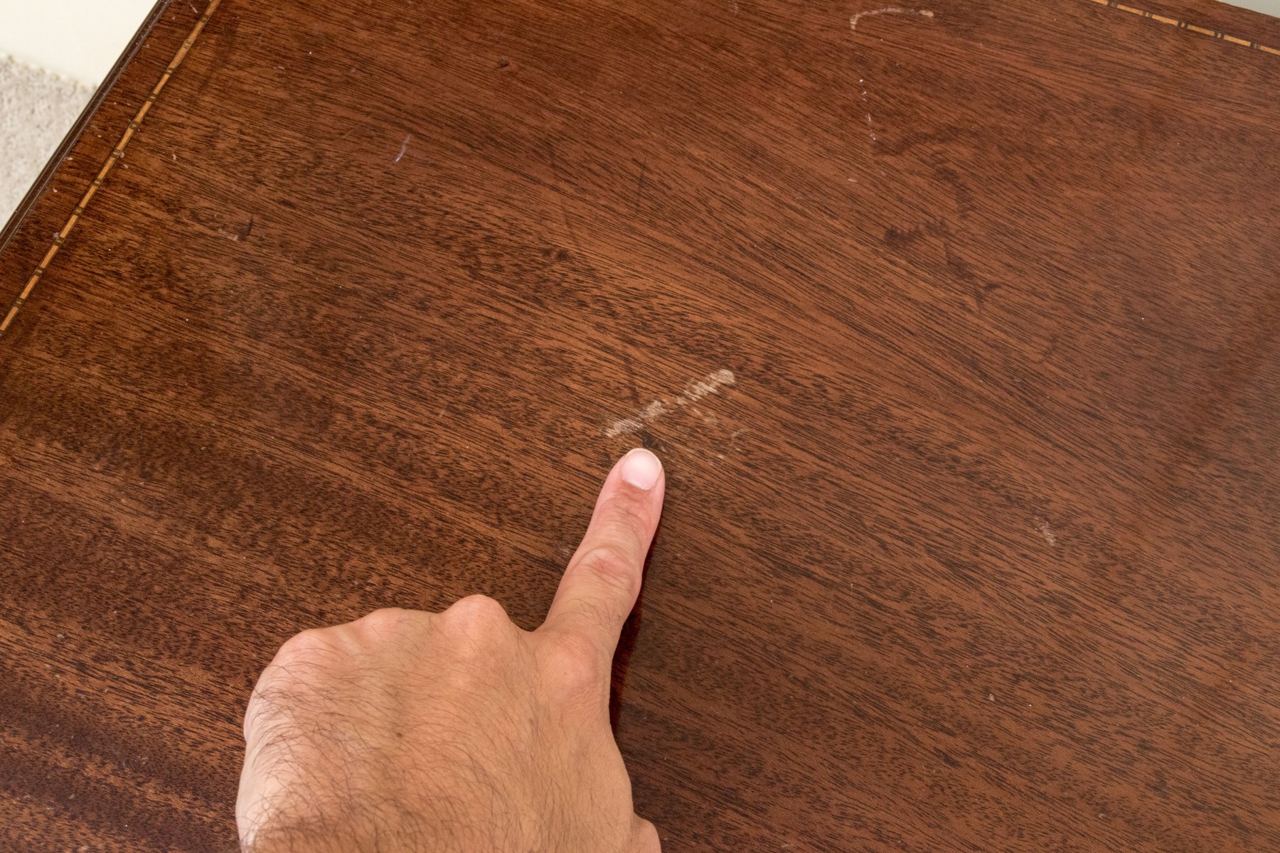 There is a crack / split to the table top with some surface scratches and wear commensurate with age and use.
