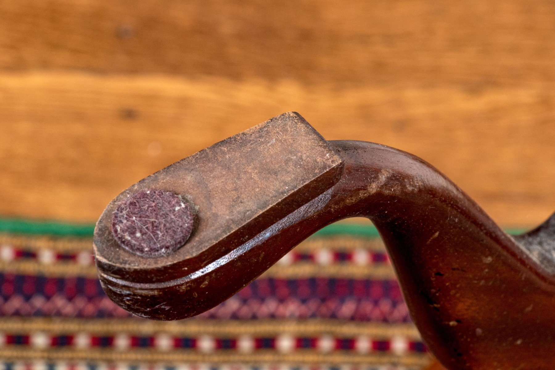 There is some crackling to the finish on the mahogany top. Tilt top mechanism wobbles slightly