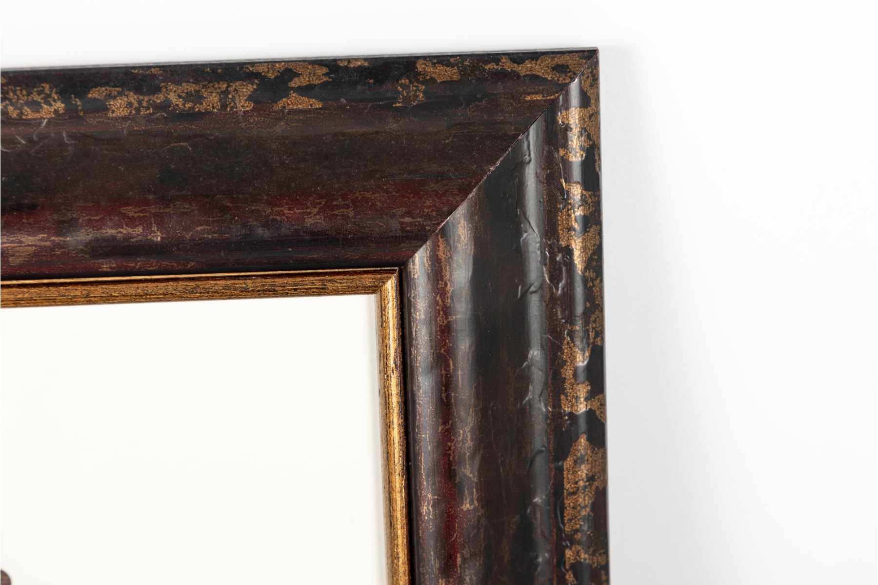 Displays well. The frame has an intentionally distressed appearance that beautifully compliments the subject.