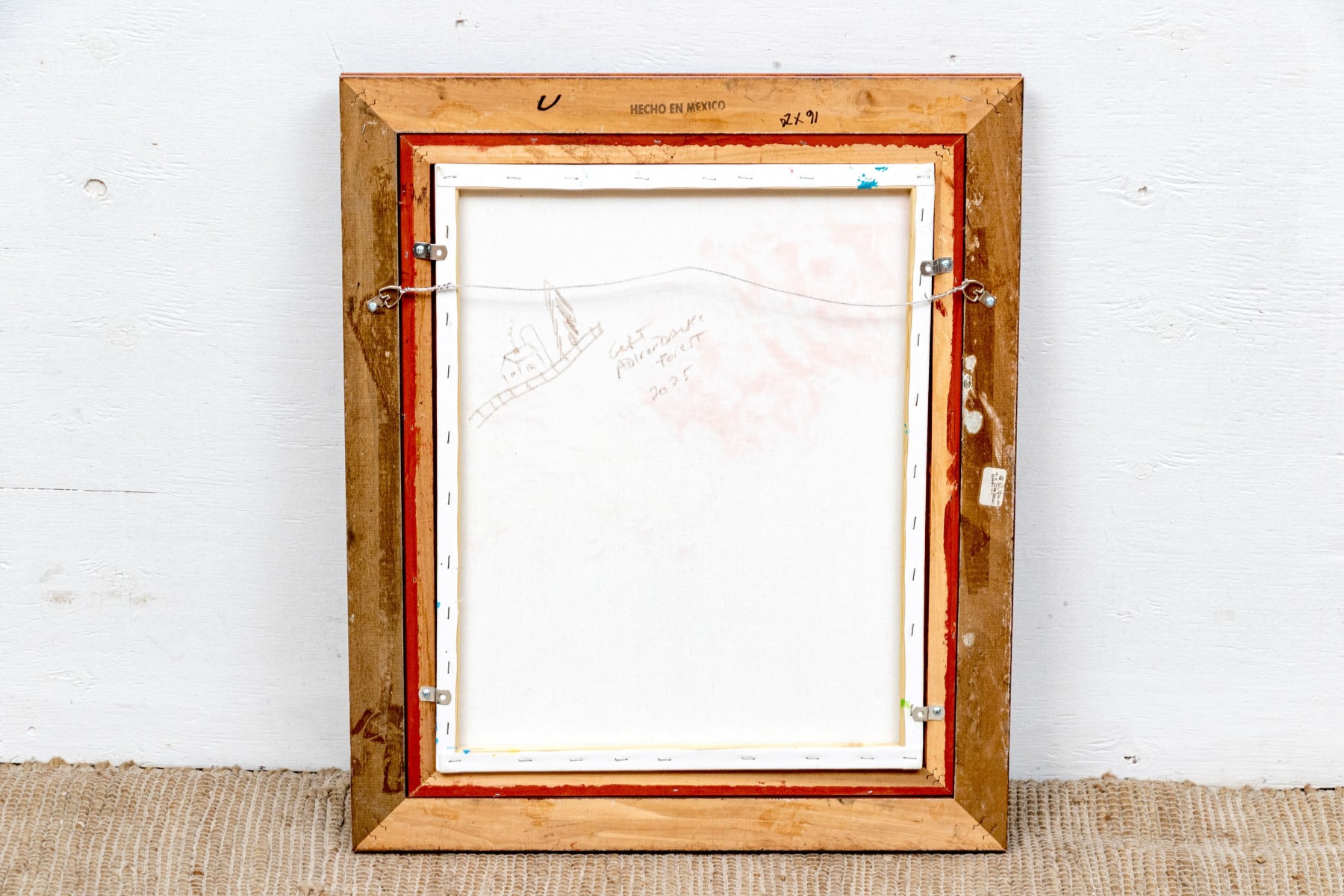 Small damage to the veneered liner on frame in lower left corner. Aside from the small area of damage the painting and frame present very well.