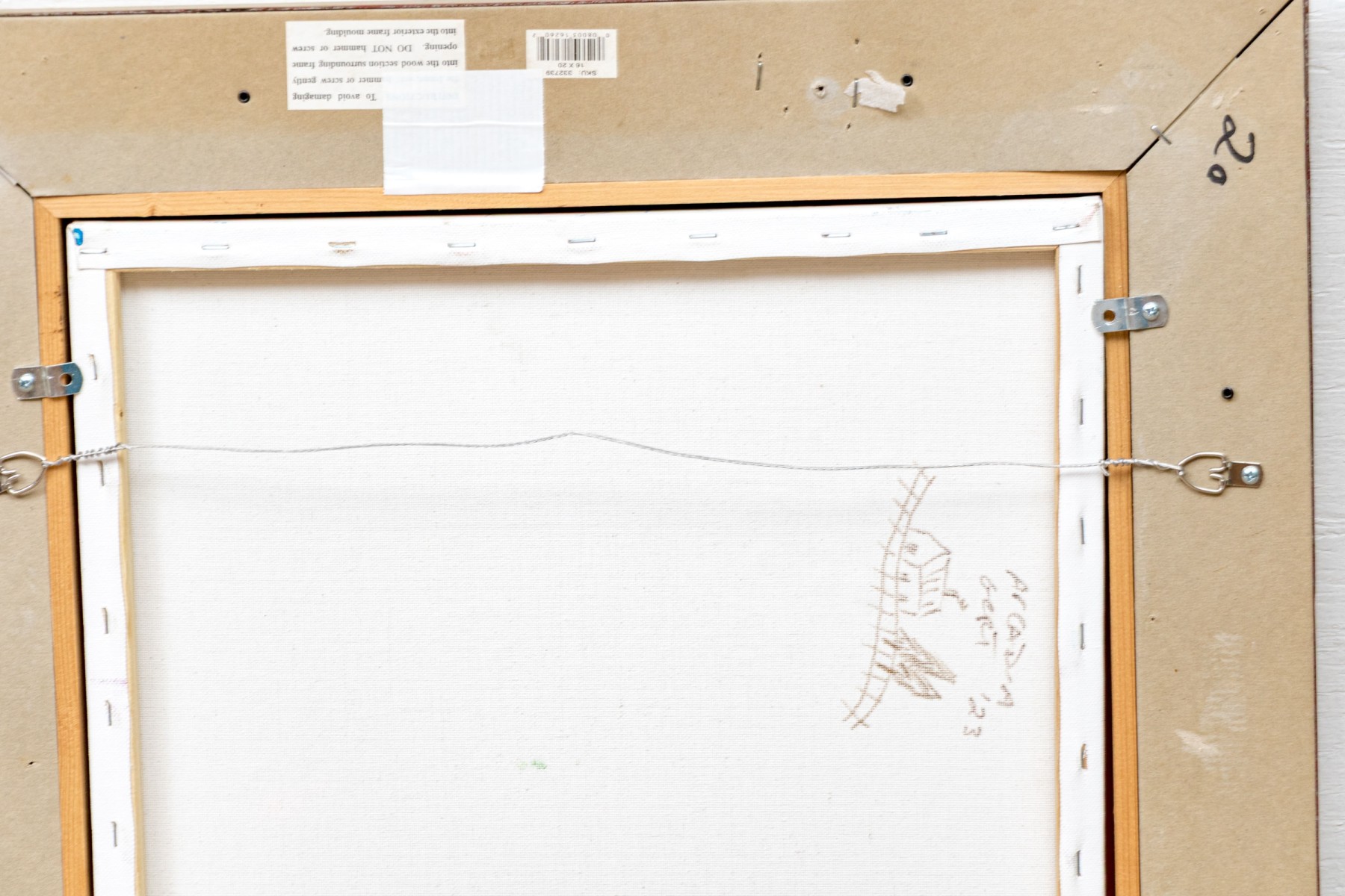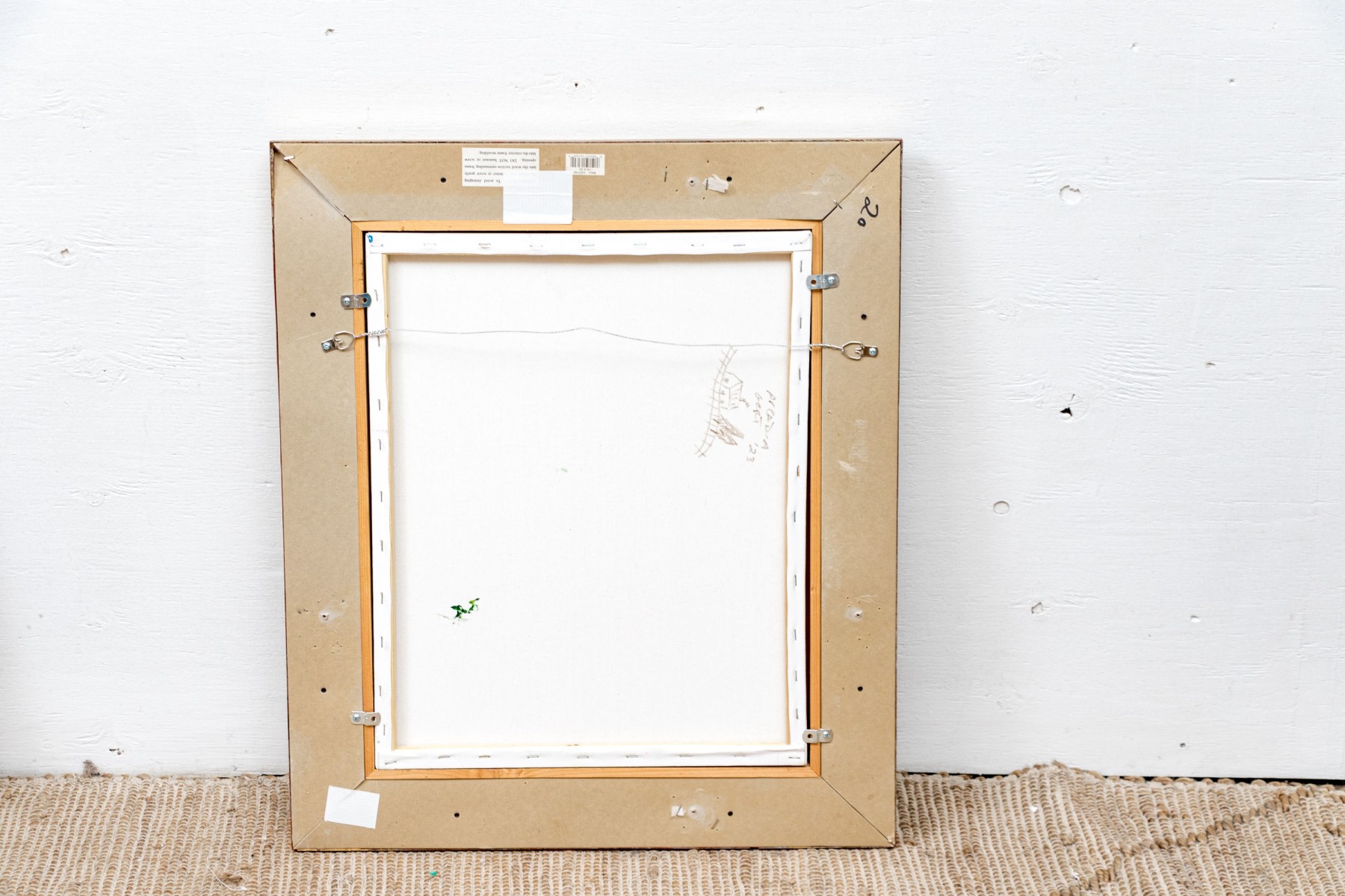 Good overall. The upper left cardboard section on the backing of the frame verso is out of place but when hung on wall would be not noticeable and could be fixed. Painting presents wonderfully.