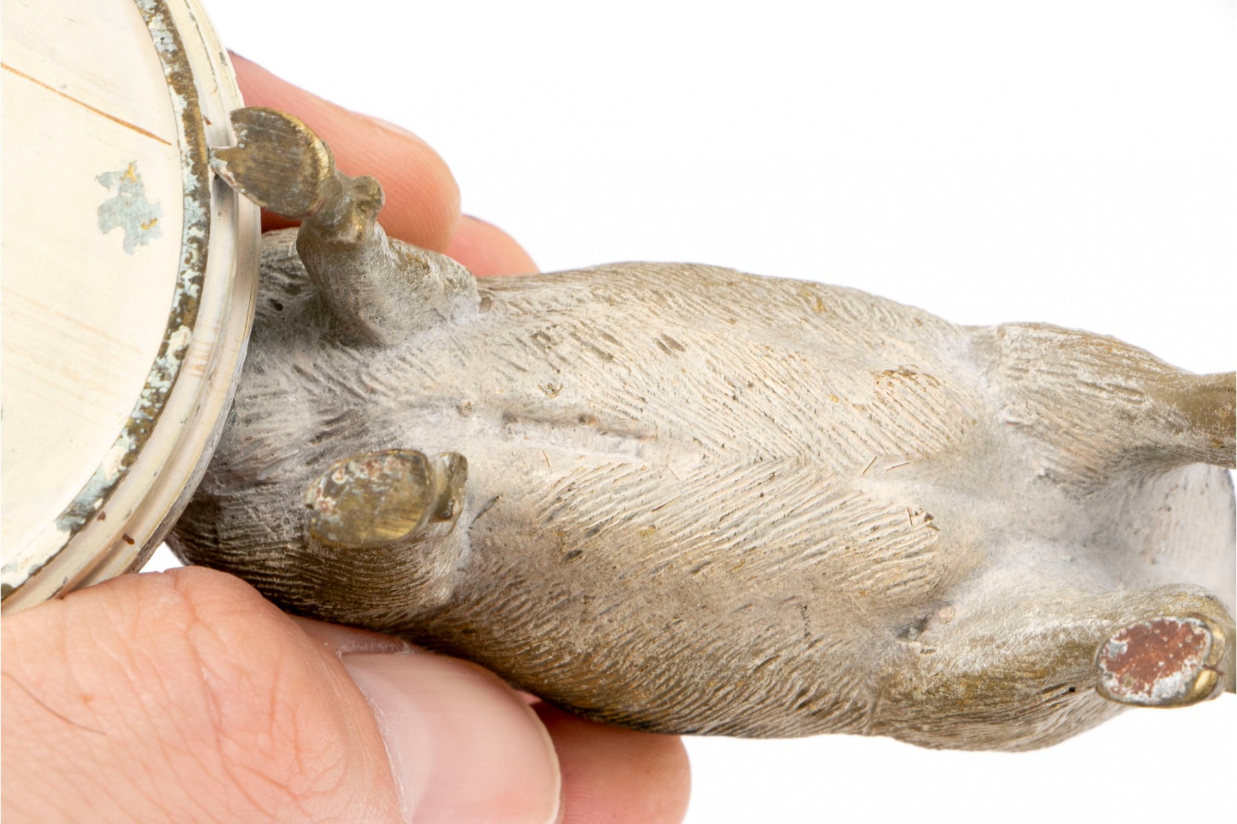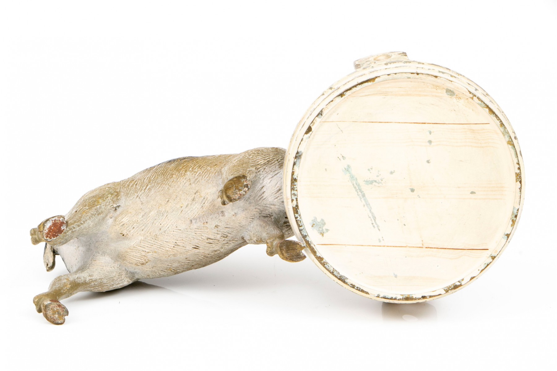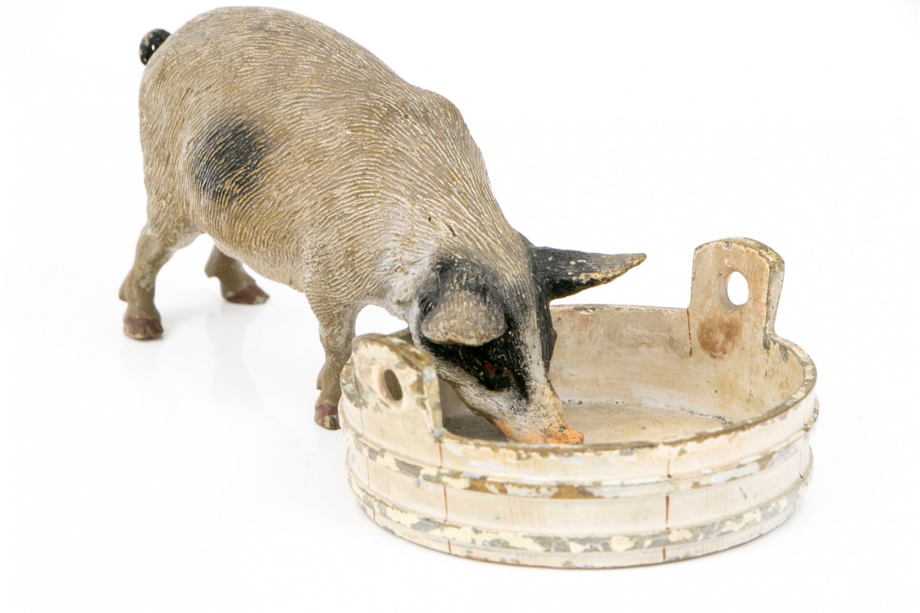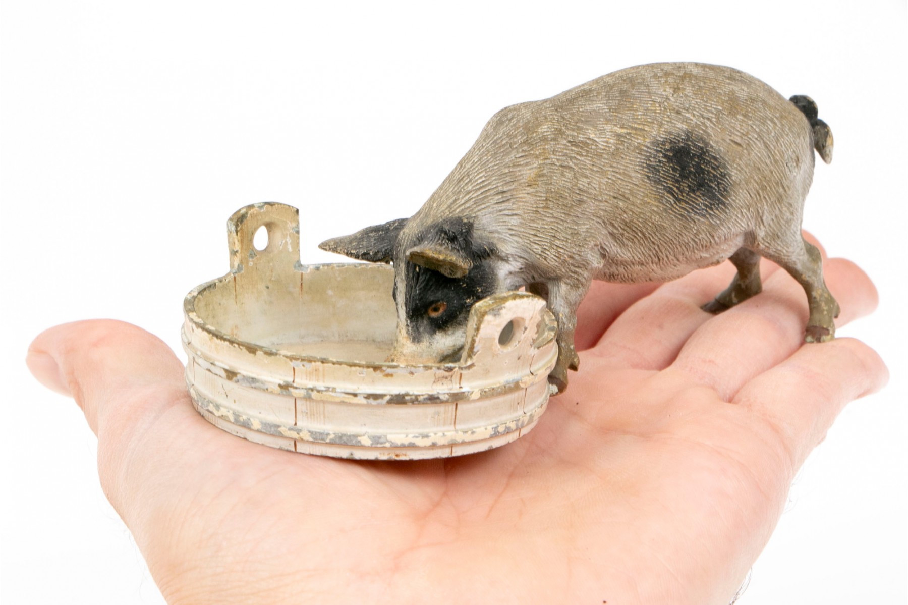 Cold painted vienna bronze of a pig feeding. Incised mark Geschutzt on verso.