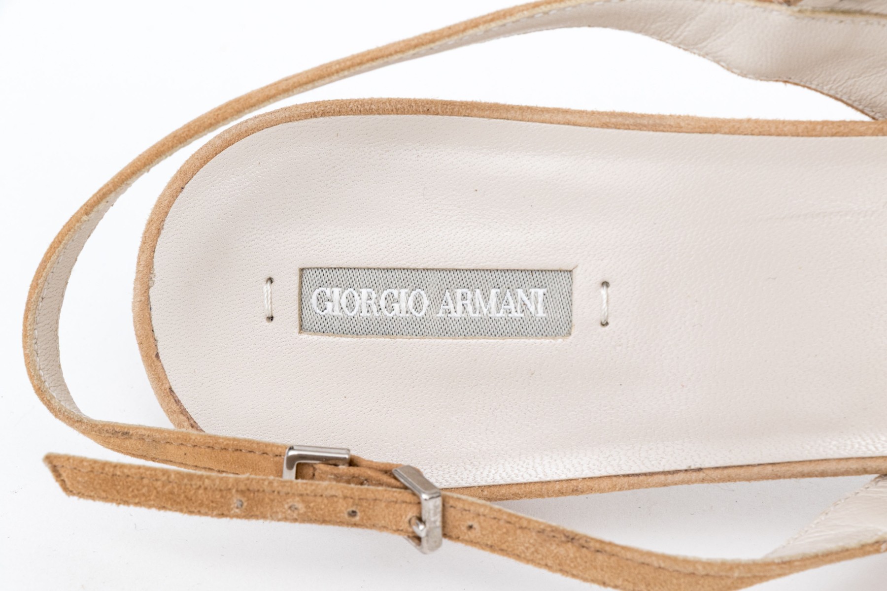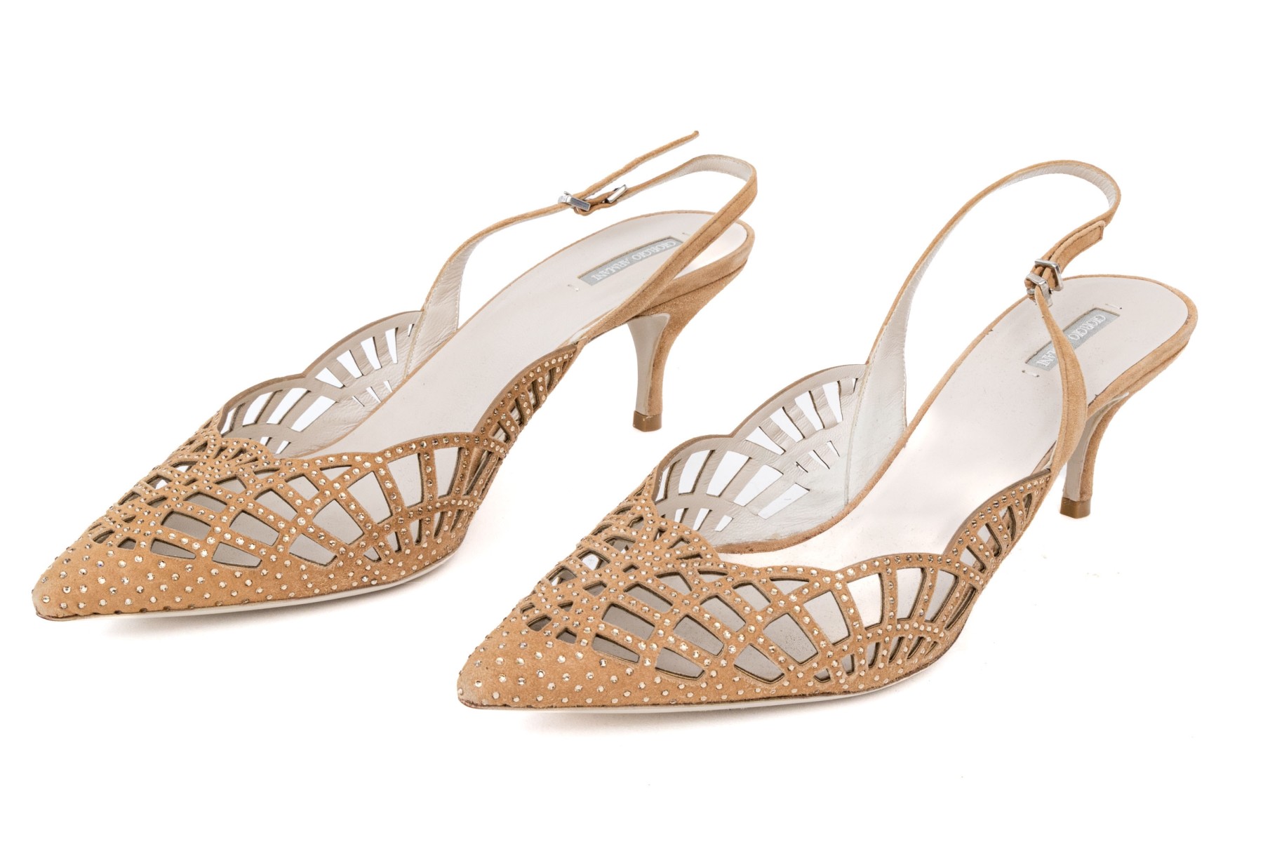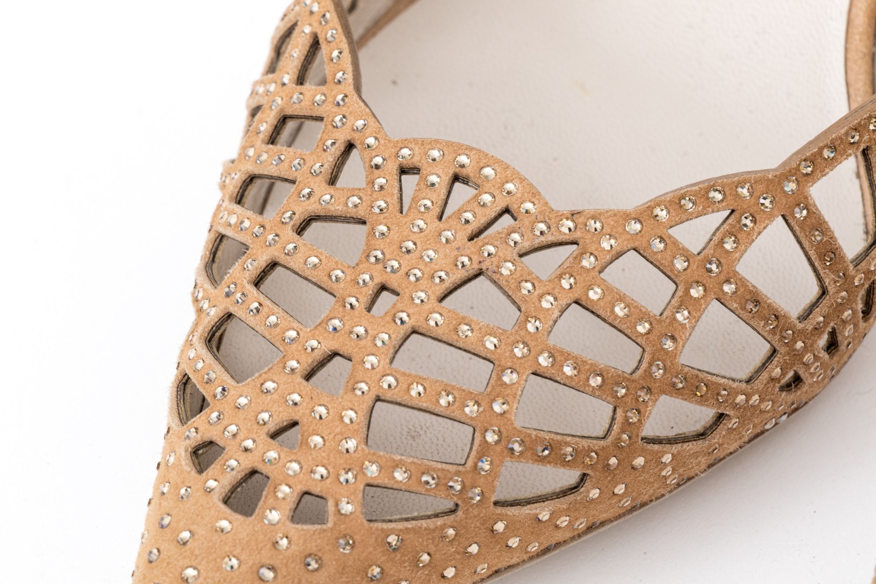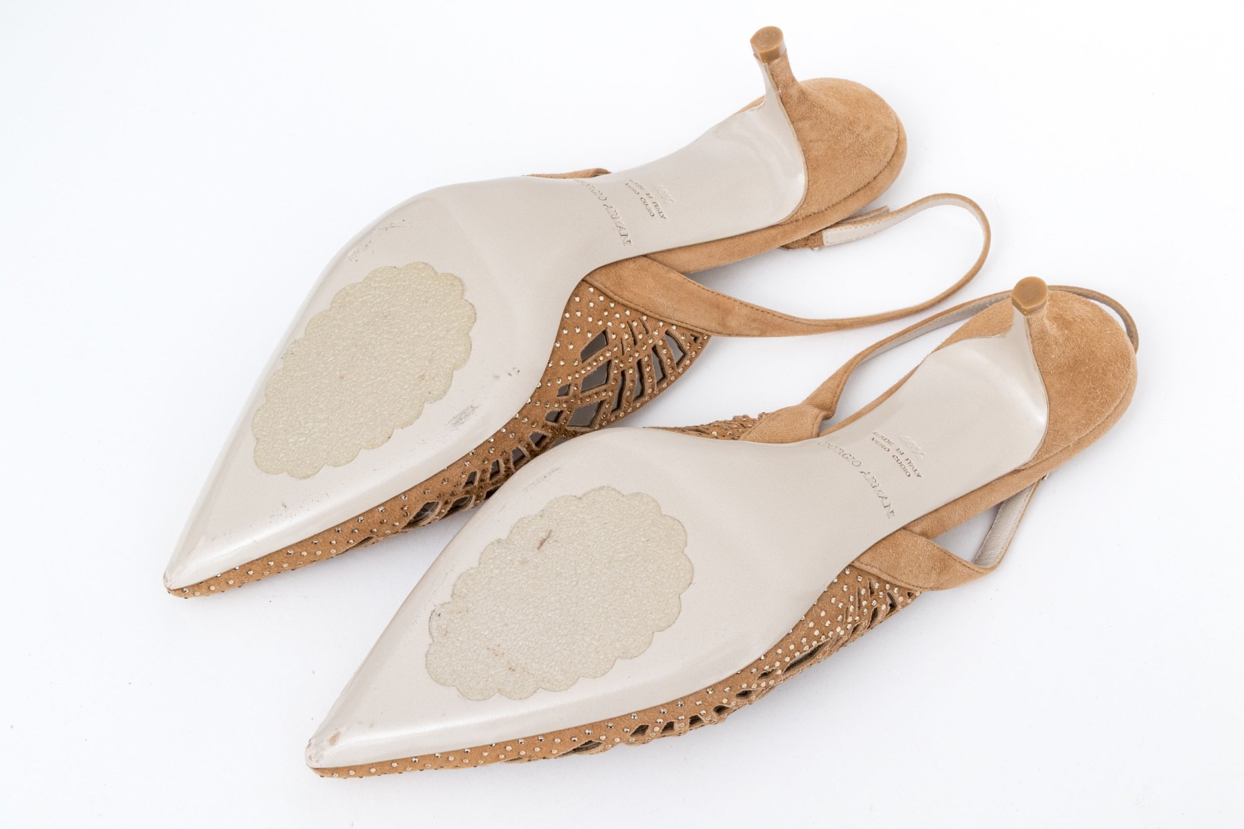 Giorgio Armani lovely pierced tan suede and rhinestone slingbacks, size 40 1/2