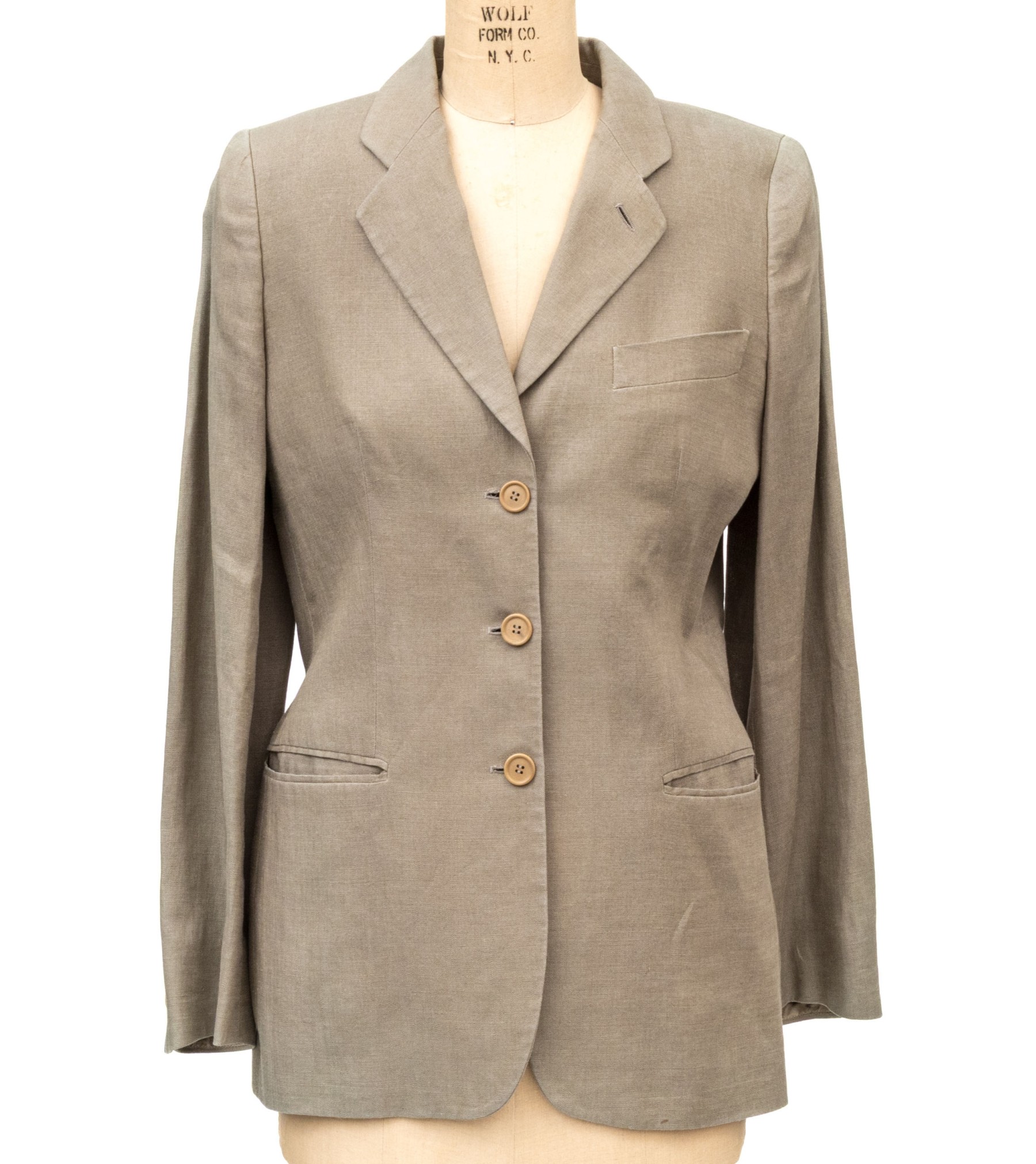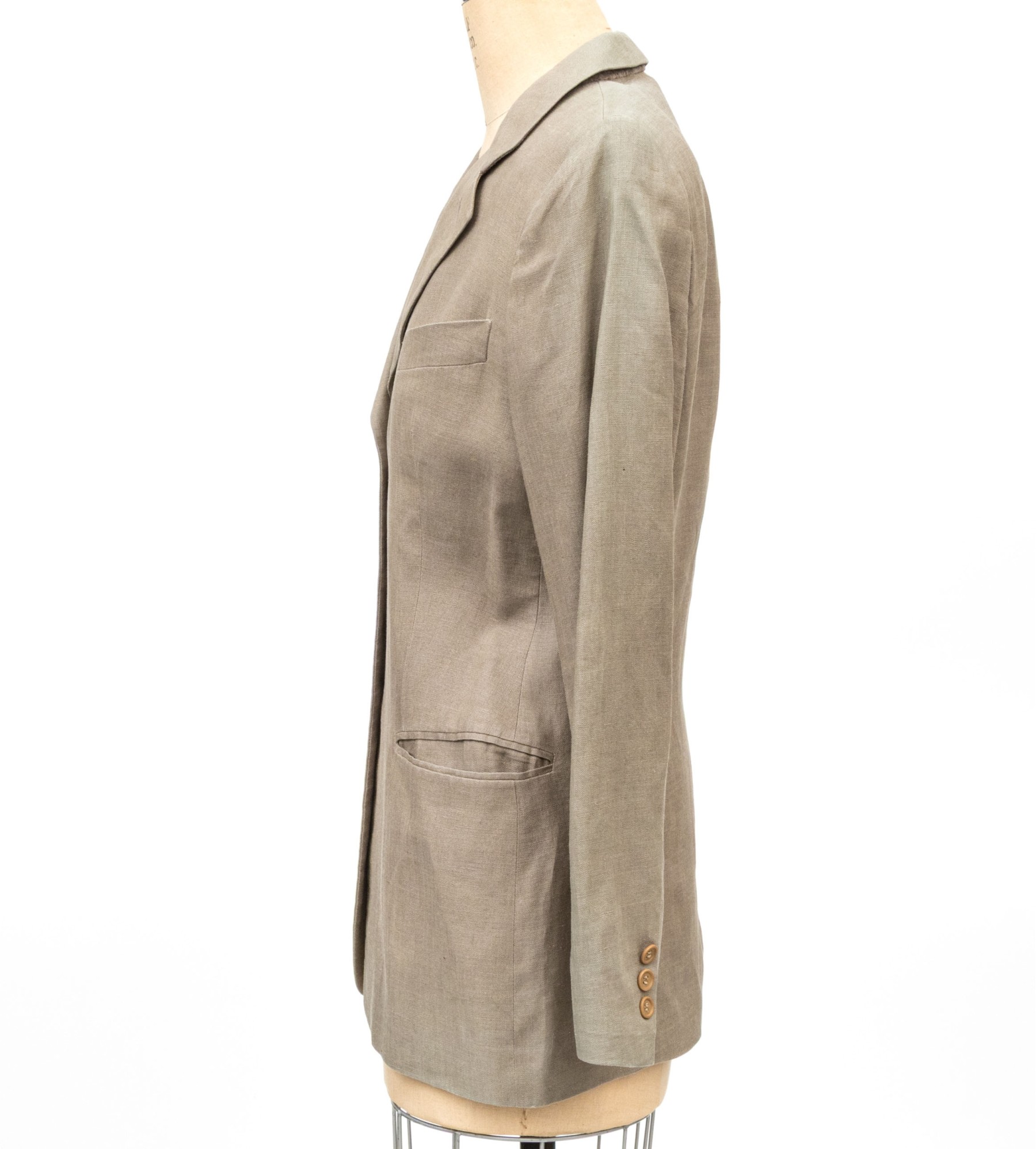 Giorgio Armani vintage black label tan linen button front blazer