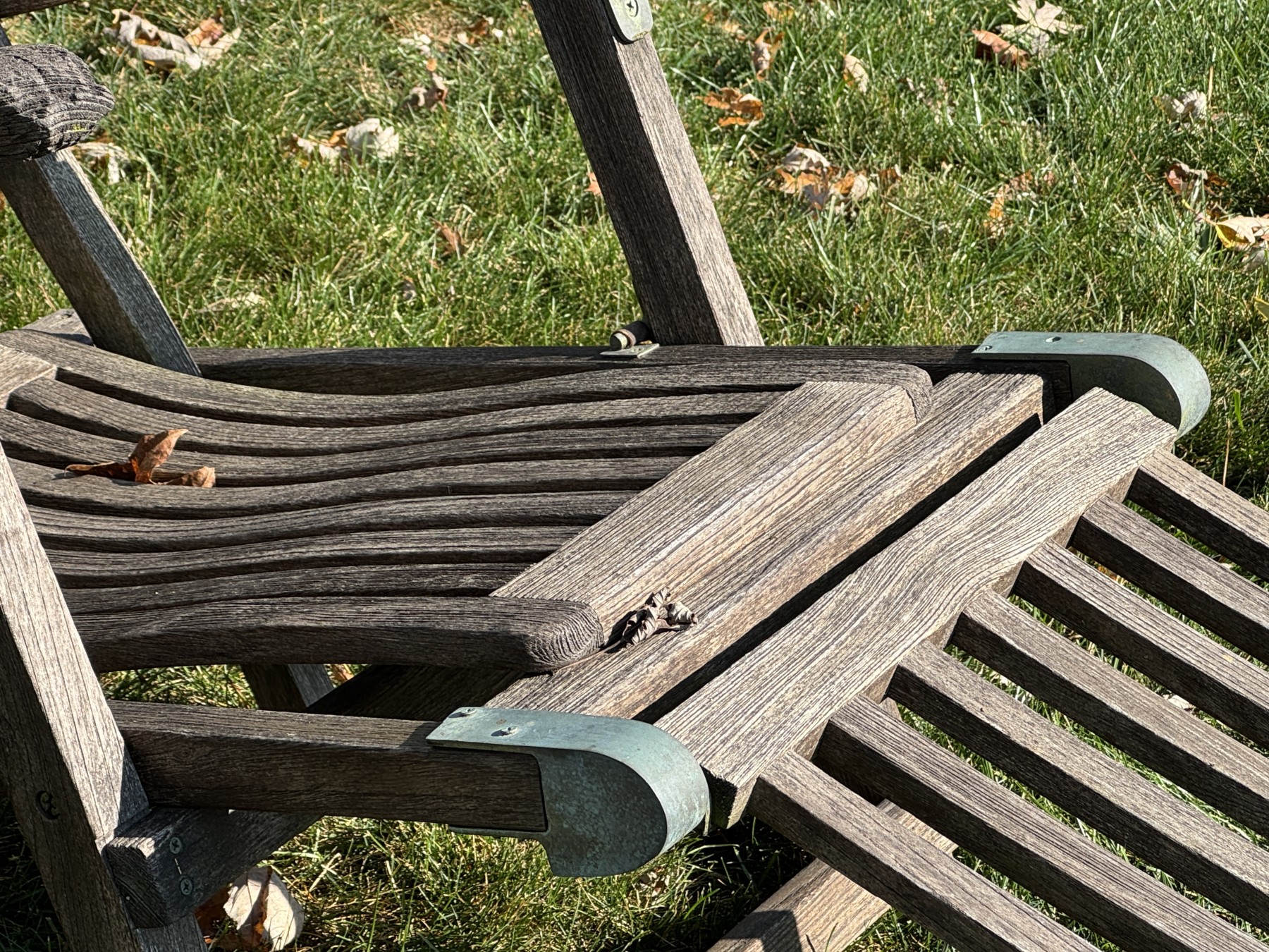 Chipping and losses to the arms and wear to the frames and metallic mounts consistent with outdoor use. Stain spots to upholstered cushion but overall a great outdoor lounging set.
