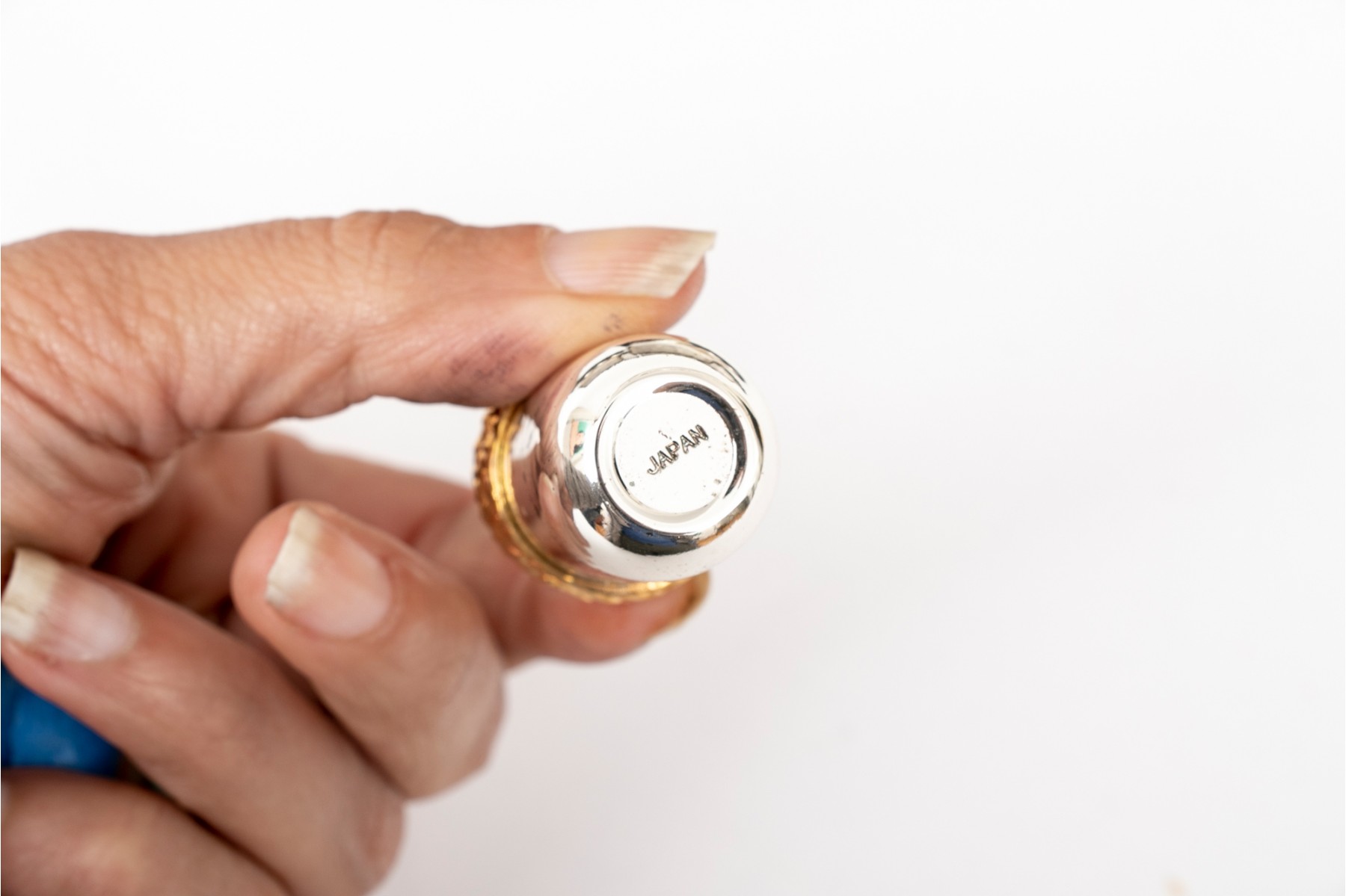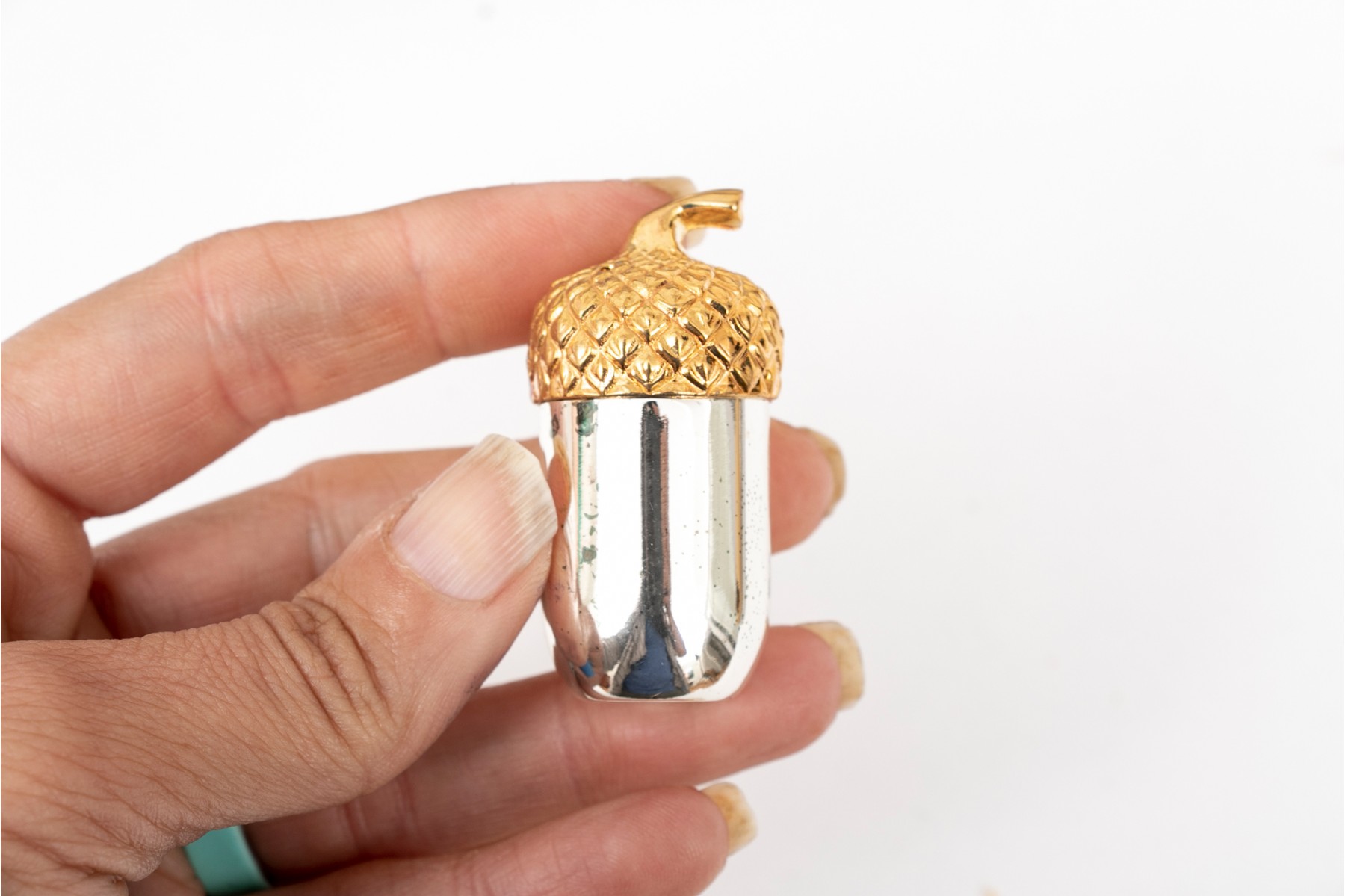 A total of 24 acorn form shakers with silver and gold plate, embossed cover. A total of 6 boxes with 4 shakers in each box. Stamped Japan on verso.