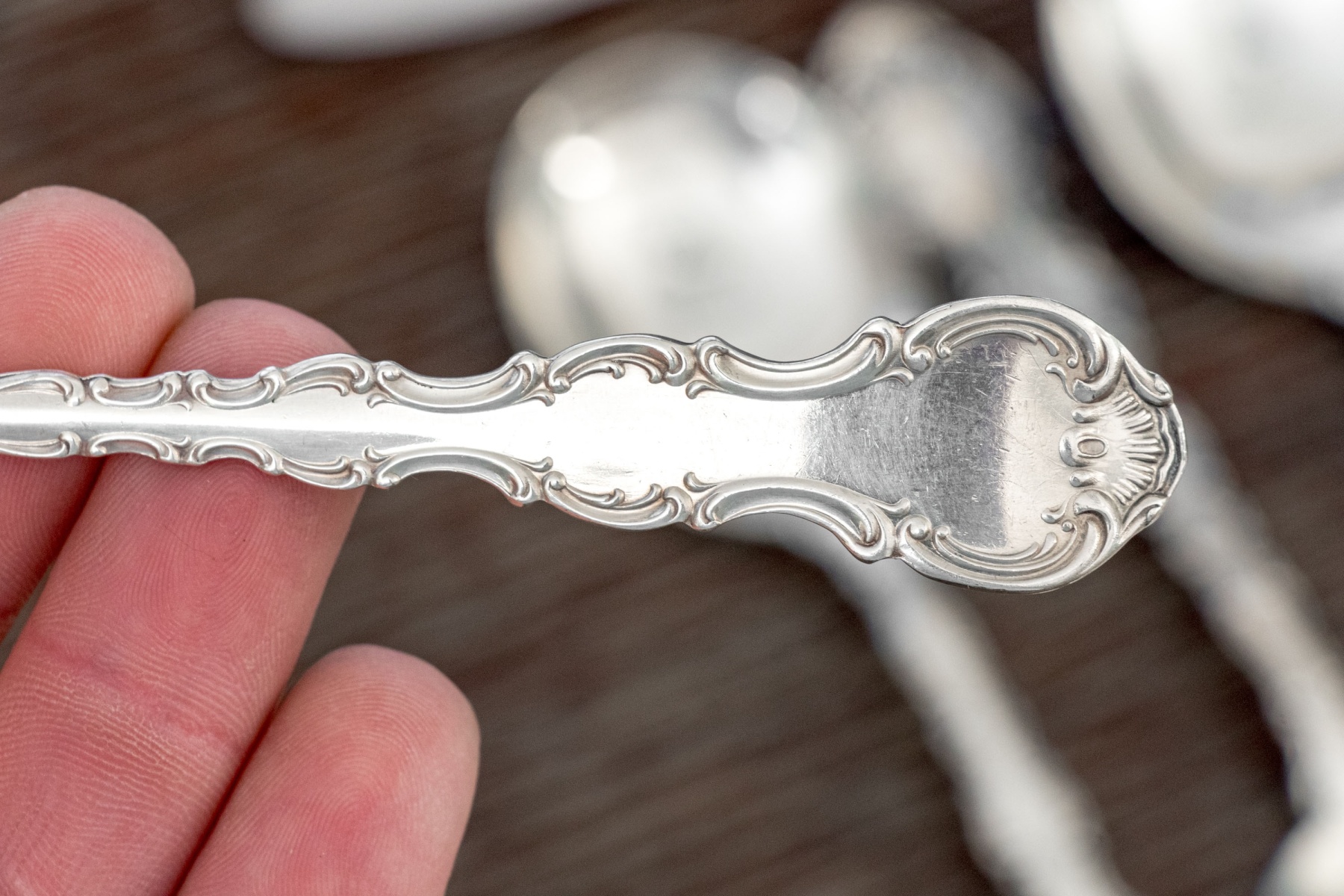 - 12 cream spoons, 6 1/8” L, 14.86 Ozt.