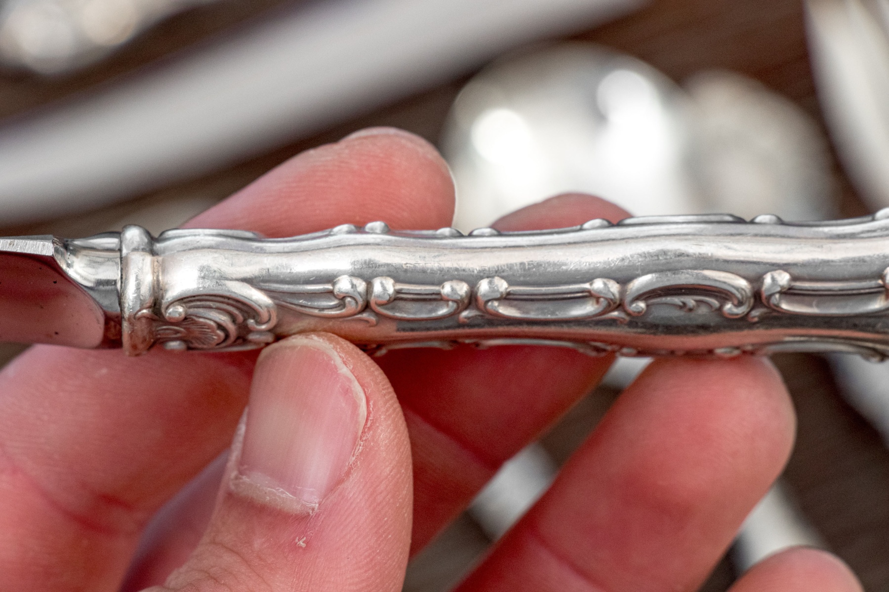 Gentle wear and tarnish. Overall a fantastic and quality flatware set.