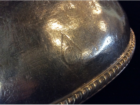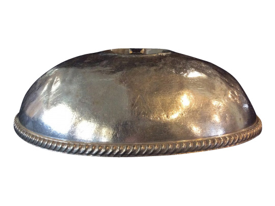 Gorham silver sodlered entree cover bearing the logo for the Carlyle Hotel, c. 1930s, oblong, dome top with gadrooned edge, expected sigsn of use including some surface scratching and sporadic nicking.
