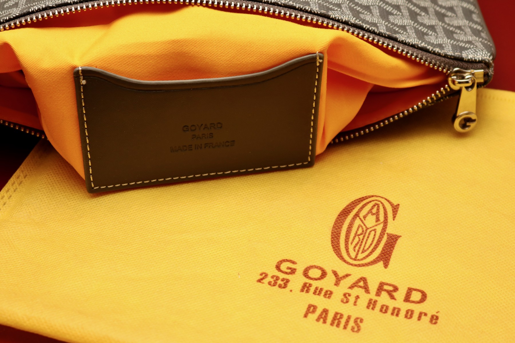 Marked with “Goyard Paris” and “Made in France” details throughout, this piece exudes elegance and utility. Highly sought after and rarely available in grey, this versatile zip pouch is ideal as a clutch, travel companion, or luxury desk accessory. Perfect for gifting, travel, or polishing a curated wardrobe with timeless Parisian flair.