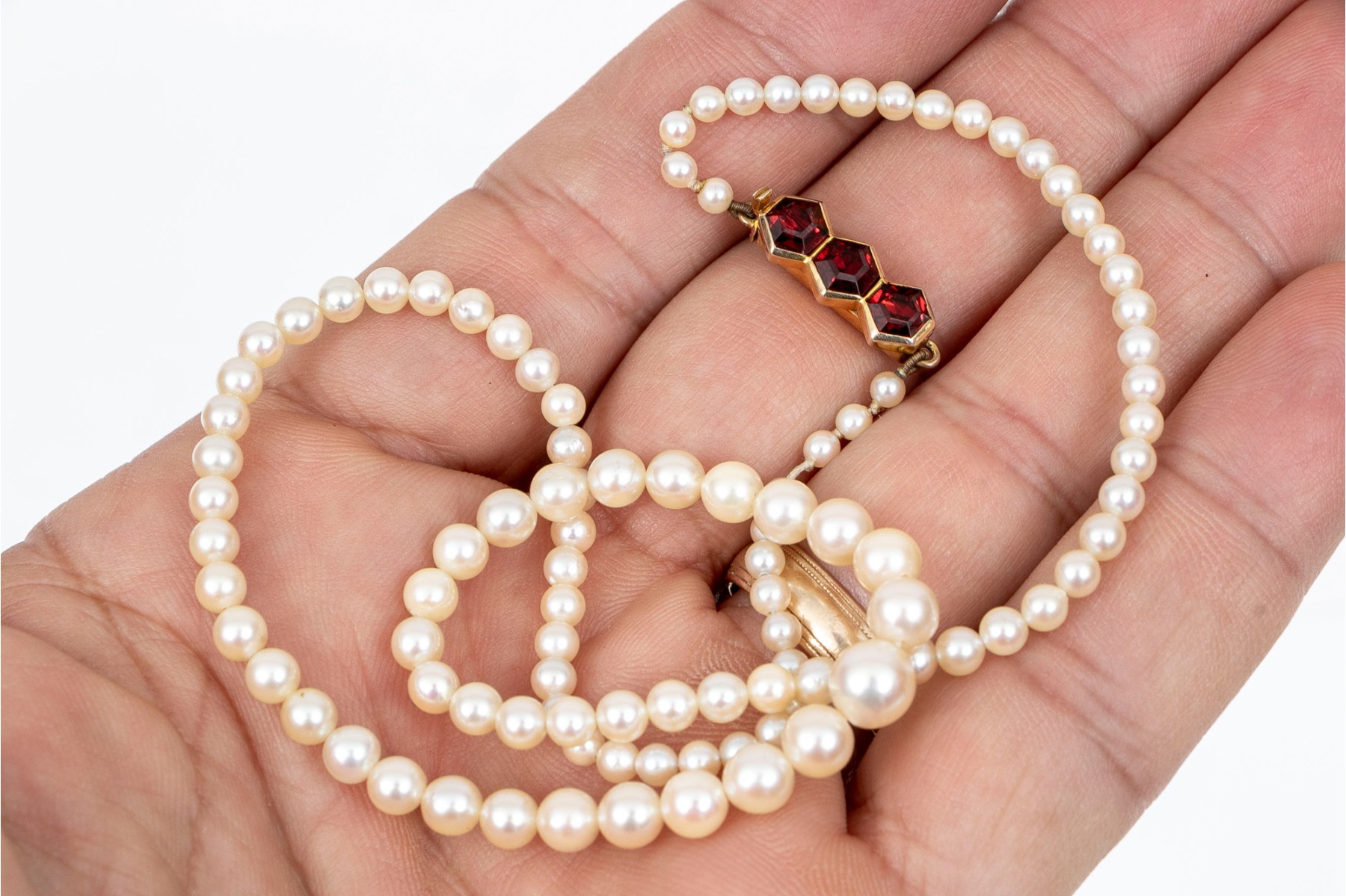 Graduated Cultured Pearl Necklace, 14K And Garnet Clasp #291681. Black Rock Galleries provides high end estate liquidation services through online estate auctions and a 50,000 sq ft designer showroom. estate liquidator, estate sale, online auction, antiques, fine art, liquidation, clean outs, auction, consignment, interior design, fine jewelry, collectibles, appraisals, estate appraisals, estate services, decor, furniture, furniture consignment, antique center, consignment shop. We offer appraisal services and specialize in fine art, jewelry, antiques and decorative arts. Sell with us. Black Rock Galleries is the tri-state's largest estate liquidator serving New England and the greater New York City area. We are the trusted source for expert appraisals, auction services, estate sales, and consignments. Black Rock Galleries is the east coast's largest and most trusted estate liquidator, with locations in Connecticut, greater Boston, MA and Raleigh, NC, Fairfield, Southport, Apex, TX. We are the best source for expert appraisals, auction services, estate sales and consignments. We have served thousands of families and estates with compassion, professionalism and expertise. BRG works with attorneys, executors, realtors and families to bring the greatest return on personal and estate property in the current market. Our unique combination of services make us the easy choice to get the job done in a timely and stress-free manner. We are with you from the initial consultation to the final clean out. Our house-built online auction software platform offers clients a dynamic approach to liquidating their personal property. This venue is most successful in bringing the best return with the least amount of disruption for our clients. See our services page for a complete description of this offering. Graduated Cultured Pearl Necklace, 14K And Garnet Clasp #291681