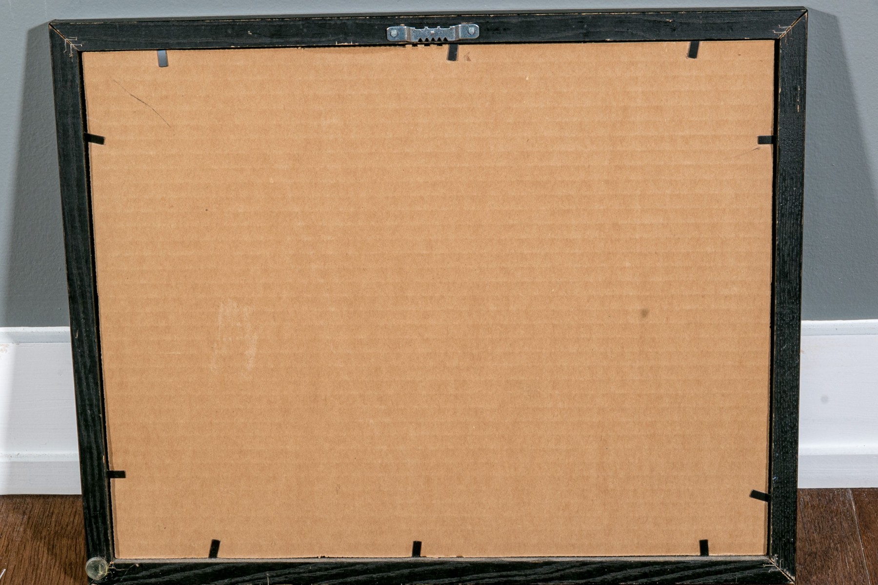 Apparently unsigned. A seated female nude seen from the back as she dries her hair with a towel after the bath. Presented in a black painted wood frame with glass.