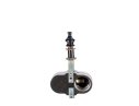 Brown on clear faux tortoise pattern on the twin light globe form lamp with faceted neck. Metal and brass hardware. Mounted on a black round base.