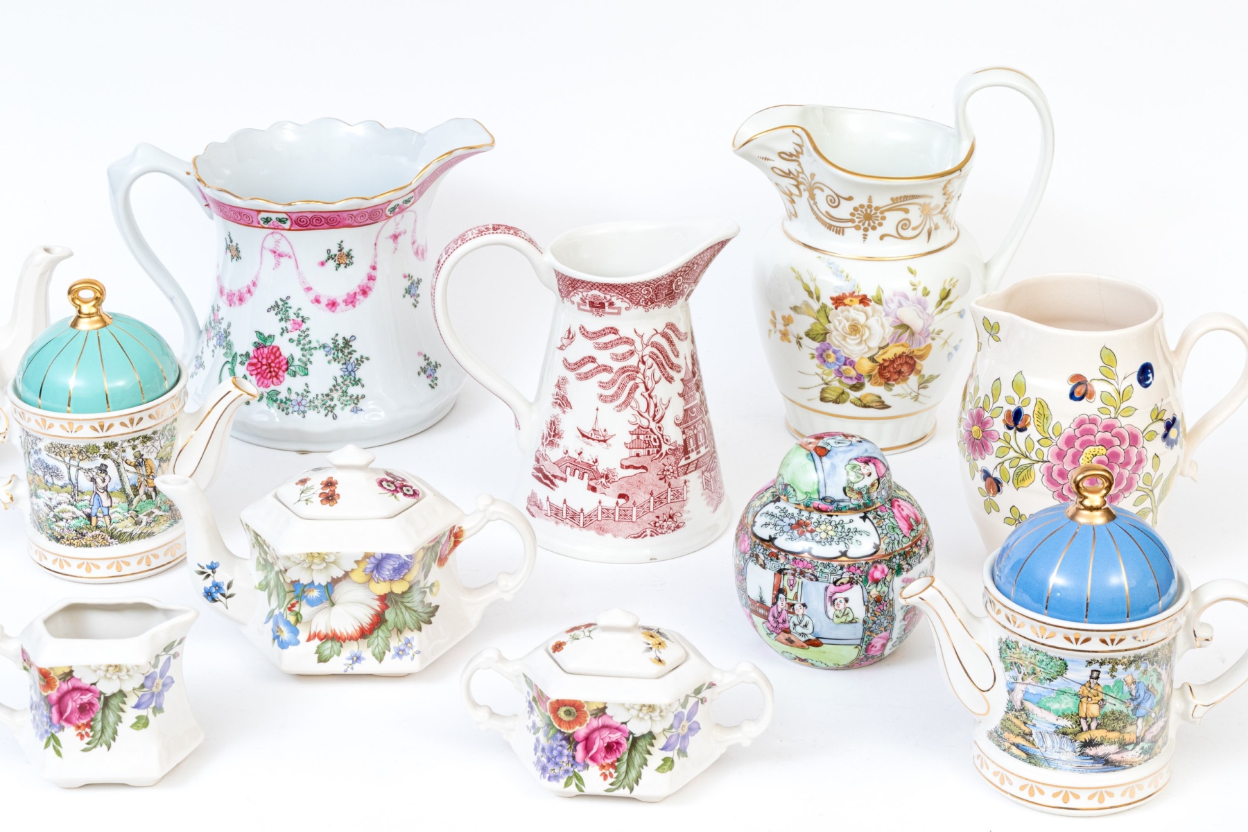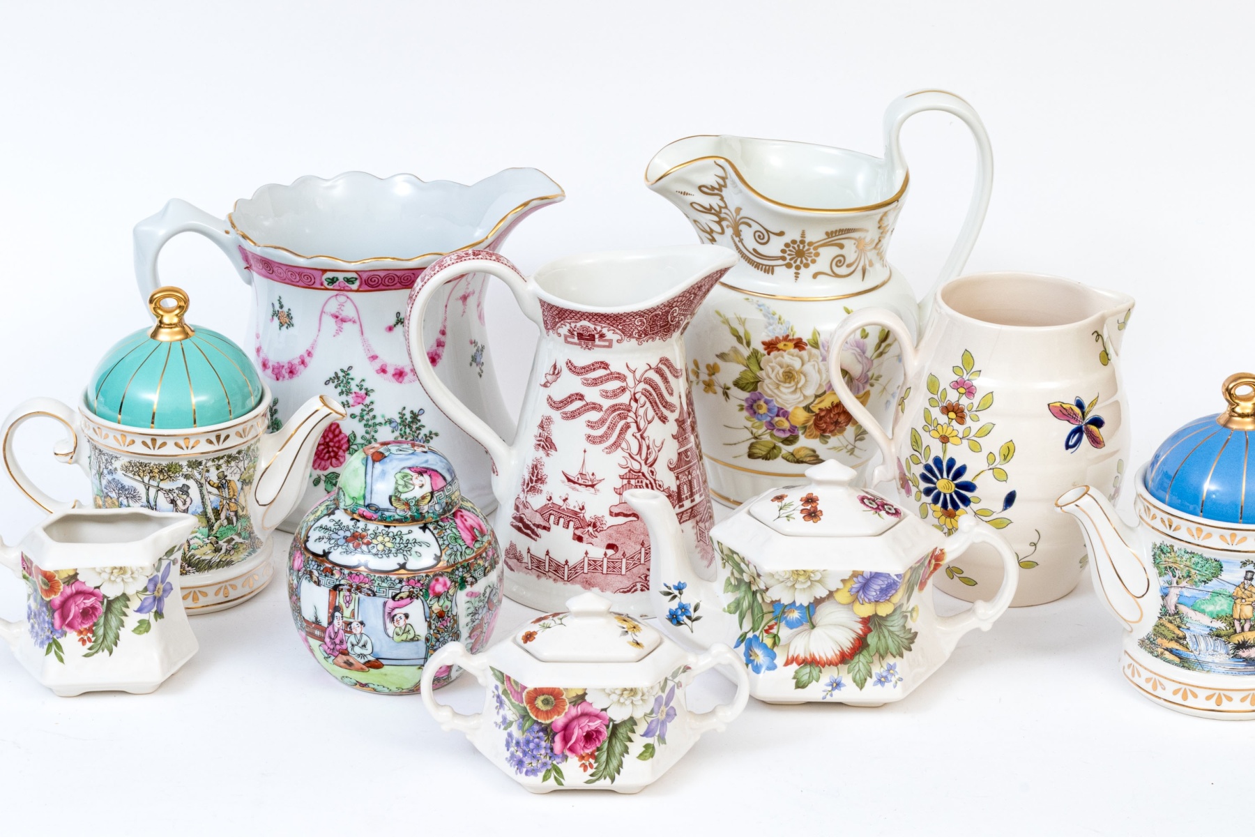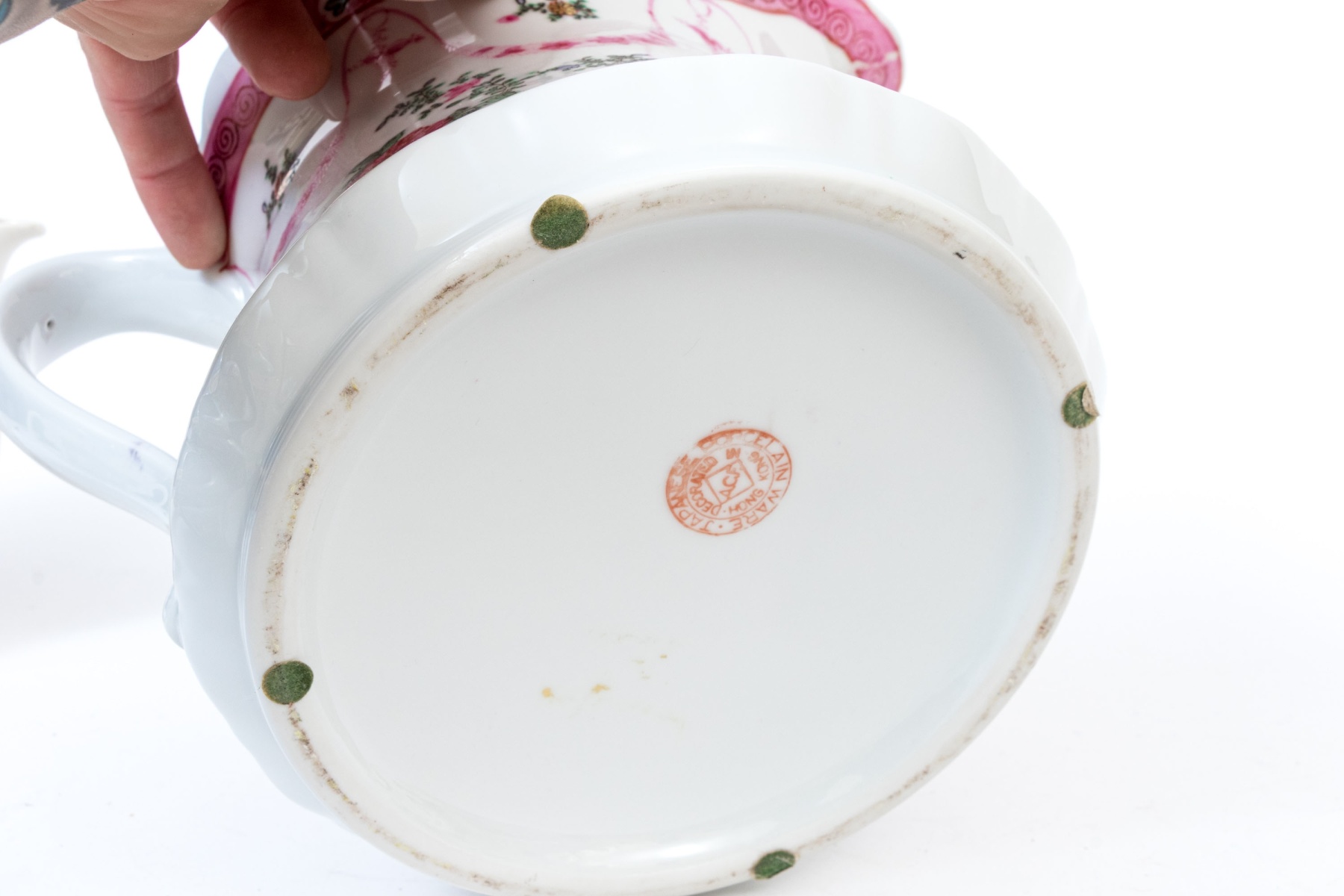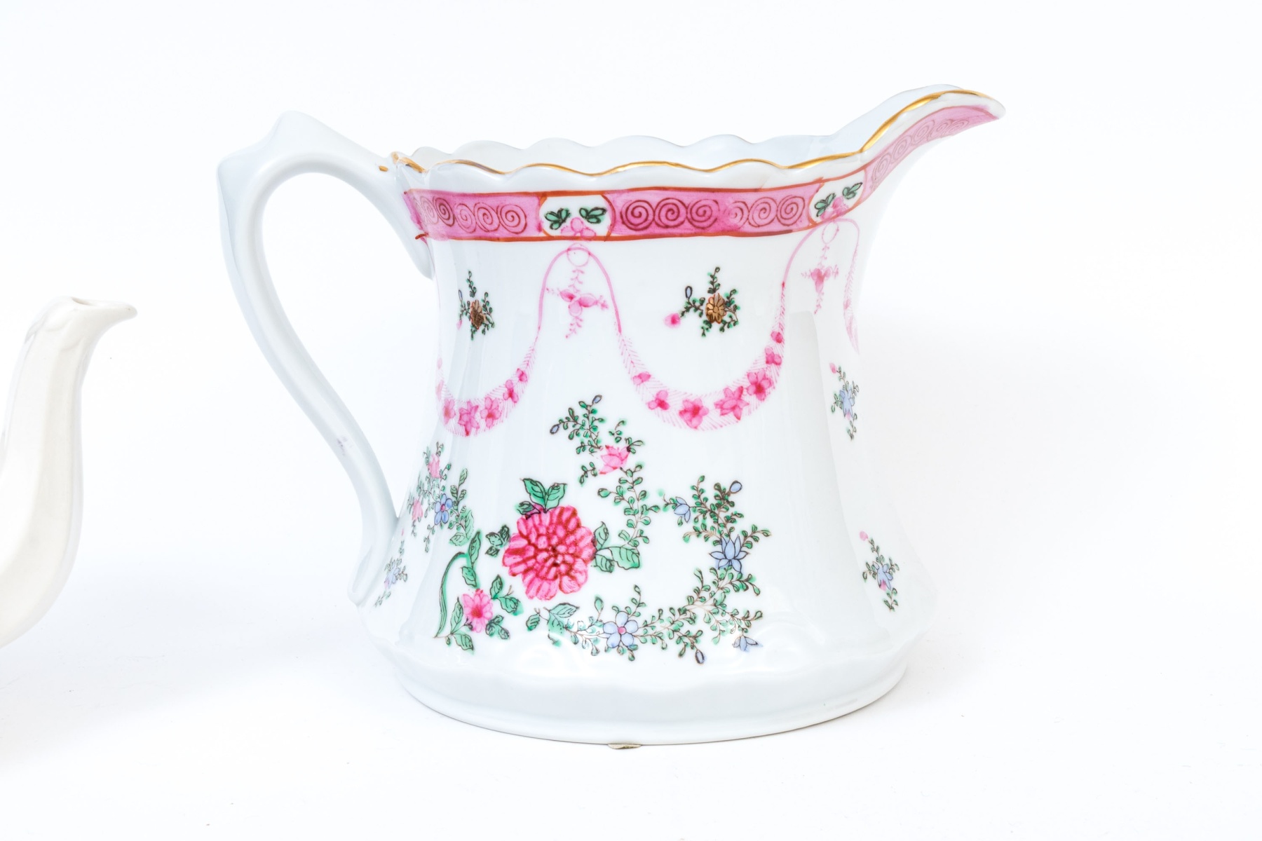 - A large Hong Kong export style oversized pitcher: 7" H x 9 1/2" W