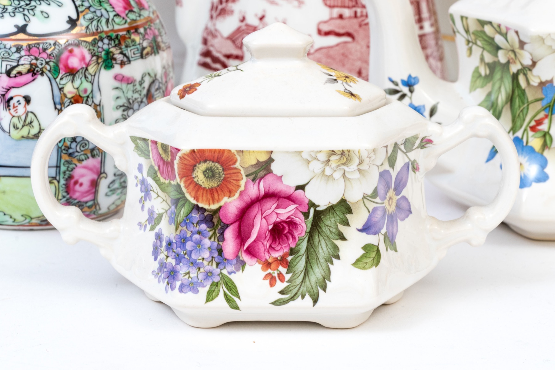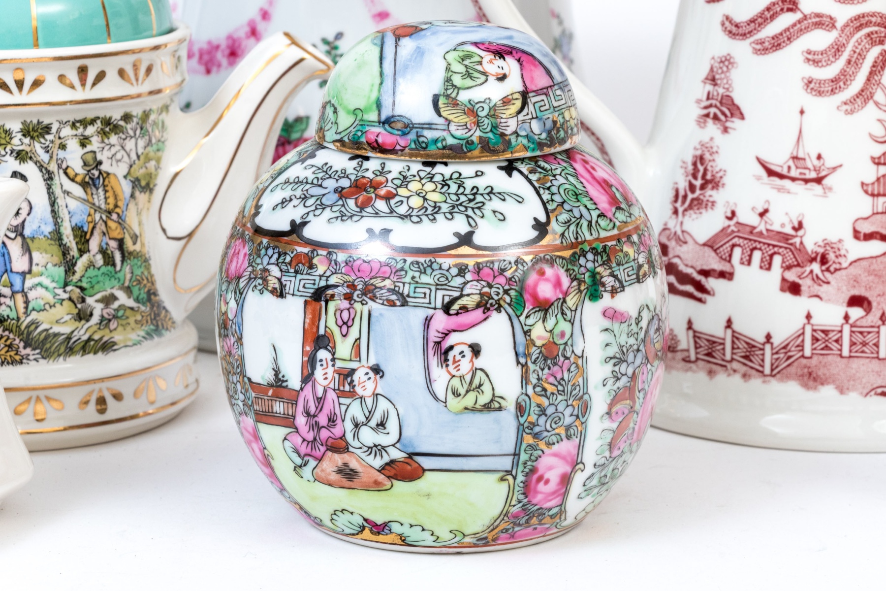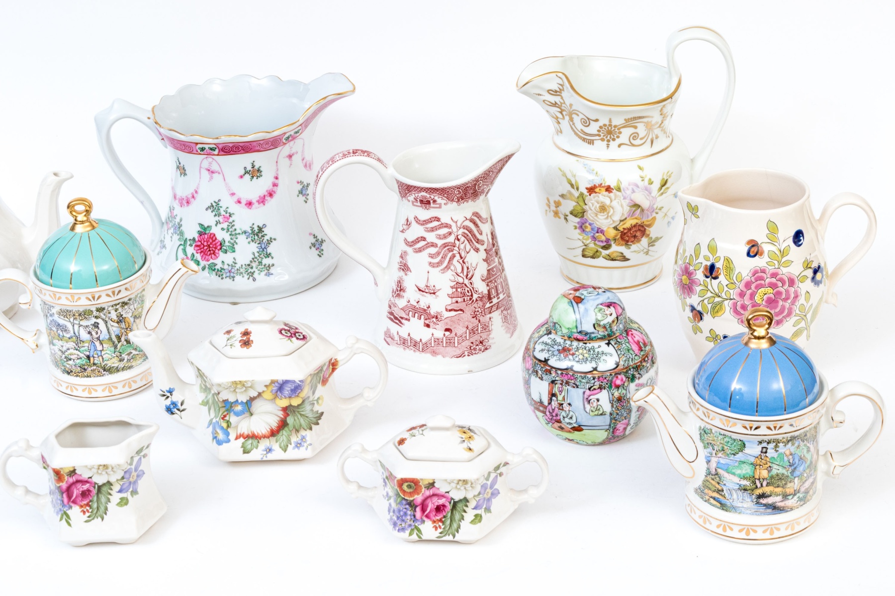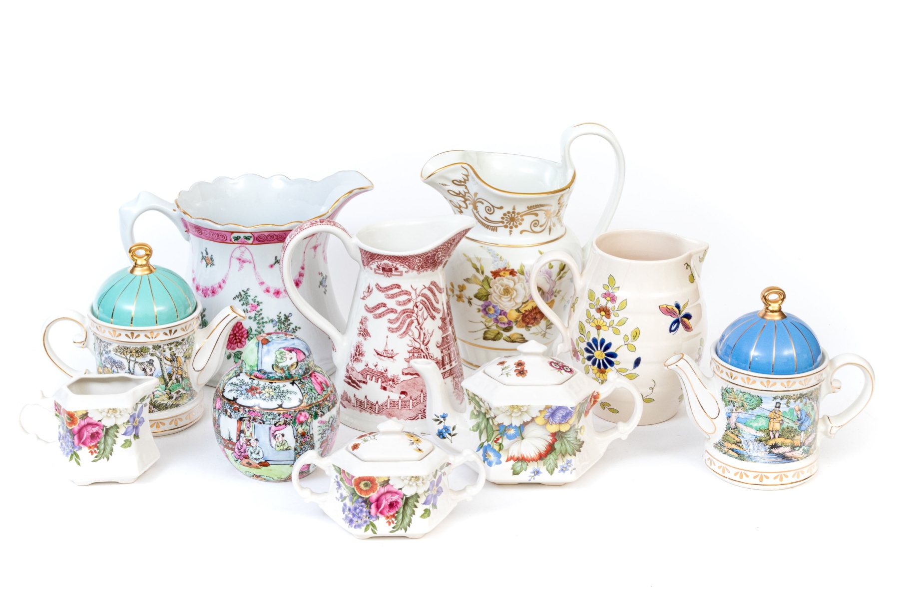 - A large Hong Kong export style oversized pitcher: 7" H x 9 1/2" W