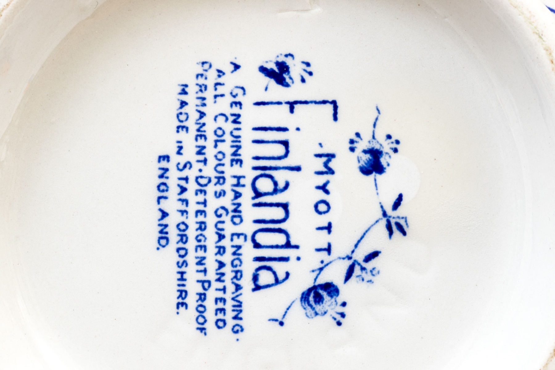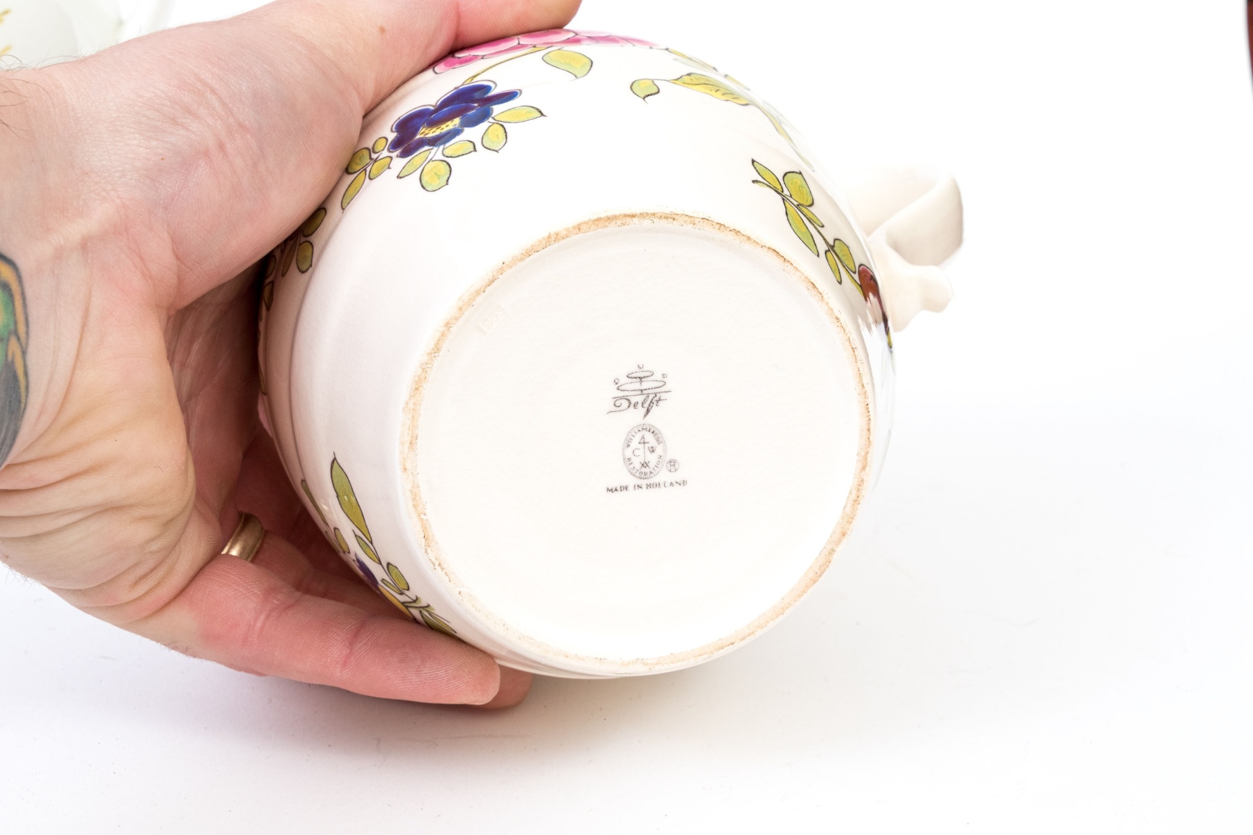 - Delft Colonial Williamsburg tankard: 6 1/2" H; a dark hairline to the rim