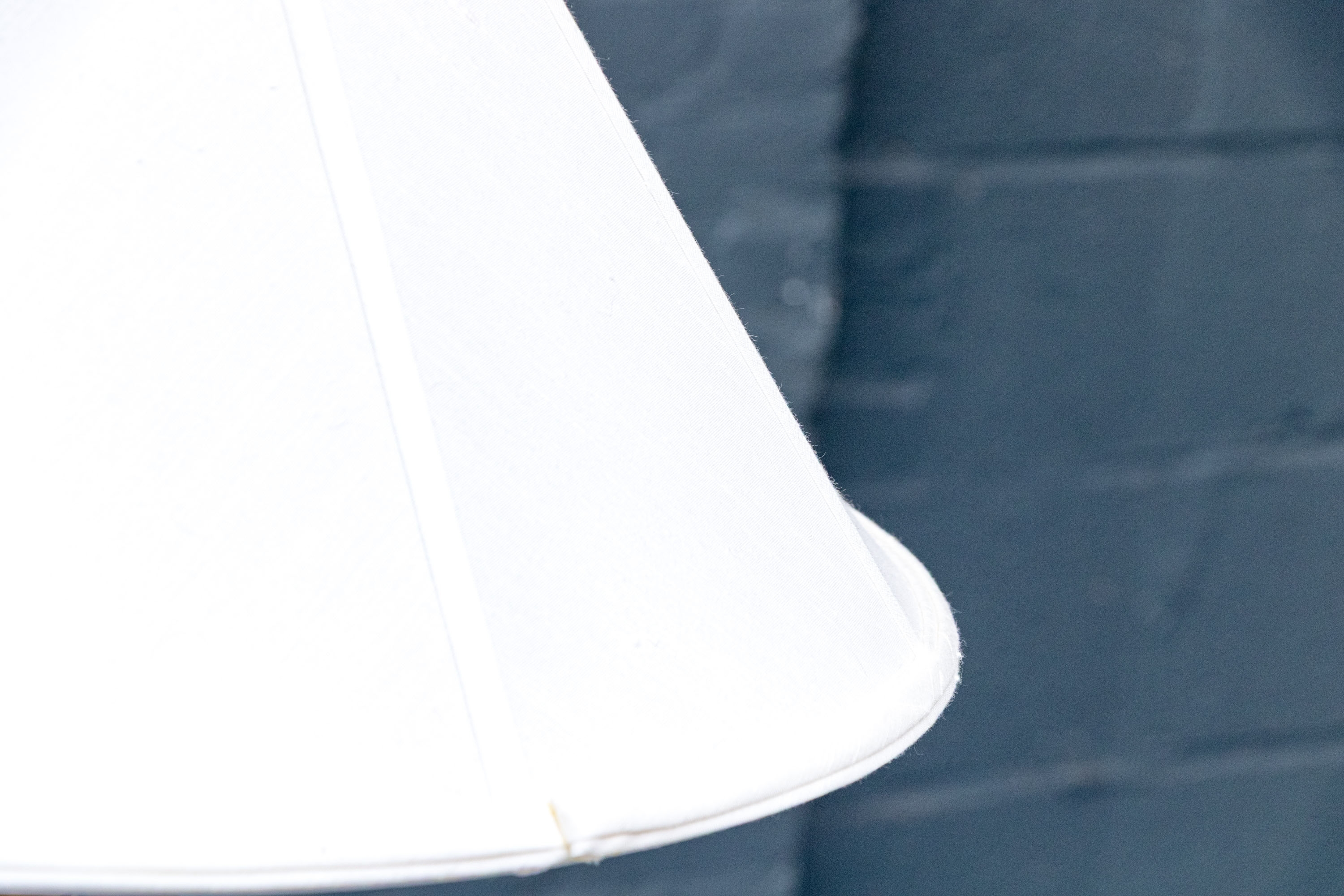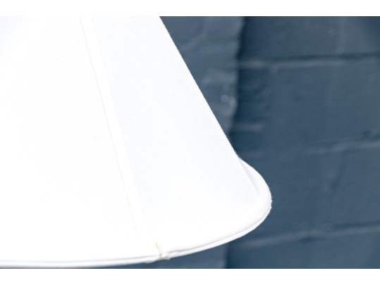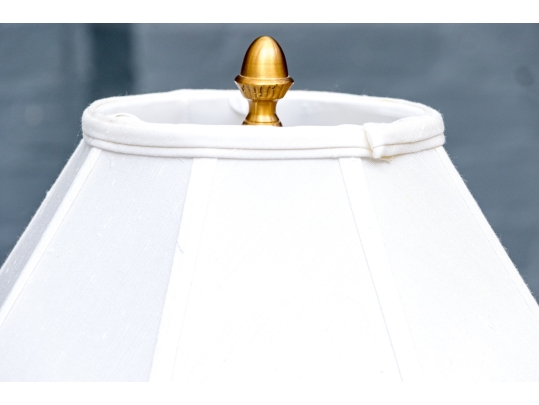 Dimensions: 59" H to top of finial, shade - 19 1/4" W x 12" H, base is 11" x 11".