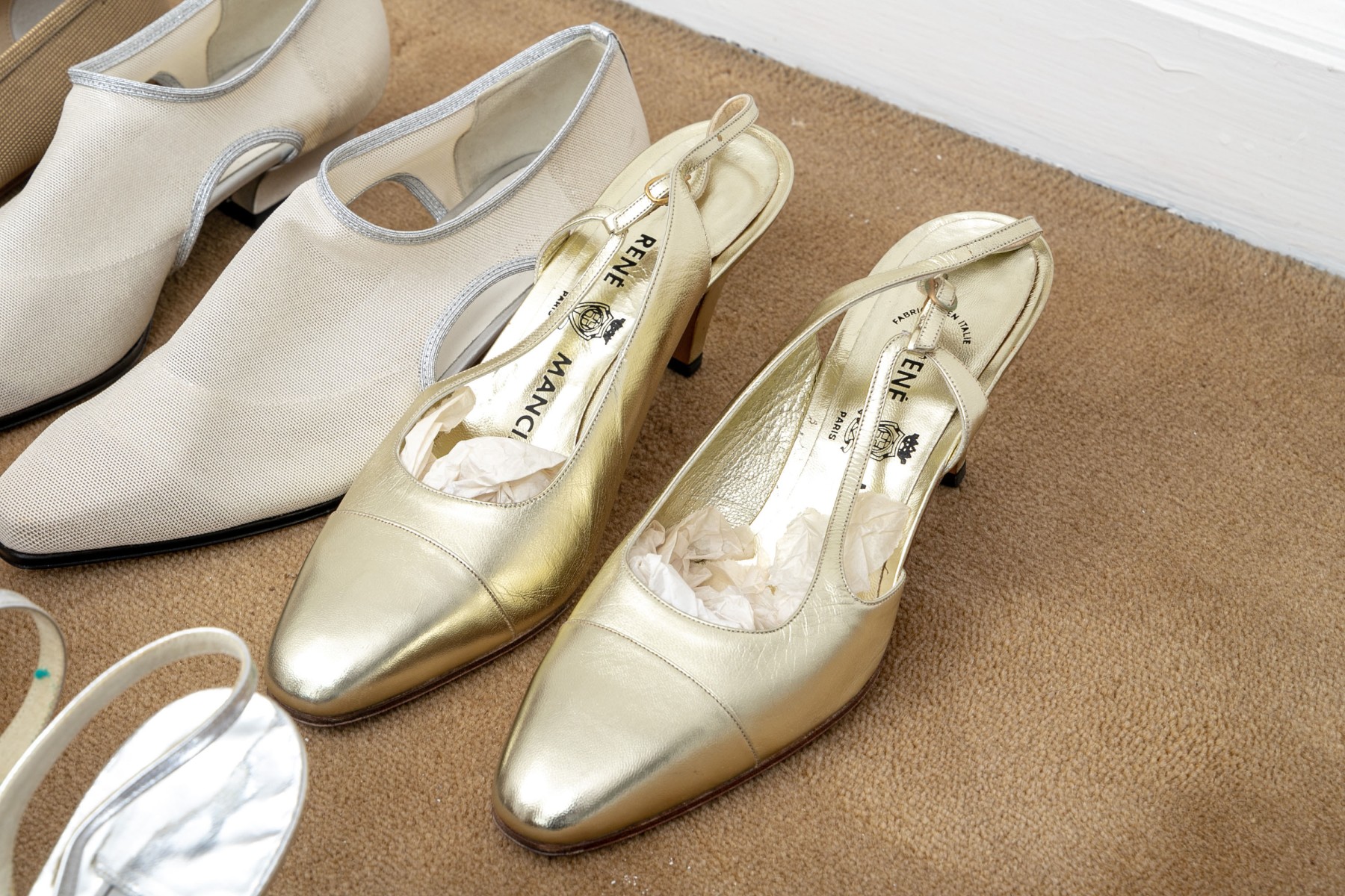 (2) Rene Mancini, 2 3/4" H, size 8, one pair new, one used