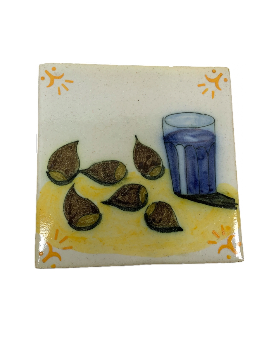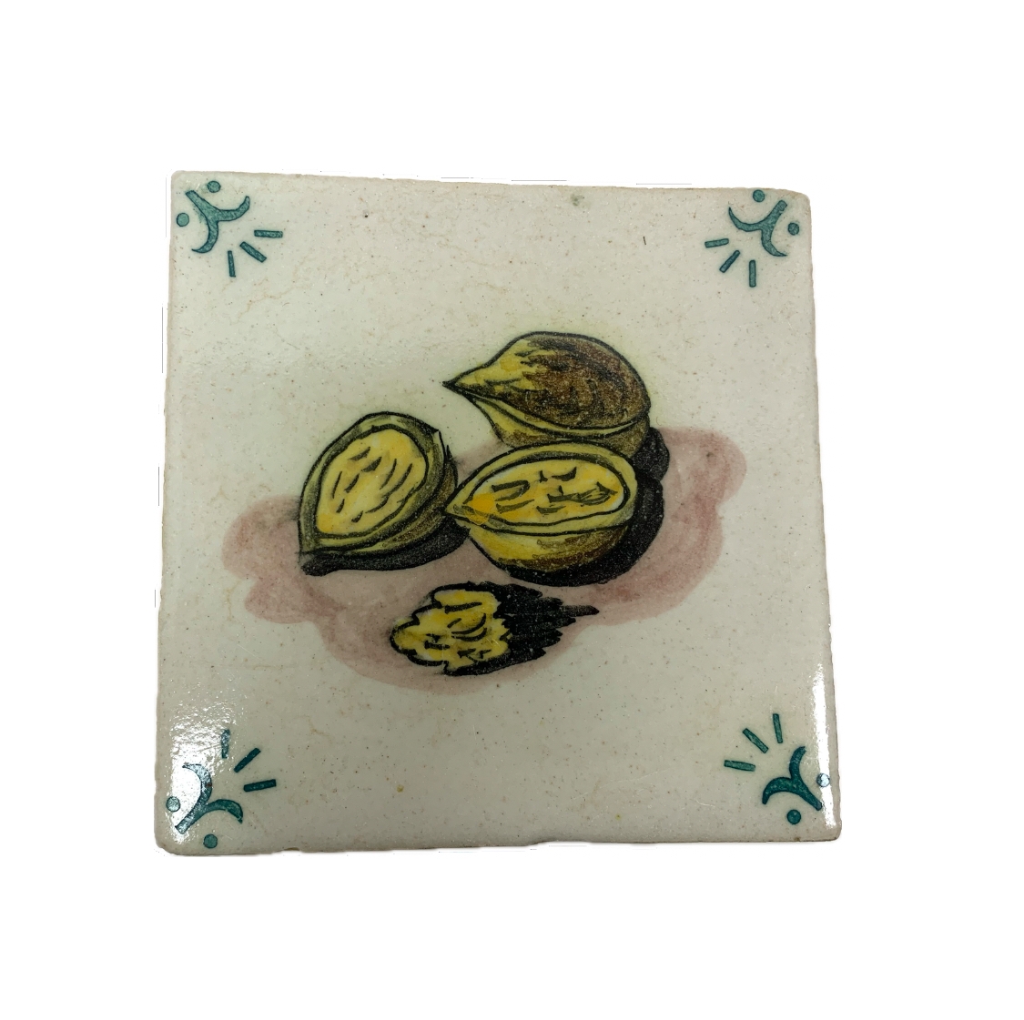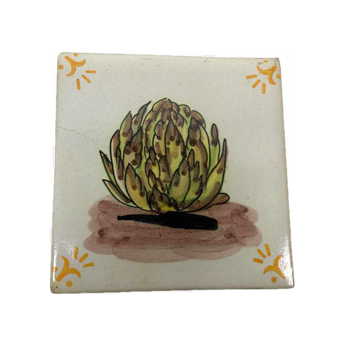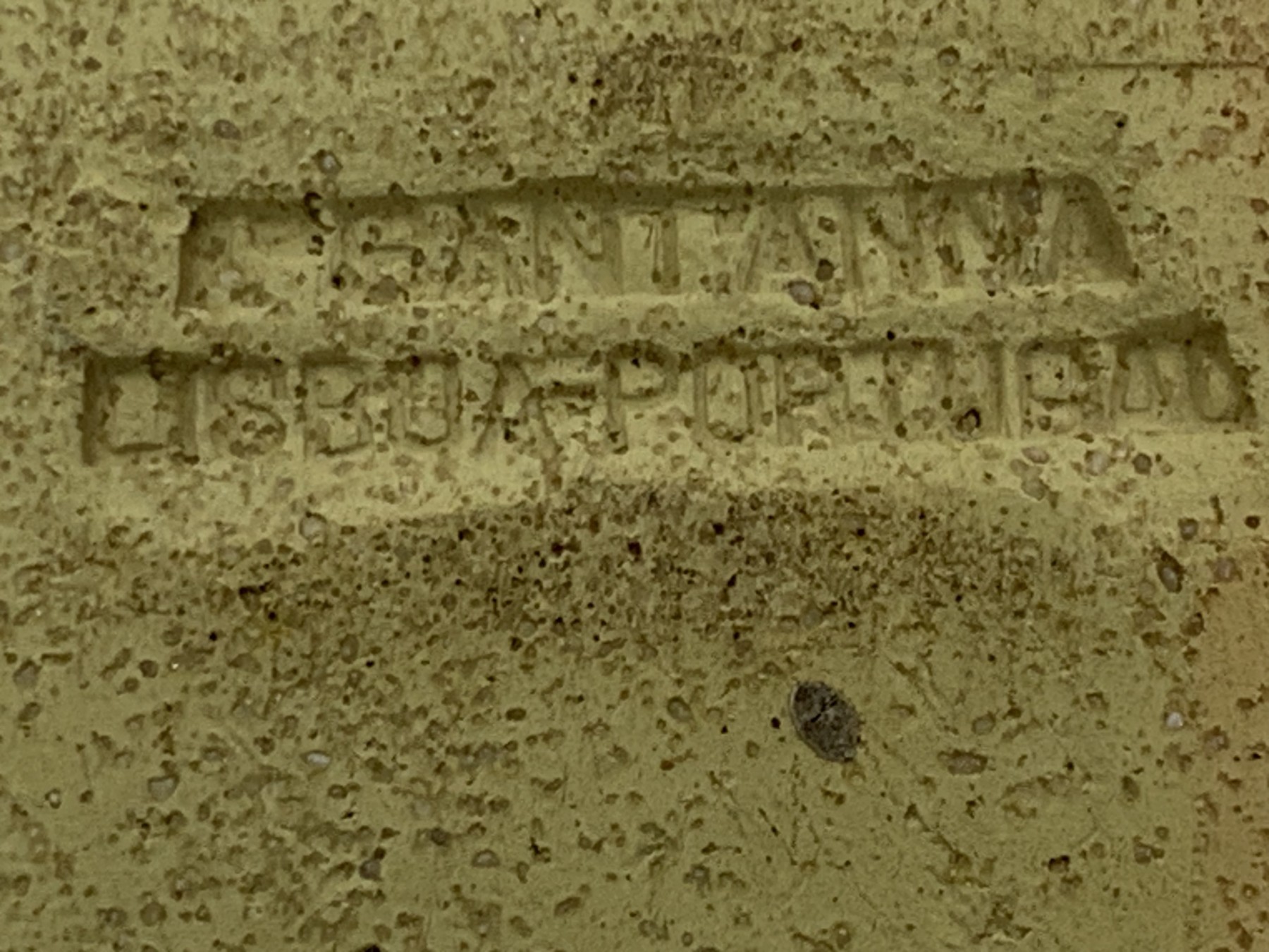 A great group of older Sant’ Anna tiles from Lisbon, Portugal. With colorful and Primitive depictions of Ponies, Figs, Cat, Artichoke and Wine Glasses. The company in production from the 1700’s. Solid feeling with good weight and suitable as Summer coasters or mounting. Each with markings on the back of the company name and “Portugal”.