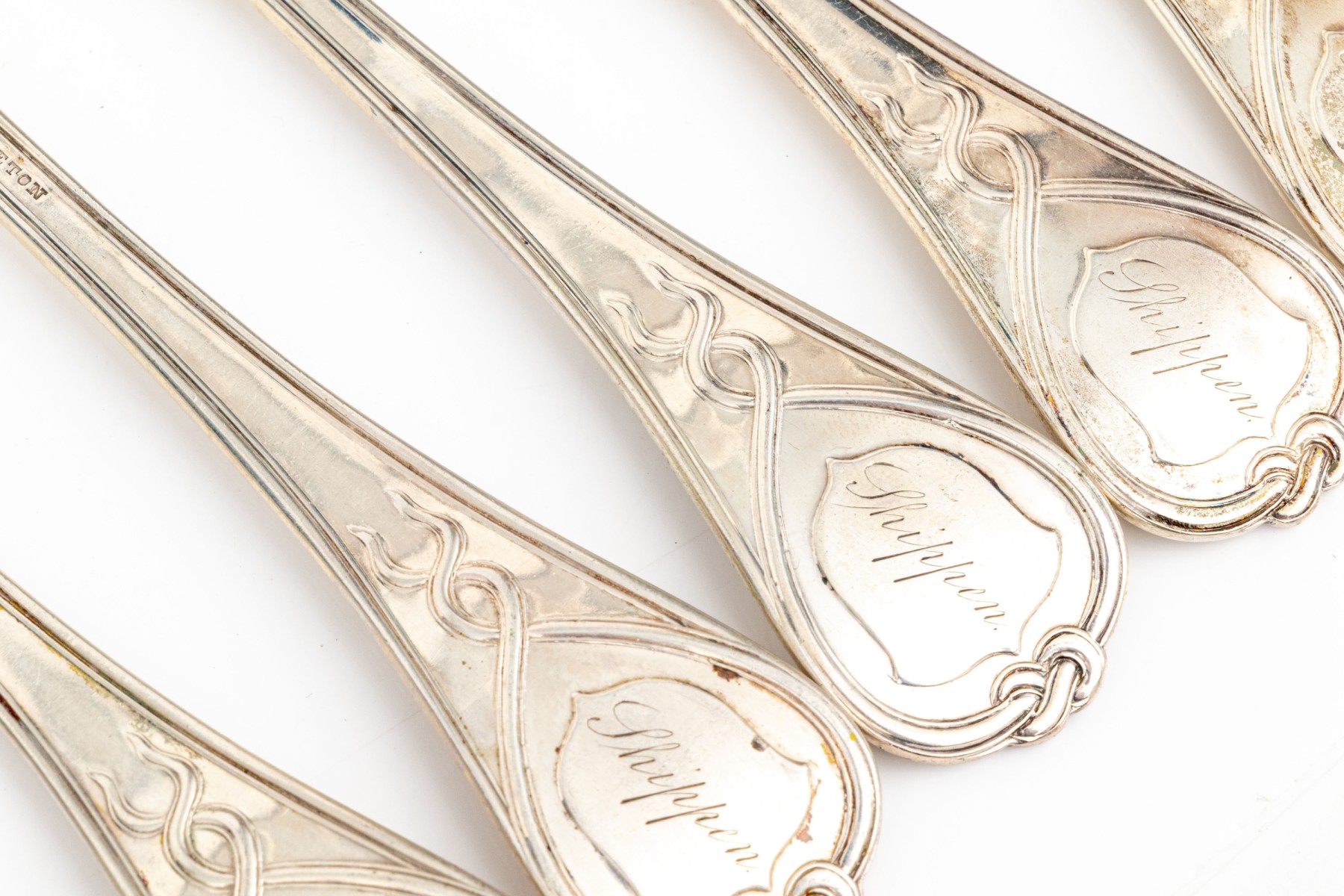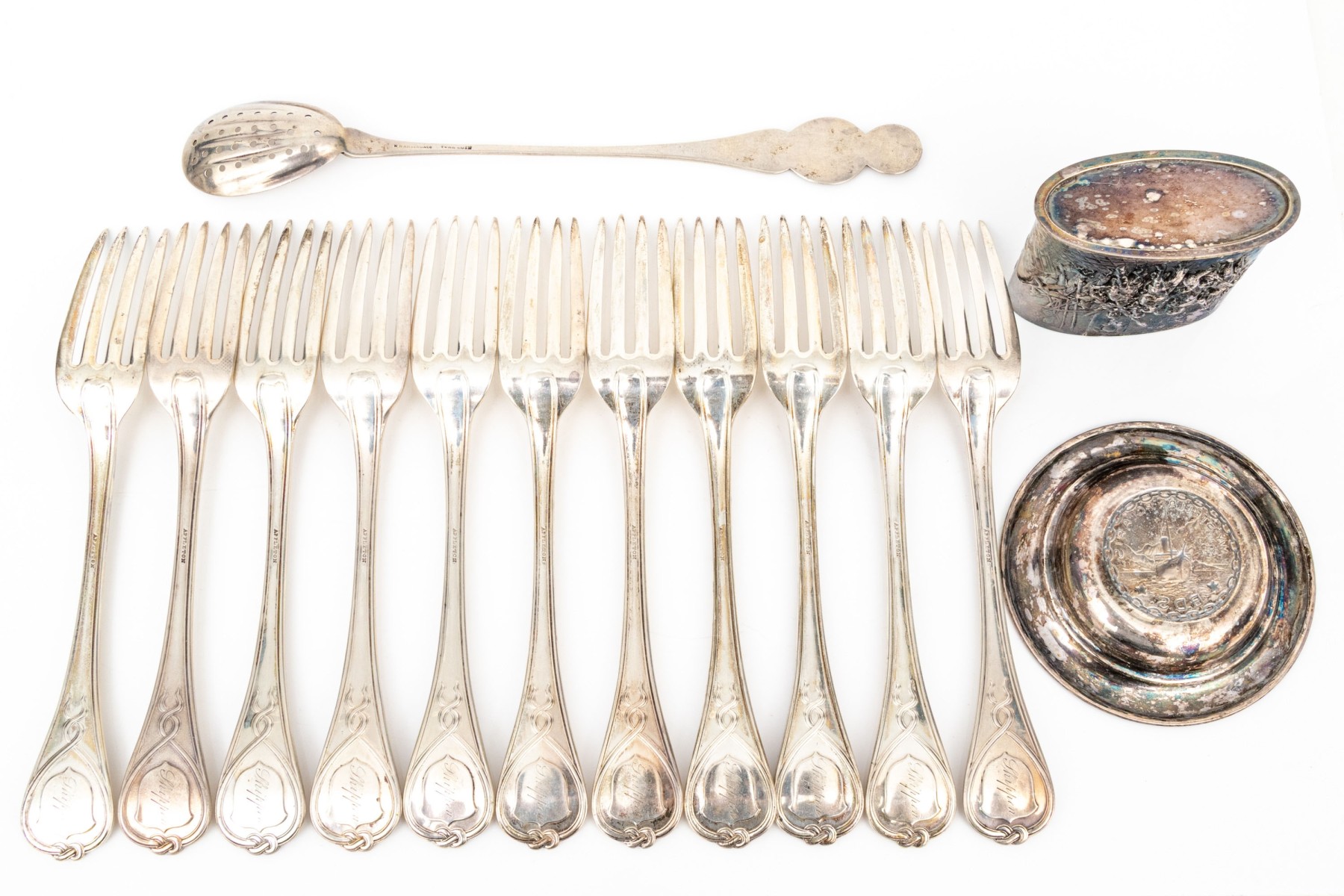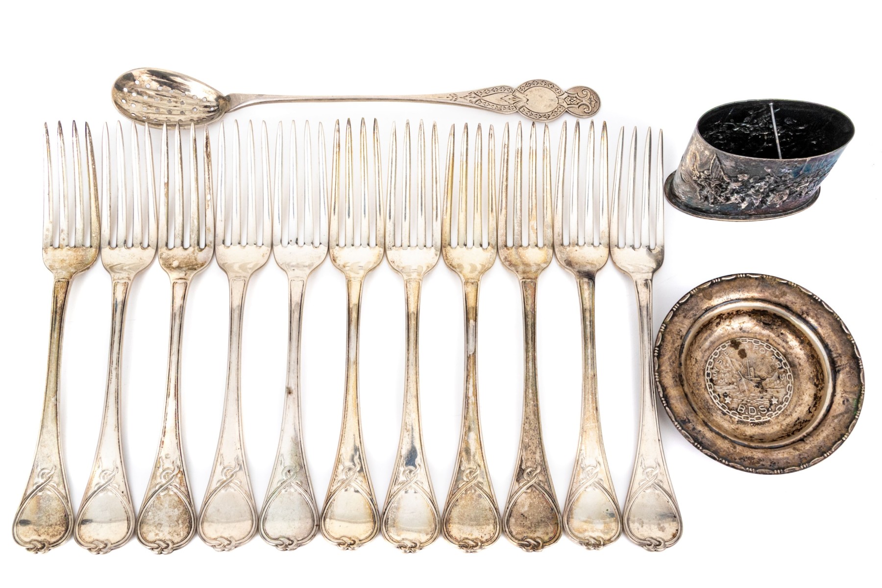 a set of 11 antique George B. Appleton forks with an elegant ribbon twist patterned end, 7 5/8" long