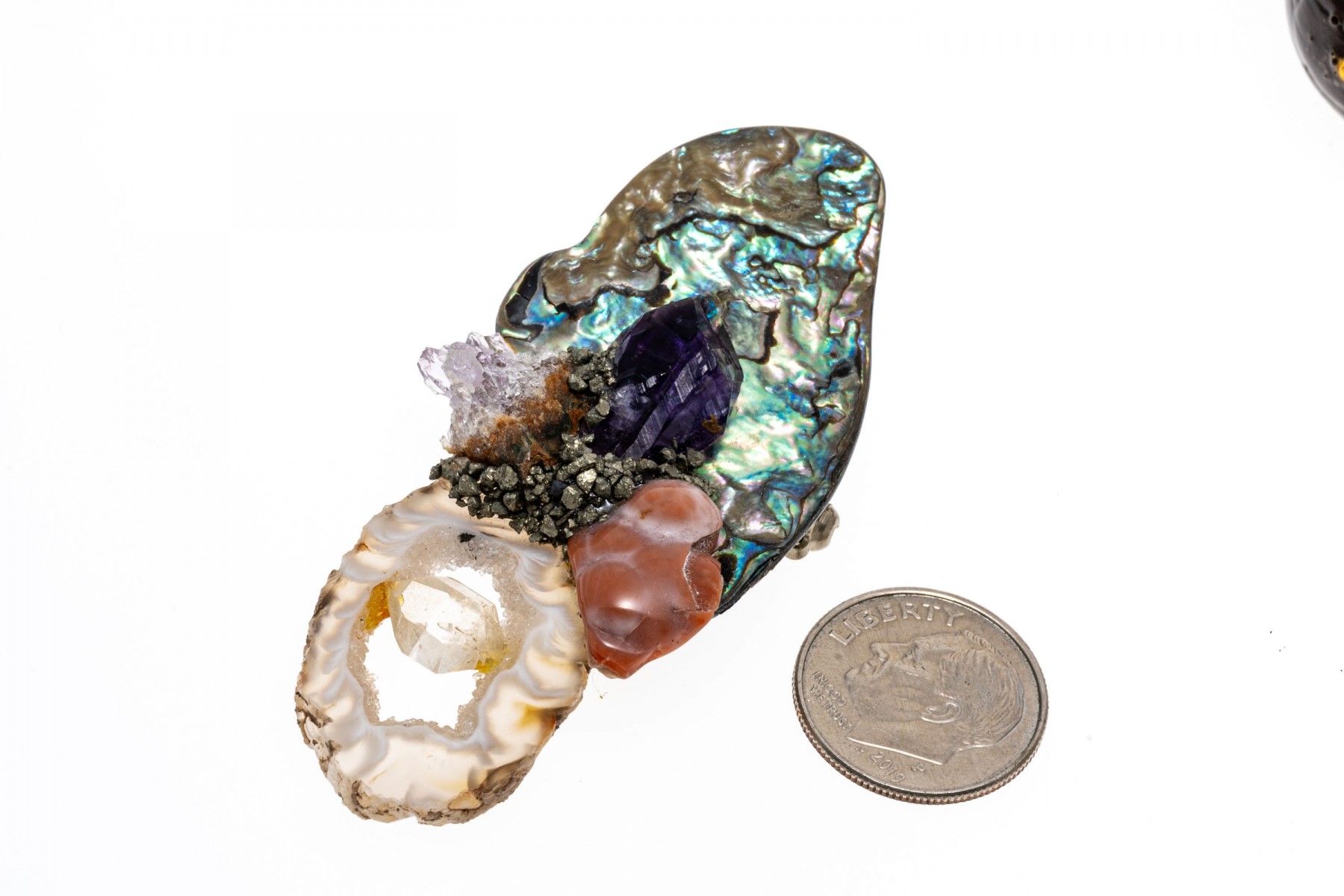 Dimensions: Necklaces Range from 13 1/2" L to 36" L, 7" L 1 1/2" W-Bracelet, 1 7/8" L x 1" W-cultured Mother of Pearl Blister Brooch, 2 1/2" L x 1 1/8" W-Abalone and Quartz Brooch.