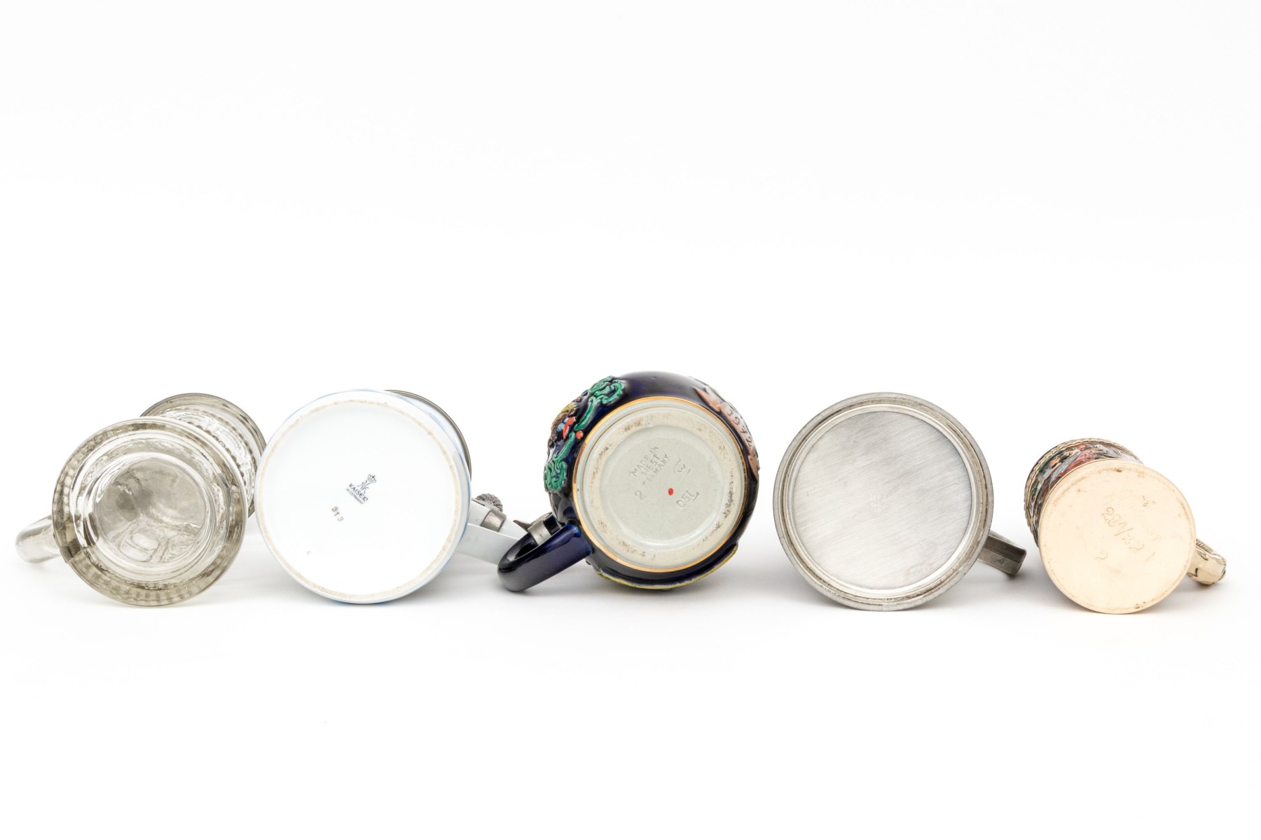 In glass, porcelain, ceramic, and metal. All marked Germany.