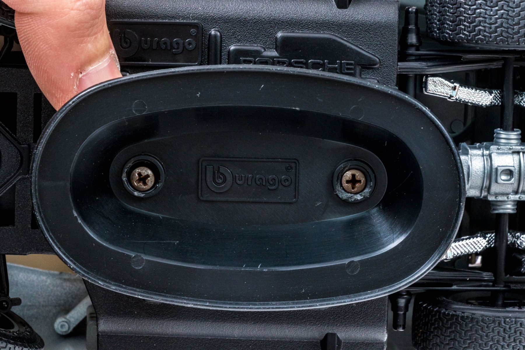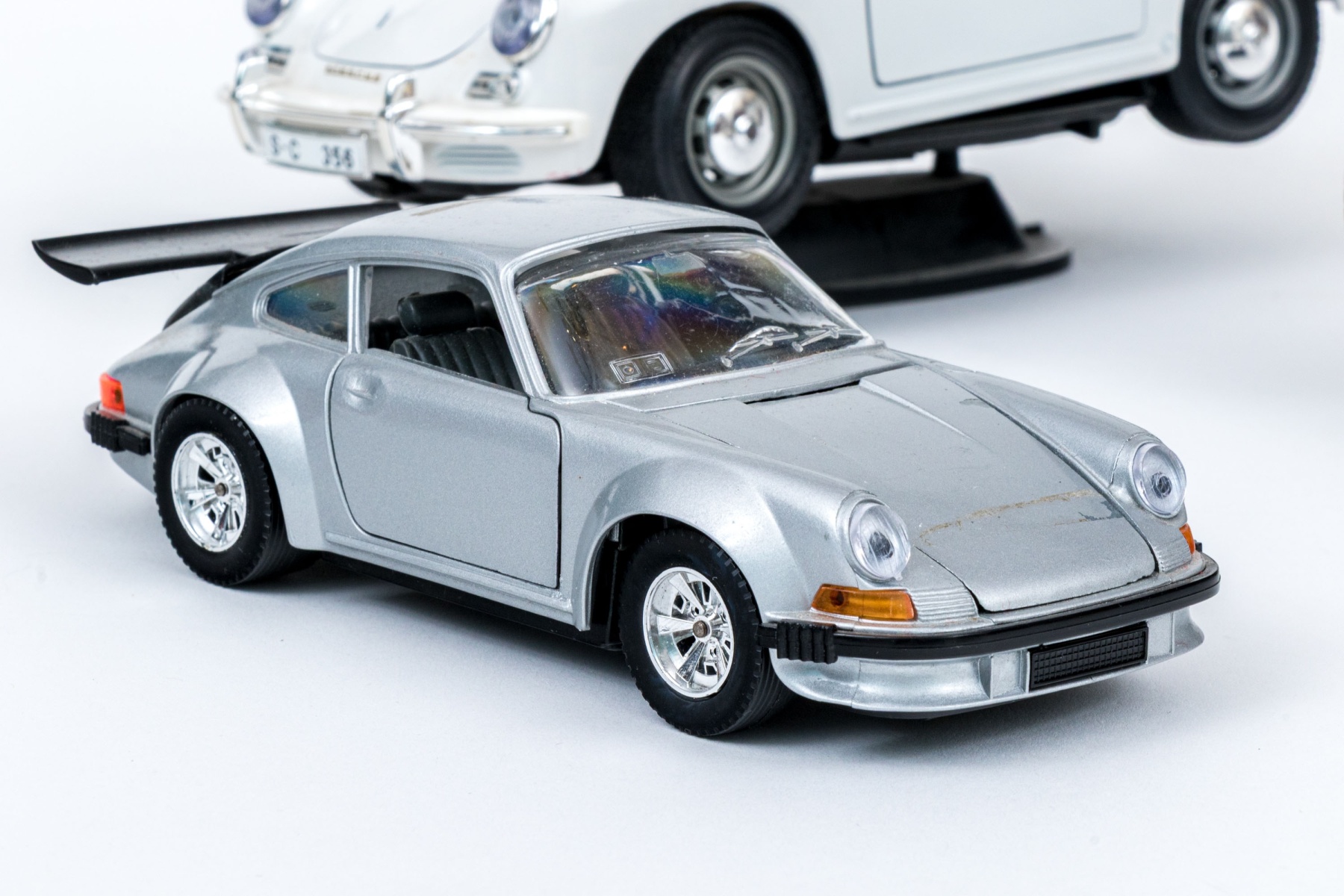 Some on stands, paint finish loss to the white Porsche 911.