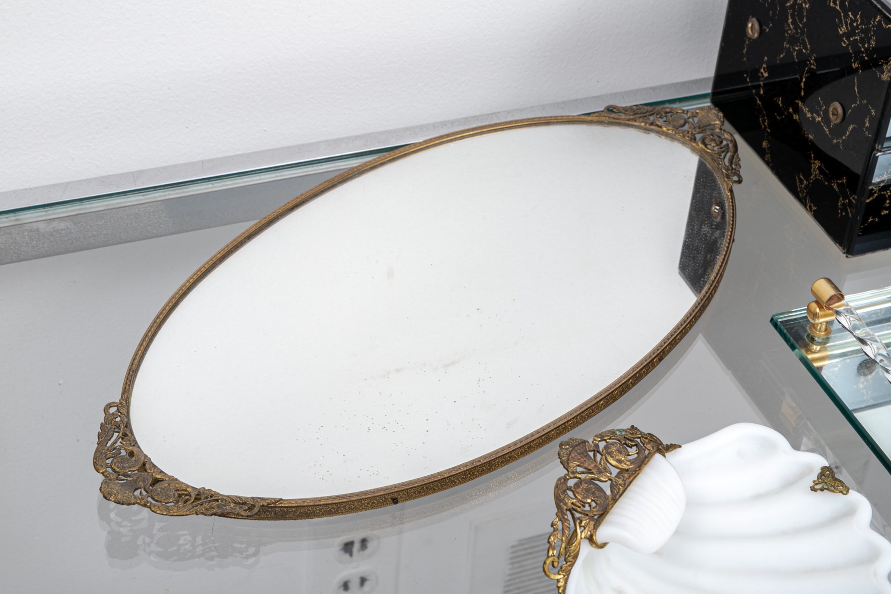 Vintage rectangular mirrored tray, 16" x 9"