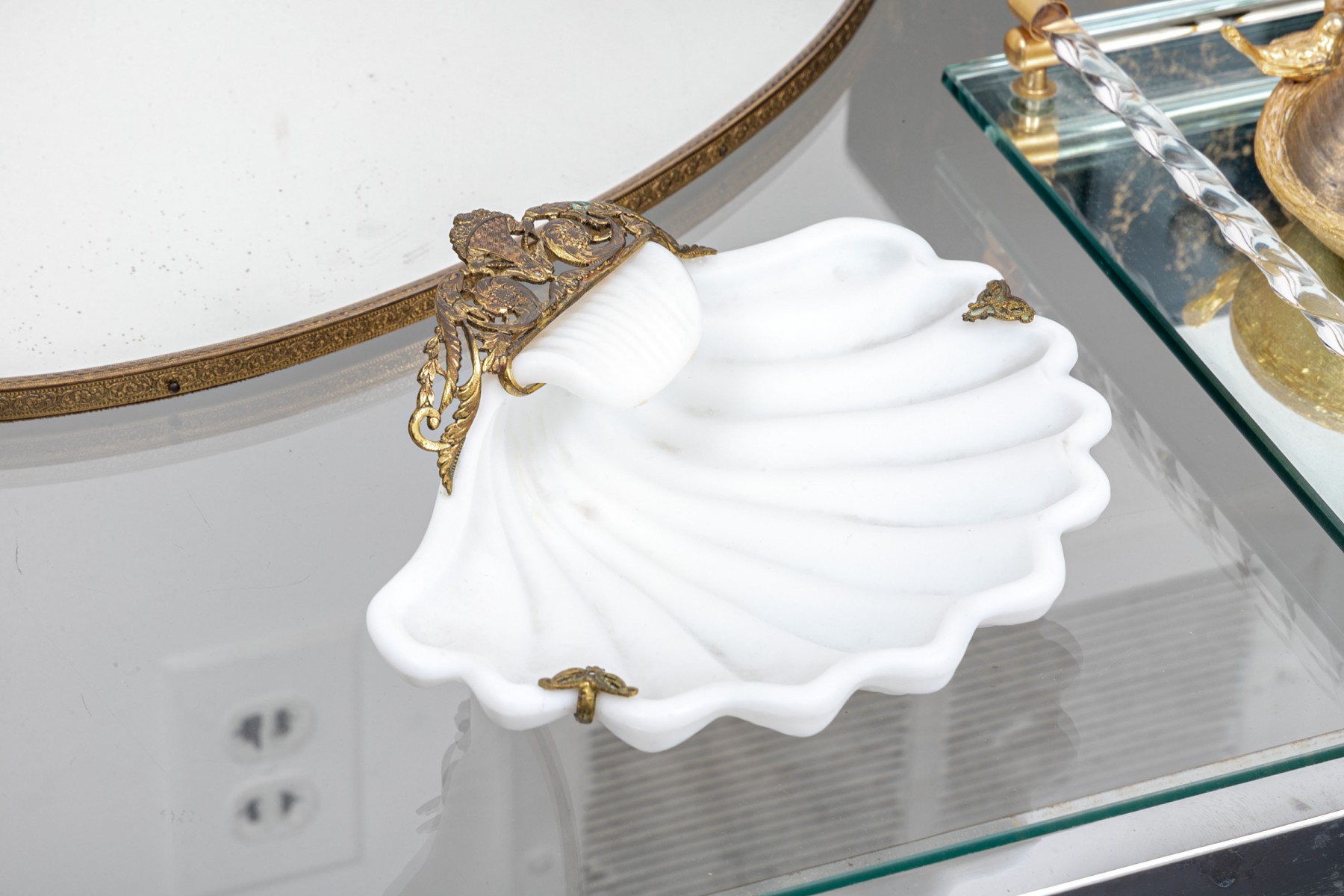 White alabaster like shell form dish, 7 1/2" x 6"