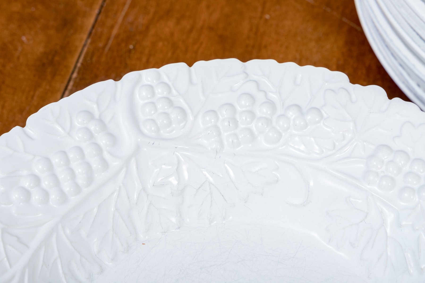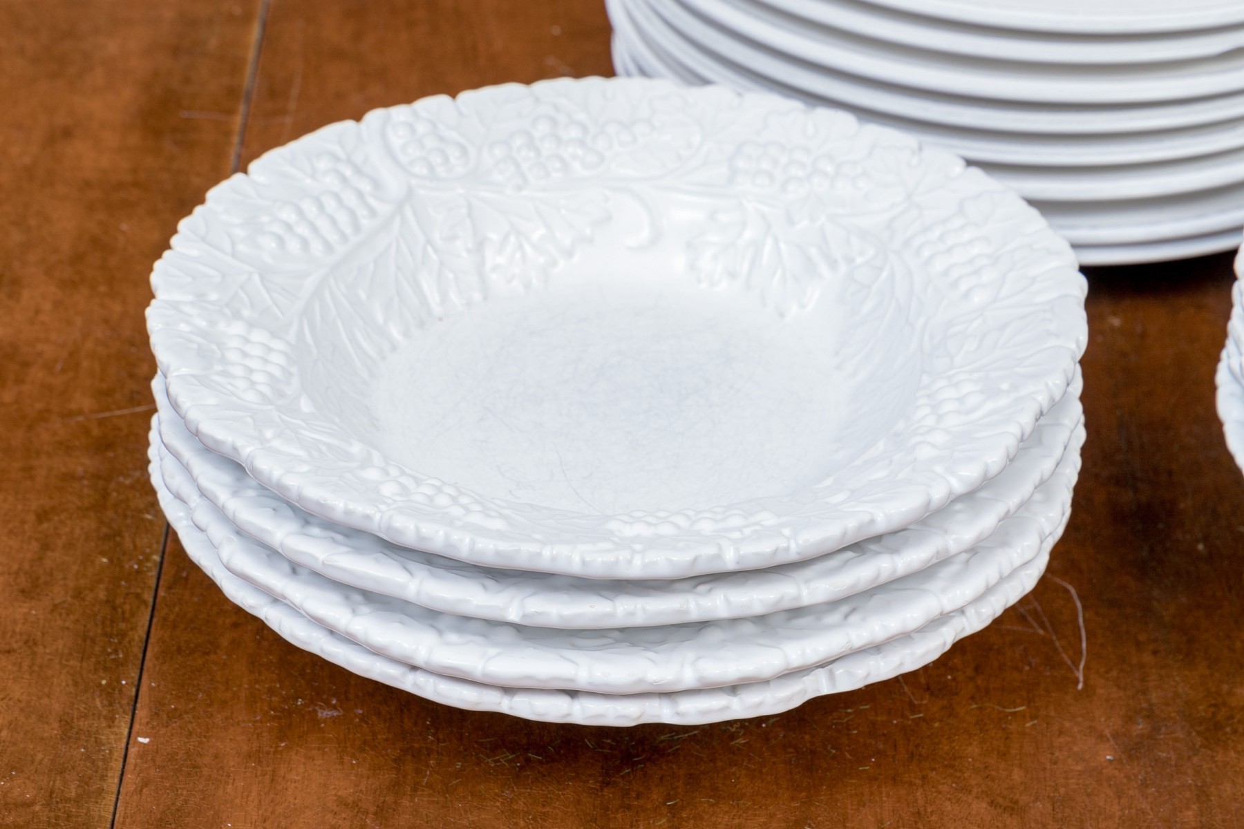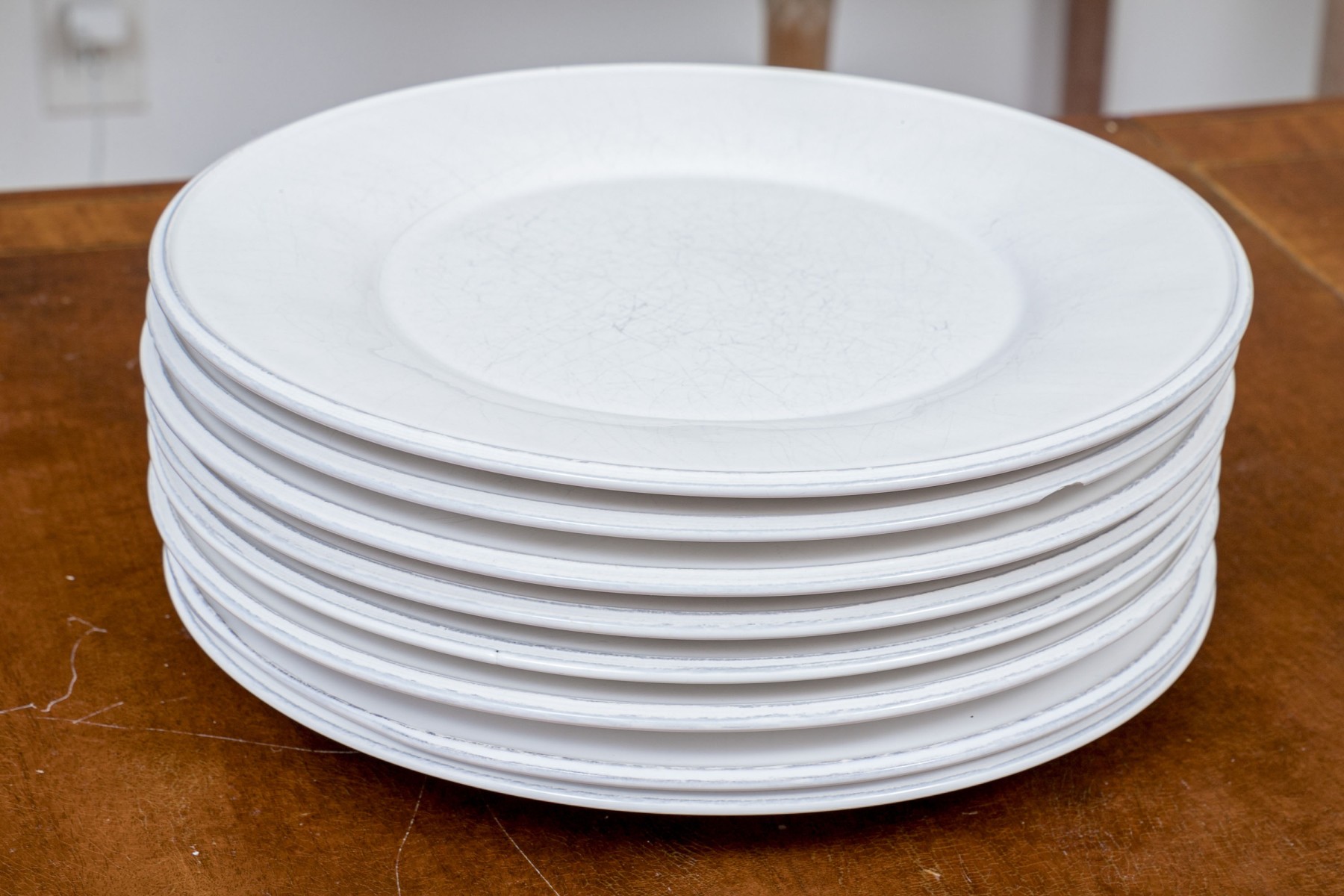 8 Italian white glazed dishes, 10 1/4” W (heavily worn, one with chip, surface scratches)