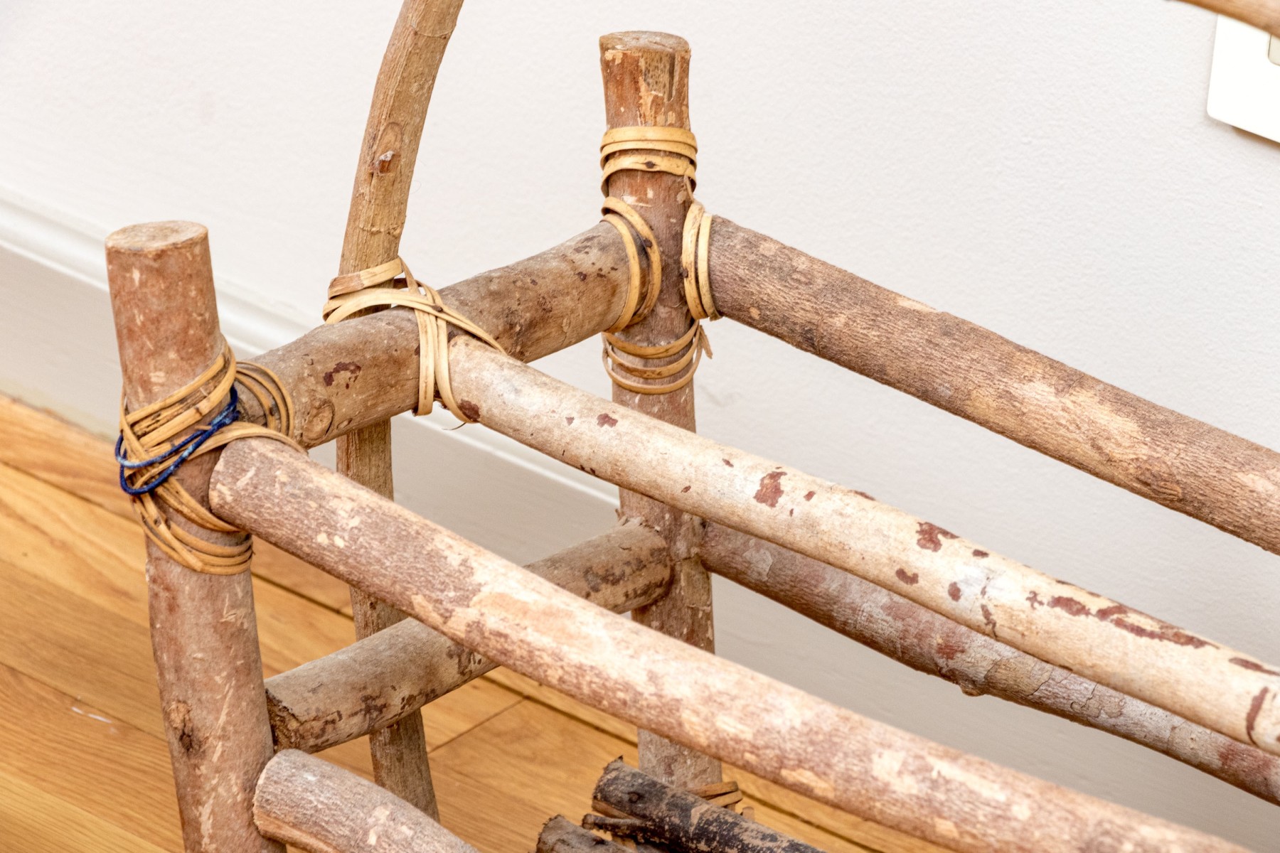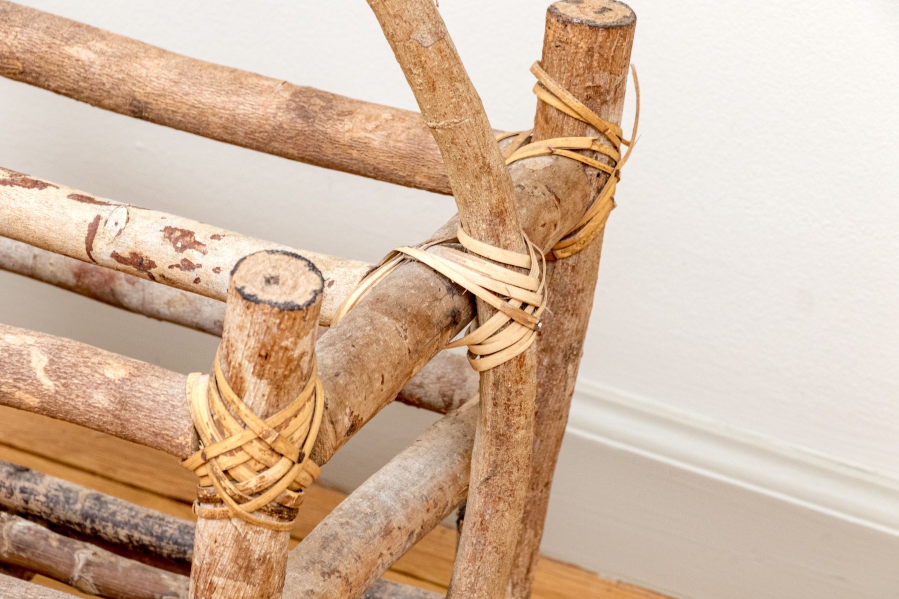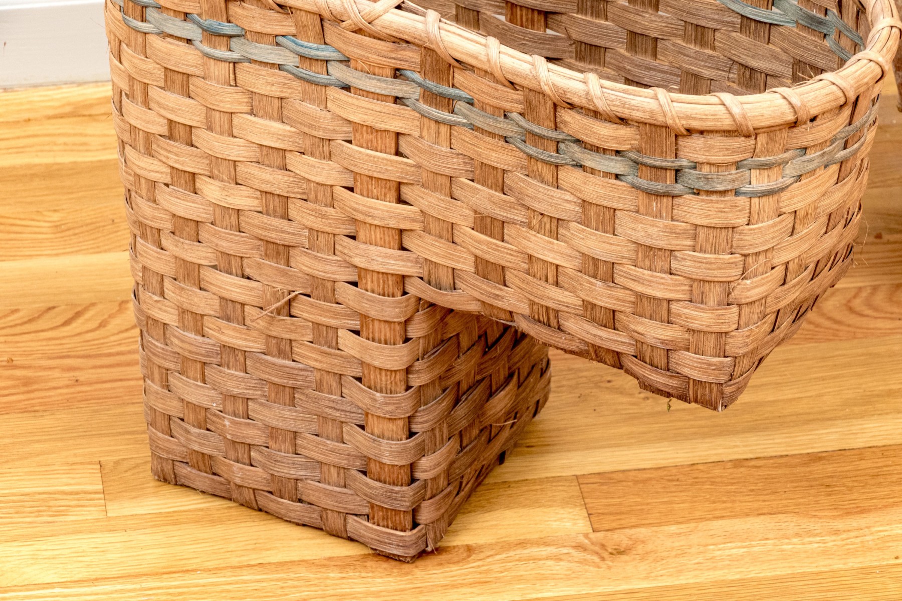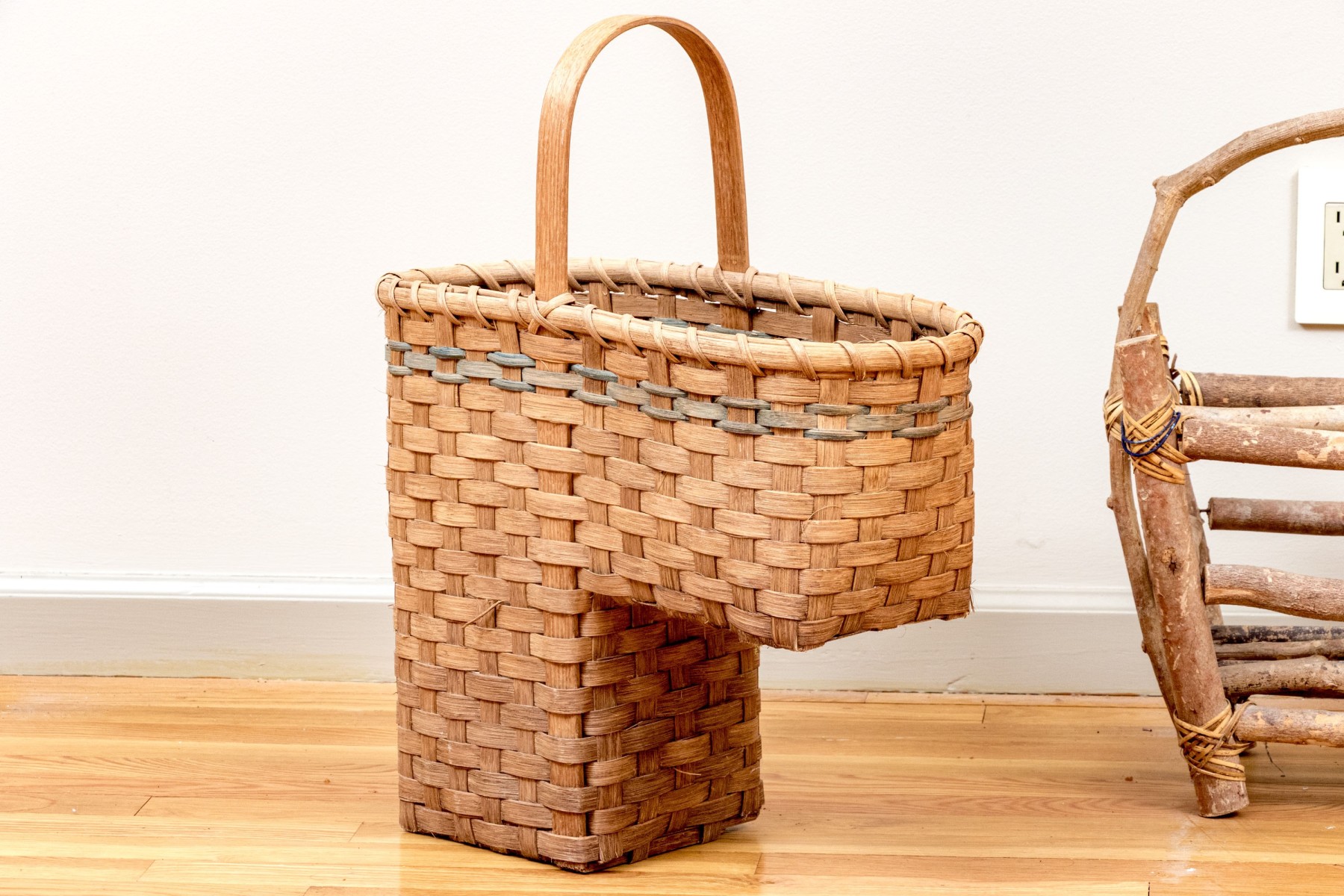 Comprised of a rustic handmade wood and rattan rustic basket together with a woven step basket with arched handle.