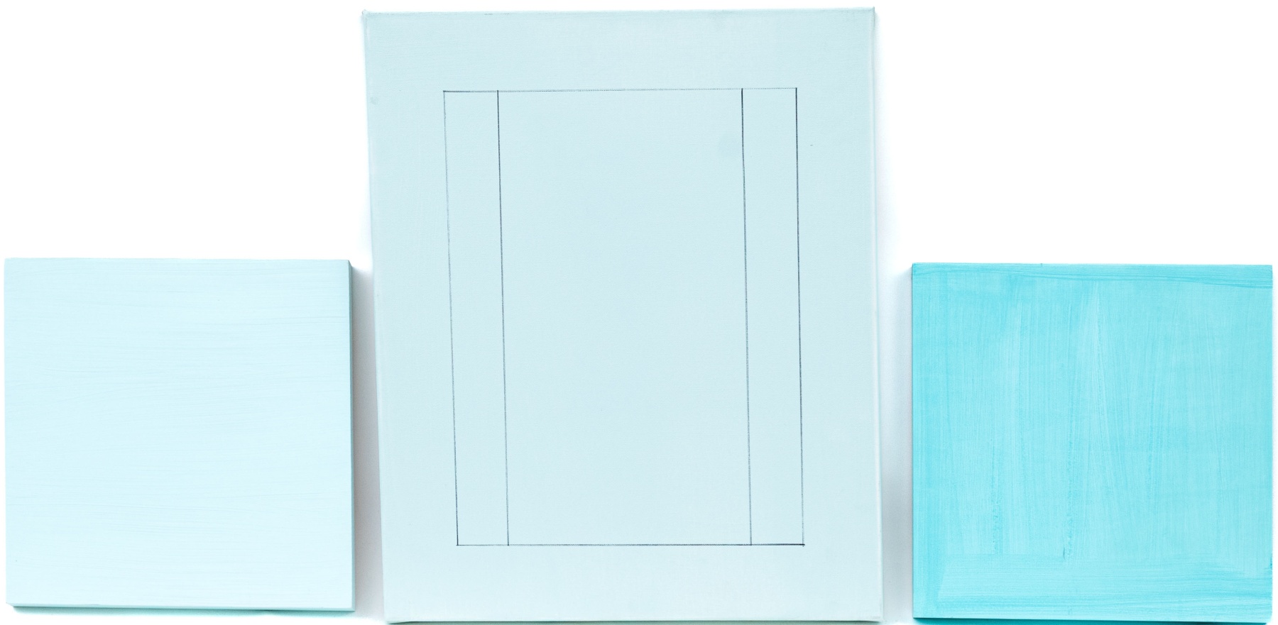 Two smaller on board, and one on canvas on stretcher but unframed. Dimensions: Smaller pair: 14 1/8 x 14 1/8" W