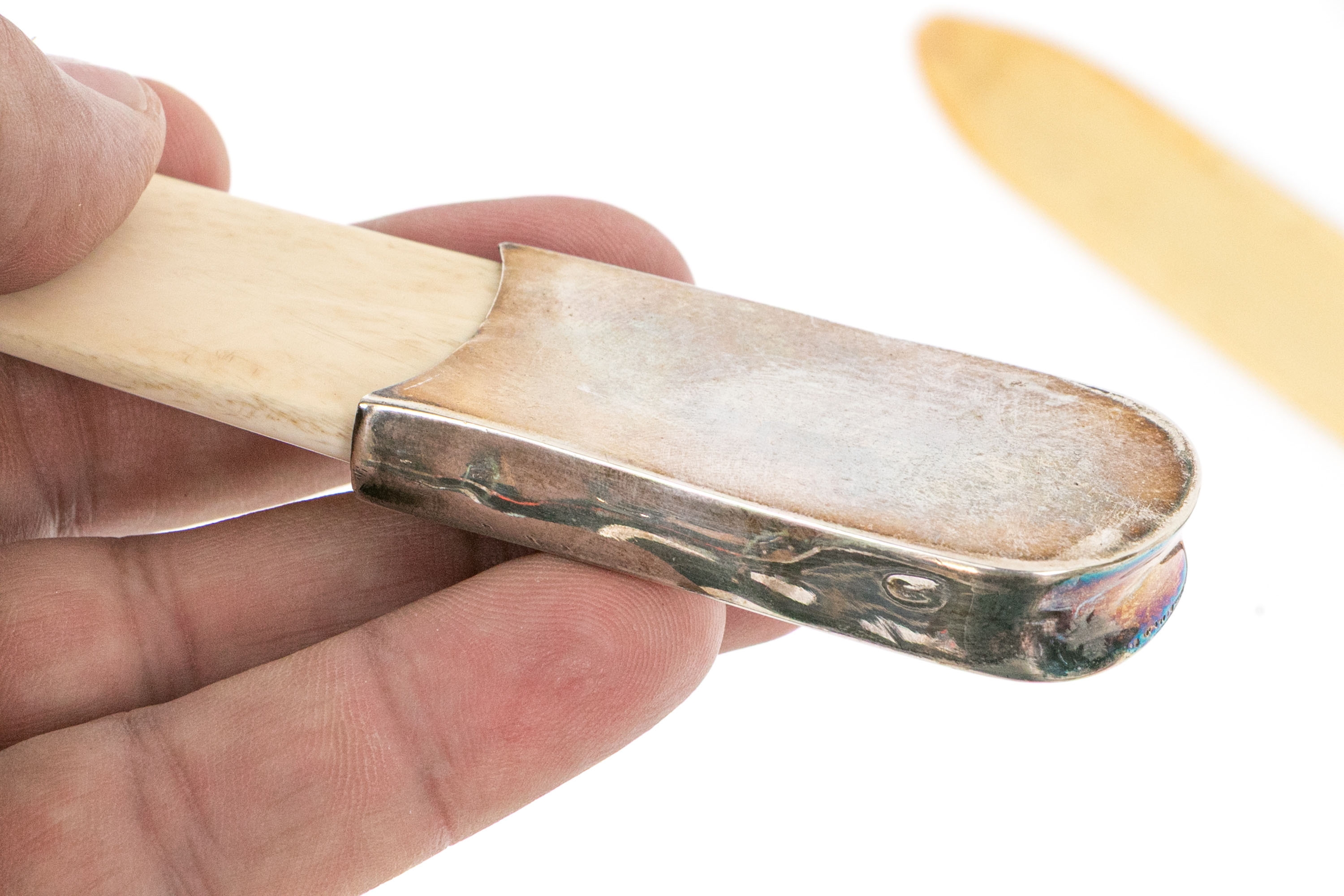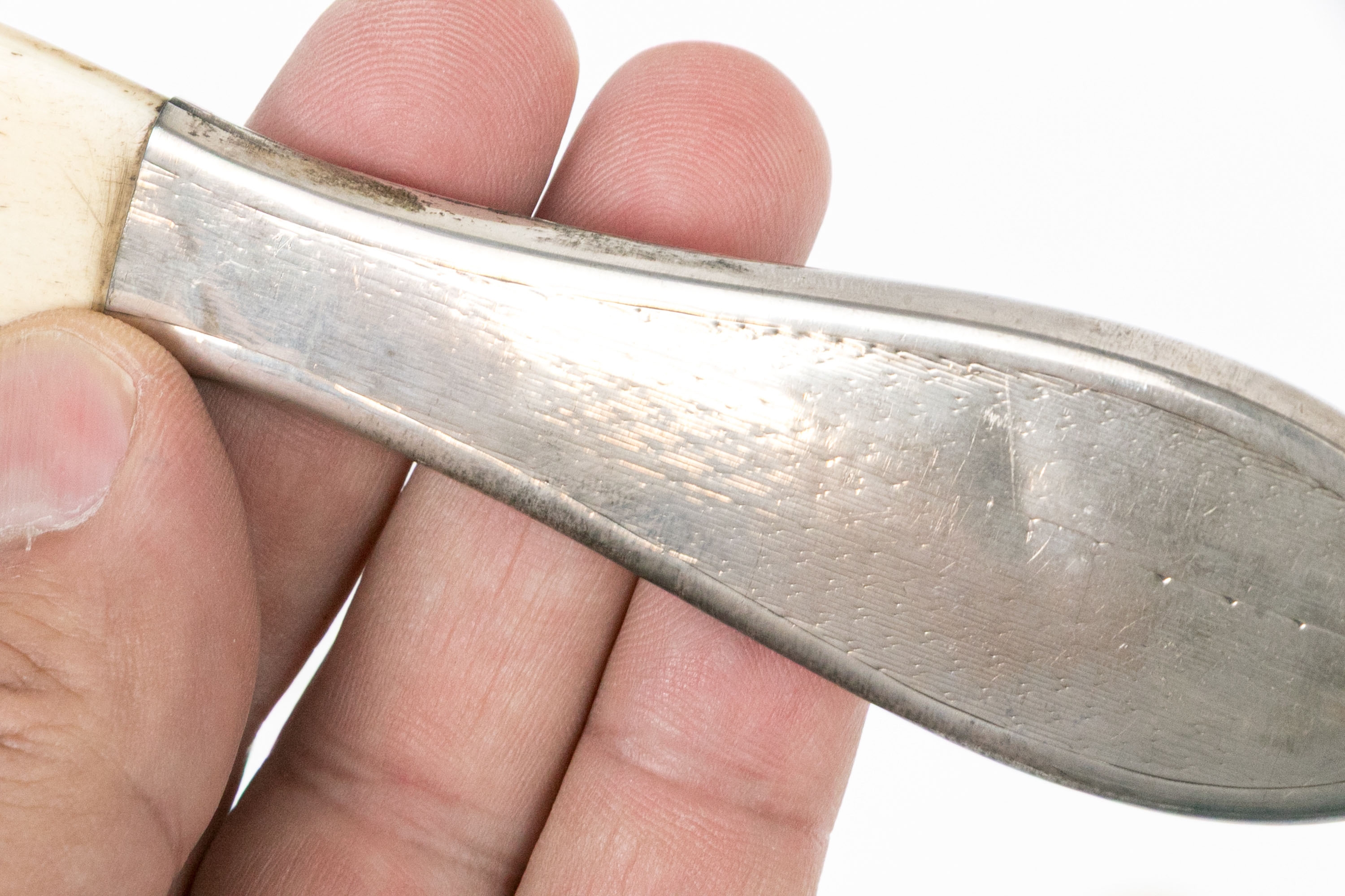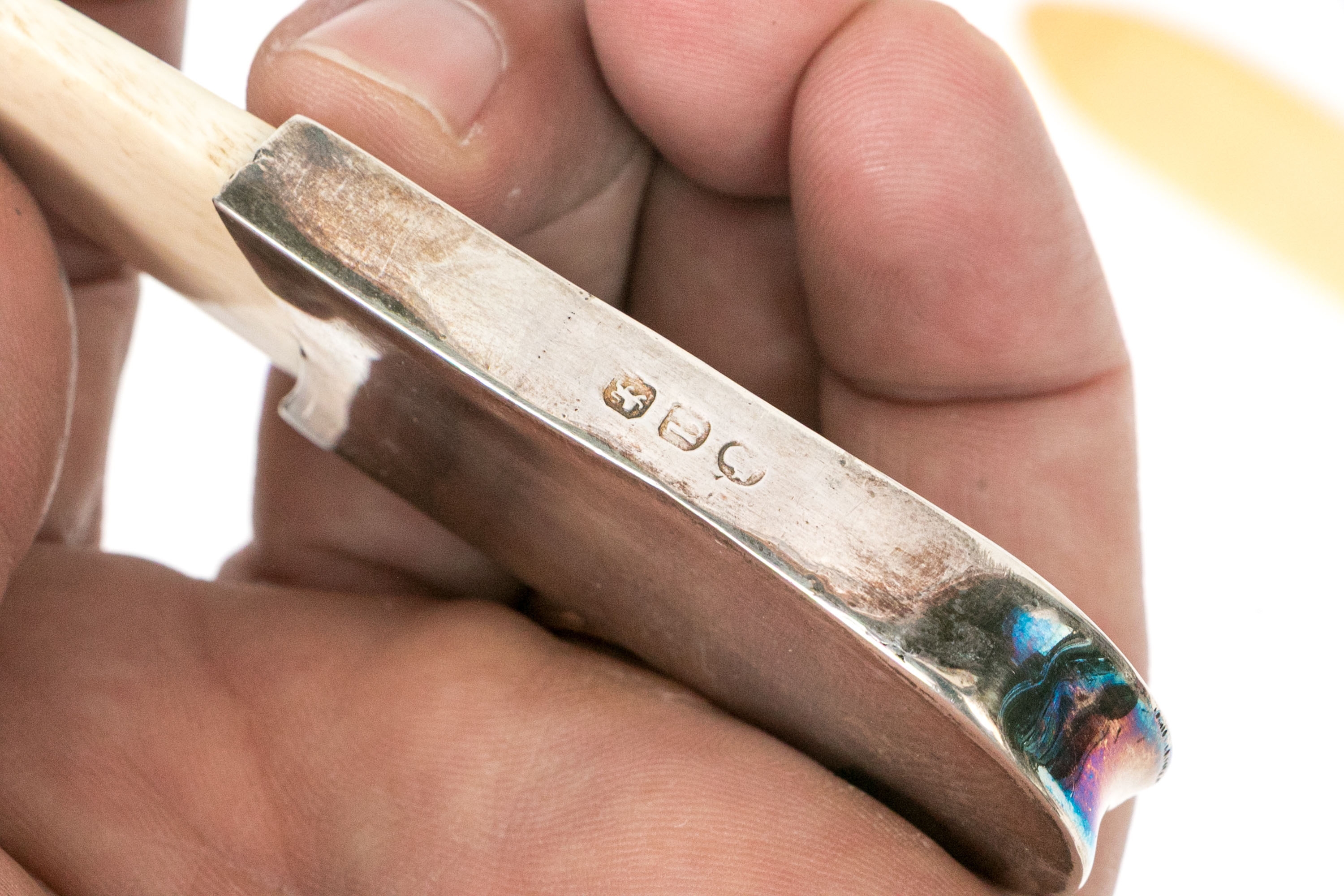 a flat rounded end one with English Georgian marks for sterling silver, London, 1817-18.