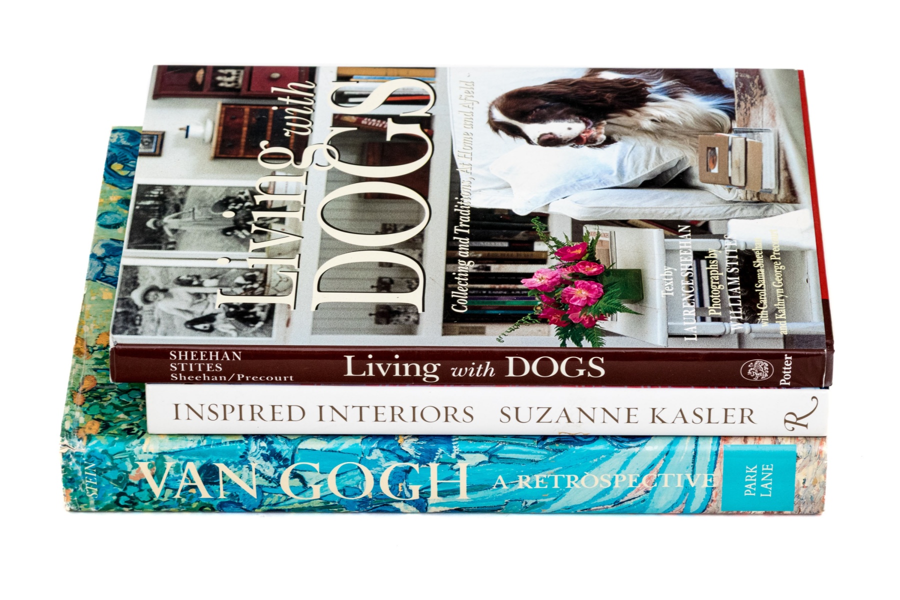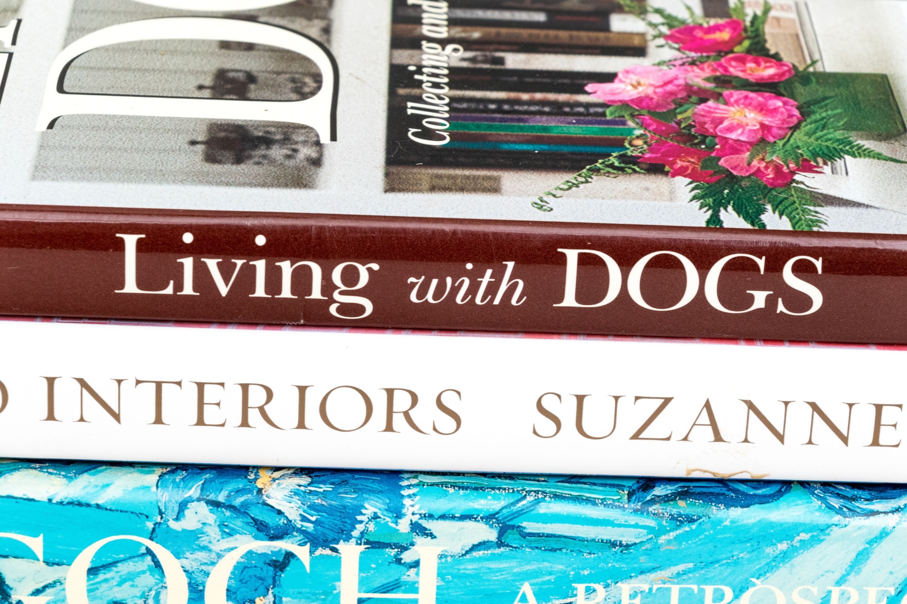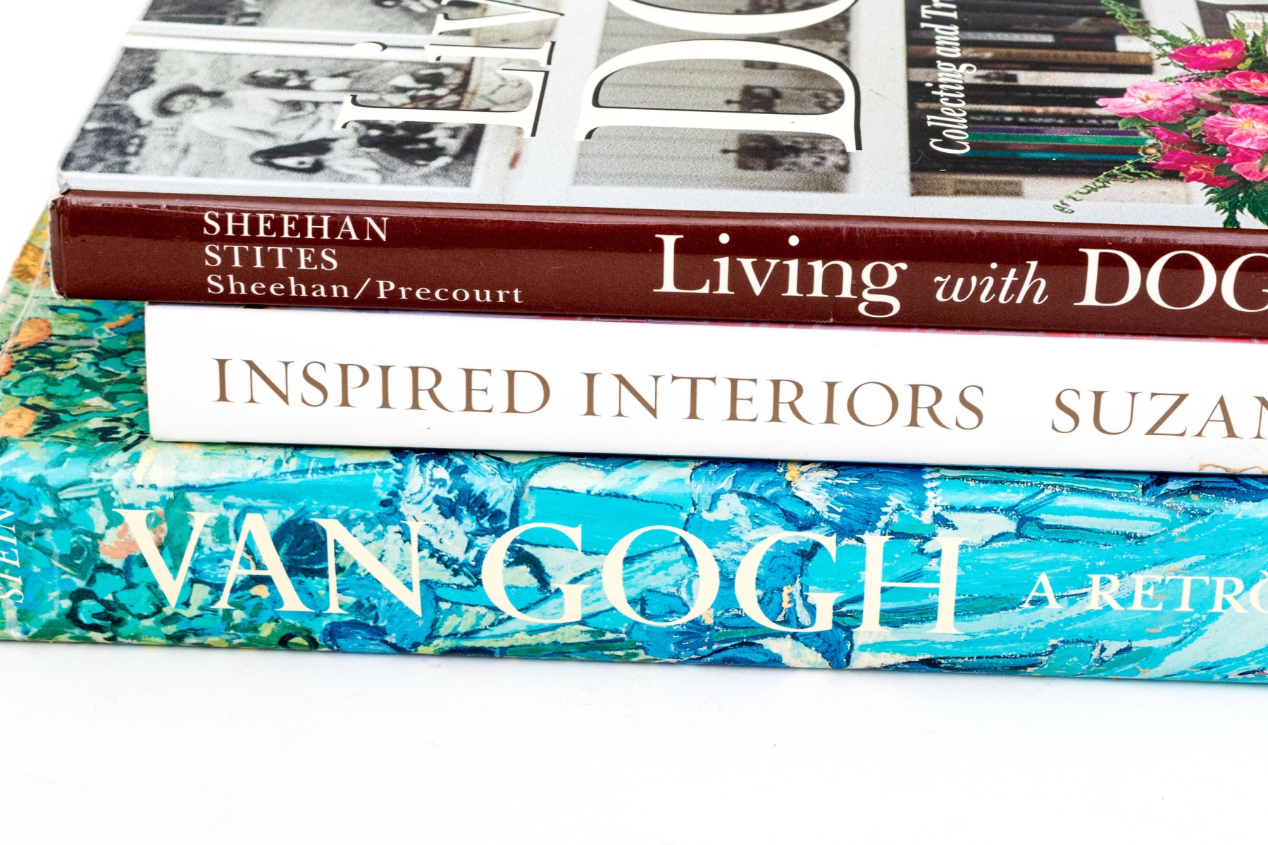 A wonderful trio of coffee table books including Living with Dogs, Inspired Interiors, and Van Gogh: A Retrospective. All with book jackets.
