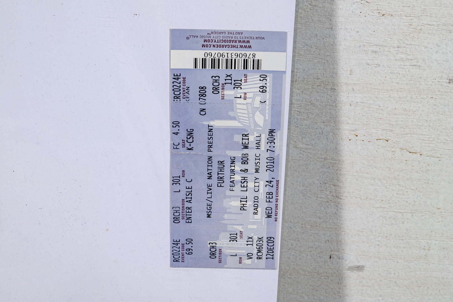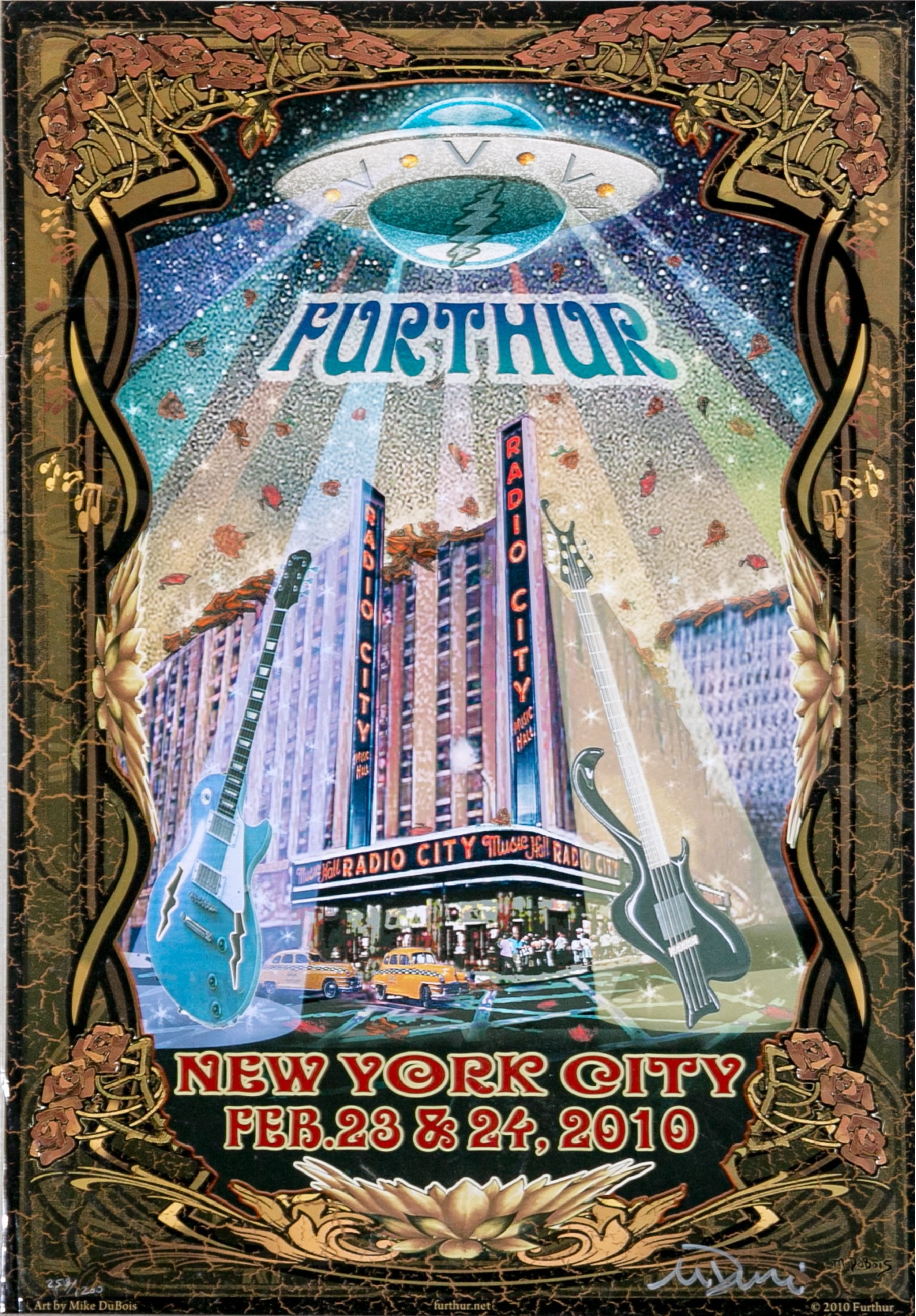 one by the artist Mike Dubois, signed and numbered 258/1200 for Further 2010 performance at Radio City NYC. Wrapped in plastic.