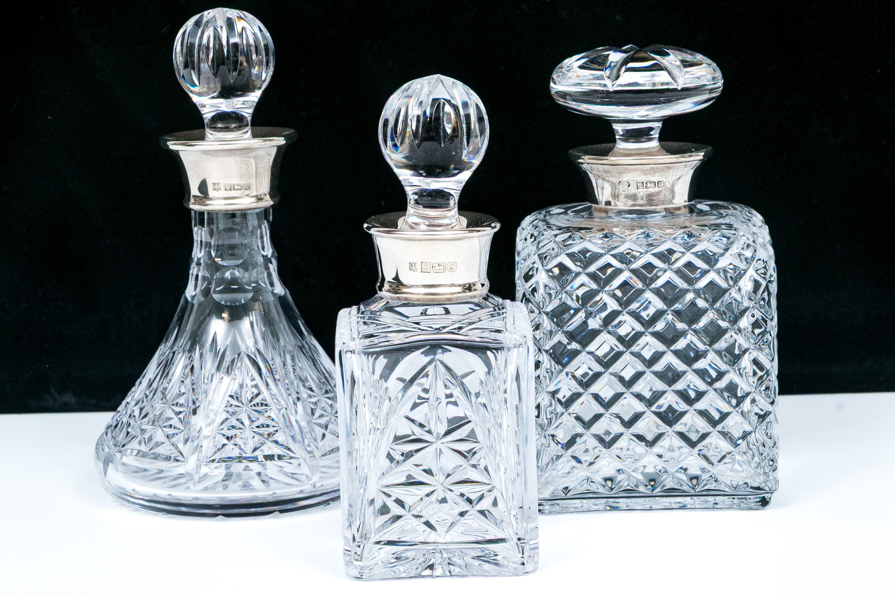 Group Of Three English Cut Glass Decanters Or Perfumes With Sterling Silver Collars #461617. Black Rock Galleries provides high end estate liquidation services through online estate auctions and a 50,000 sq ft designer showroom. estate liquidator, estate sale, online auction, antiques, fine art, liquidation, clean outs, auction, consignment, interior design, fine jewelry, collectibles, appraisals, estate appraisals, estate services, decor, furniture, furniture consignment, antique center, consignment shop. We offer appraisal services and specialize in fine art, jewelry, antiques and decorative arts. Sell with us. Black Rock Galleries is the tri-state's largest estate liquidator serving New England and the greater New York City area. We are the trusted source for expert appraisals, auction services, estate sales, and consignments. Black Rock Galleries is the east coast's largest and most trusted estate liquidator, with locations in Connecticut, greater Boston, MA and Raleigh, NC, Fairfield, Southport, Apex, TX. We are the best source for expert appraisals, auction services, estate sales and consignments. We have served thousands of families and estates with compassion, professionalism and expertise. BRG works with attorneys, executors, realtors and families to bring the greatest return on personal and estate property in the current market. Our unique combination of services make us the easy choice to get the job done in a timely and stress-free manner. We are with you from the initial consultation to the final clean out. Our house-built online auction software platform offers clients a dynamic approach to liquidating their personal property. This venue is most successful in bringing the best return with the least amount of disruption for our clients. See our services page for a complete description of this offering. Group Of Three English Cut Glass Decanters Or Perfumes With Sterling Silver Collars #461617