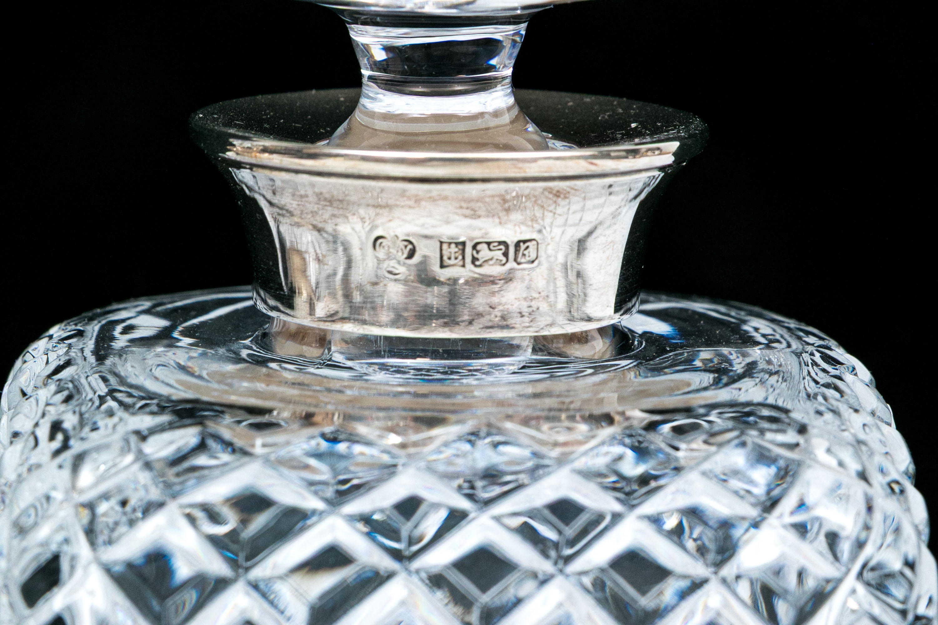 a square decanter with overall diamond pattern