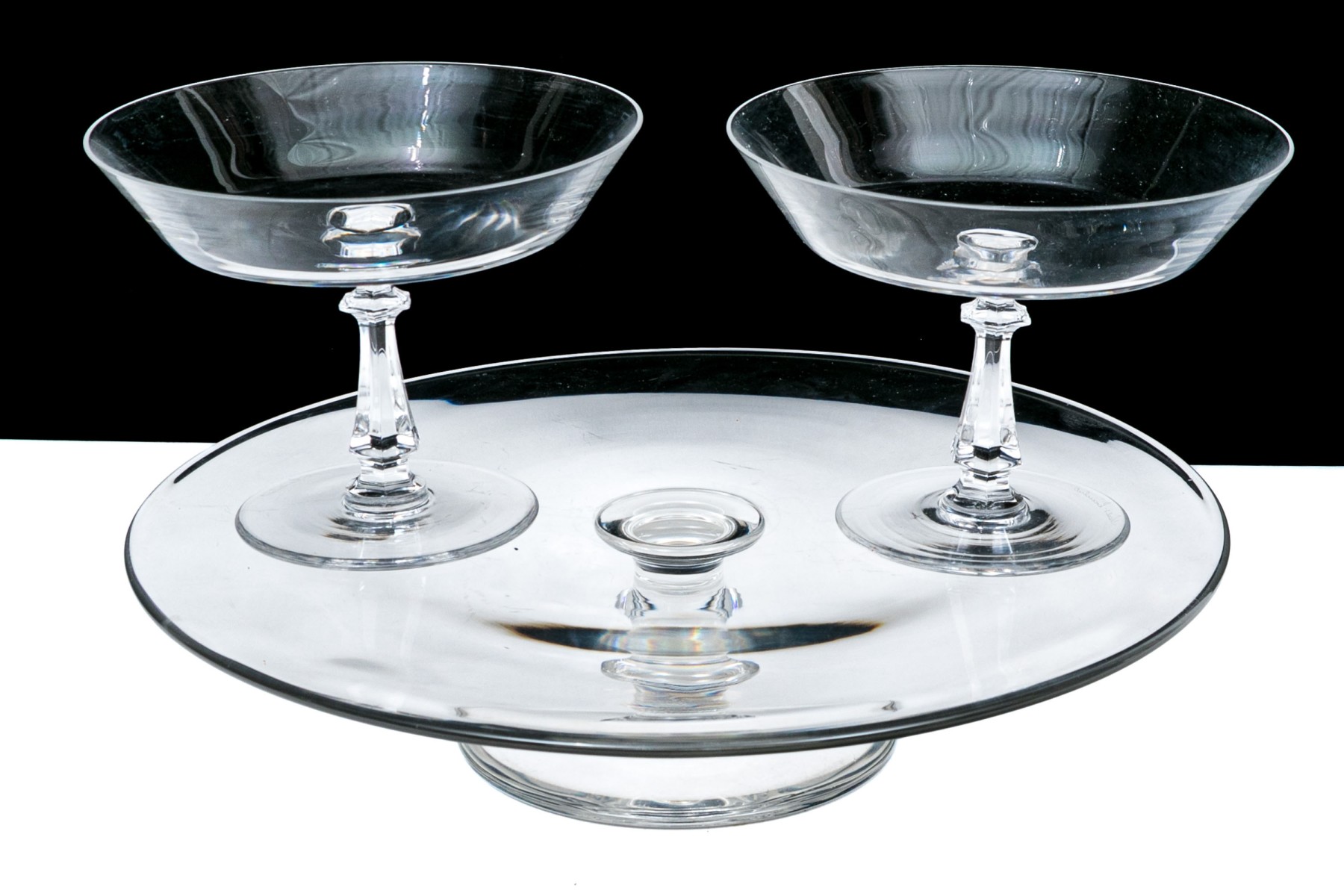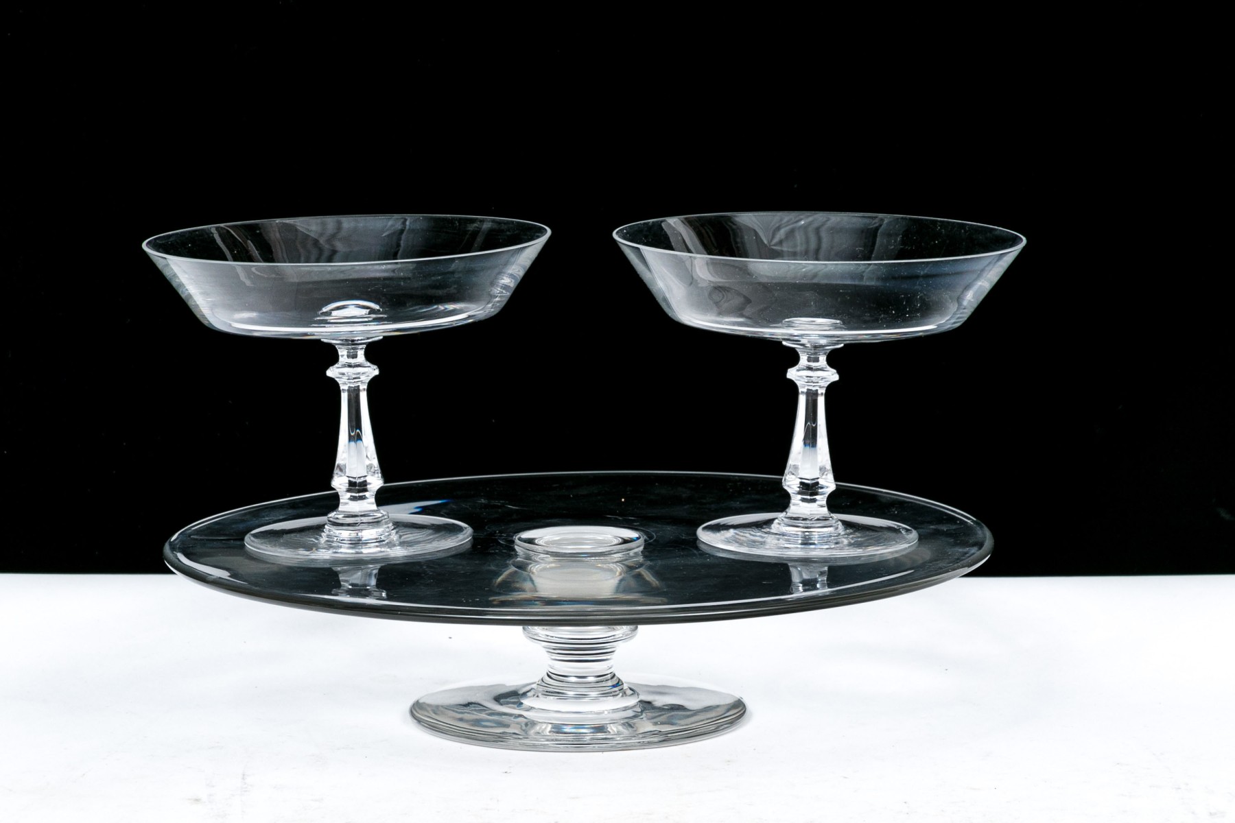 and a pair of compotes with faceted stems, 6" Dia x 4 1/2" H