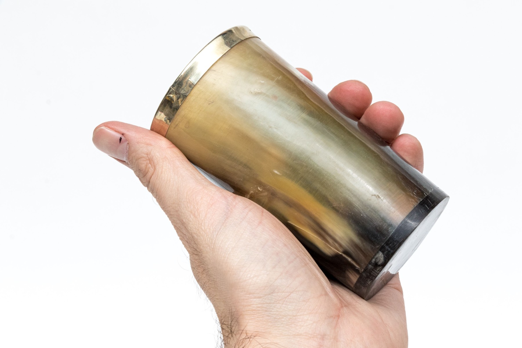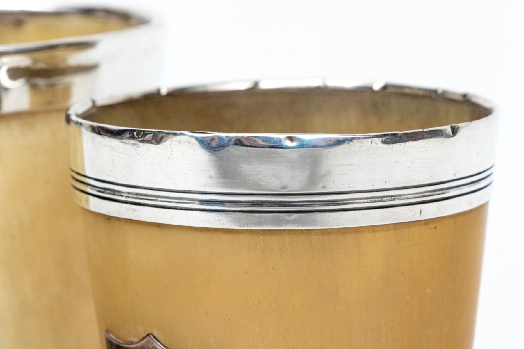 - Cup with a silverplate rim mount.