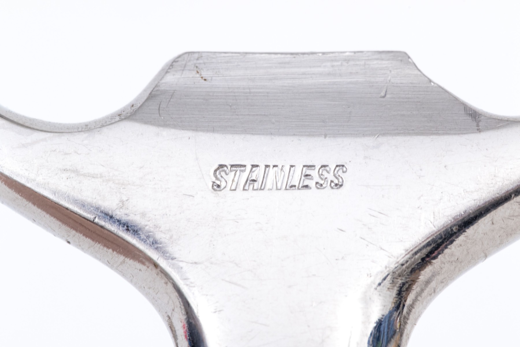With different style handles and two marked stainless on the tops.
