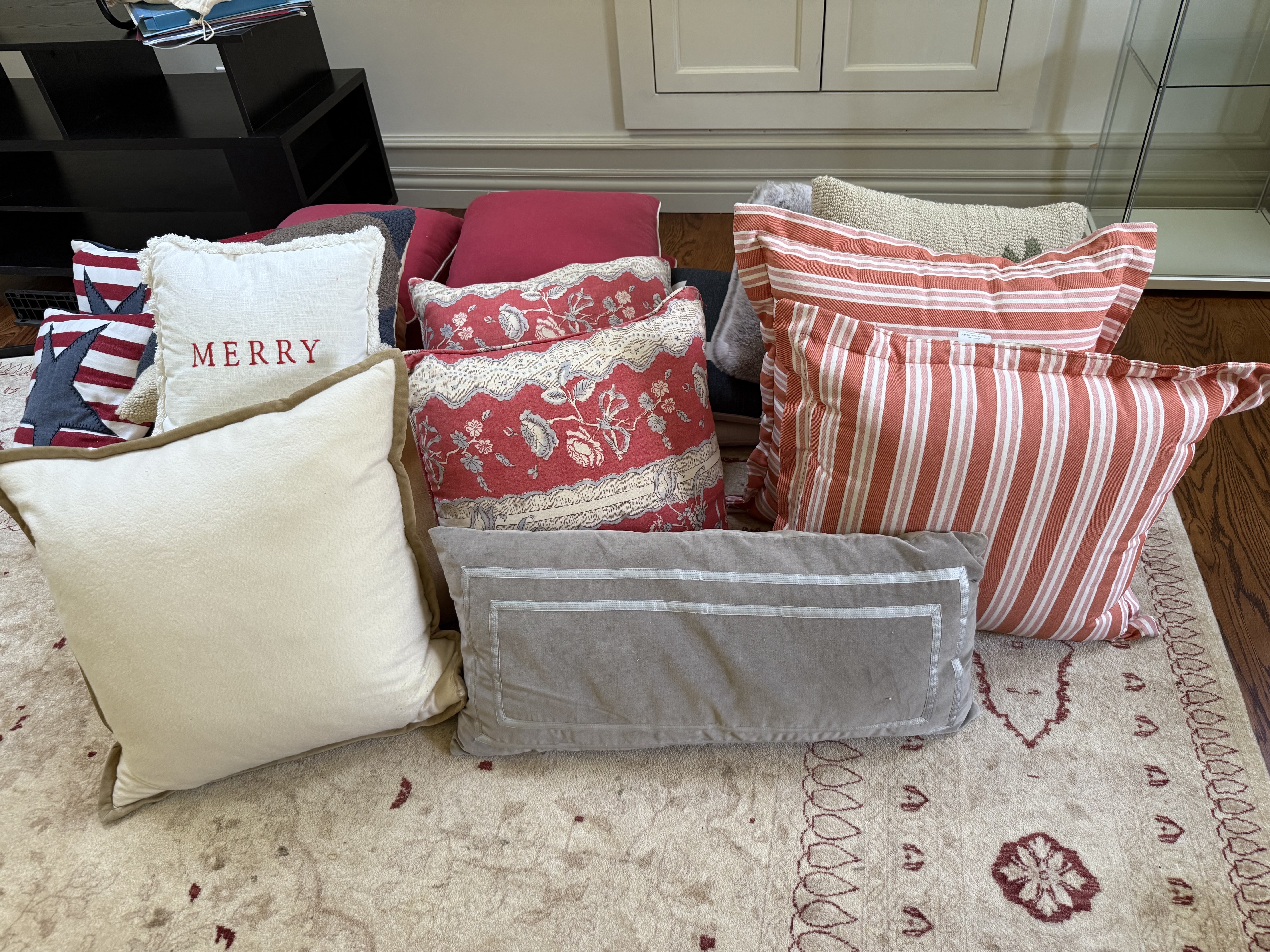 An inviting assortment of quality throw pillows in varied sizes, textures, and hues