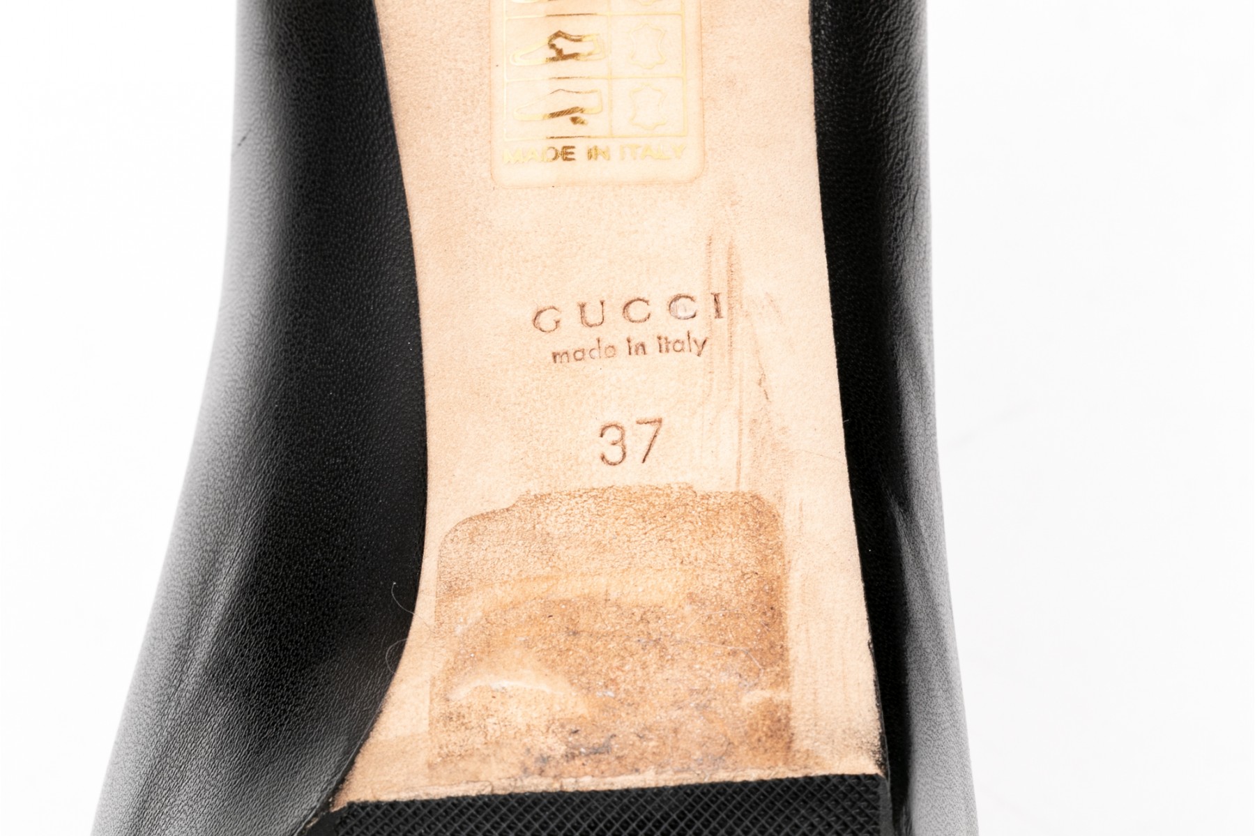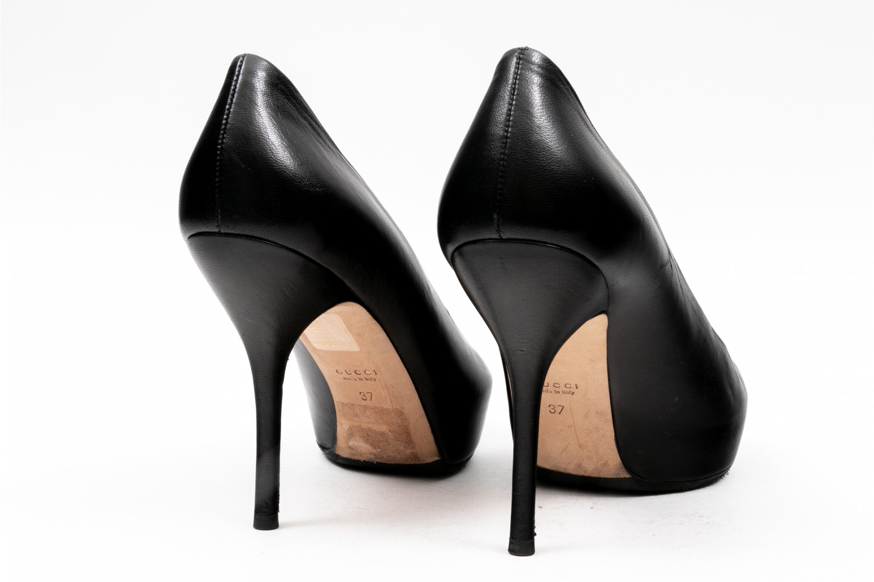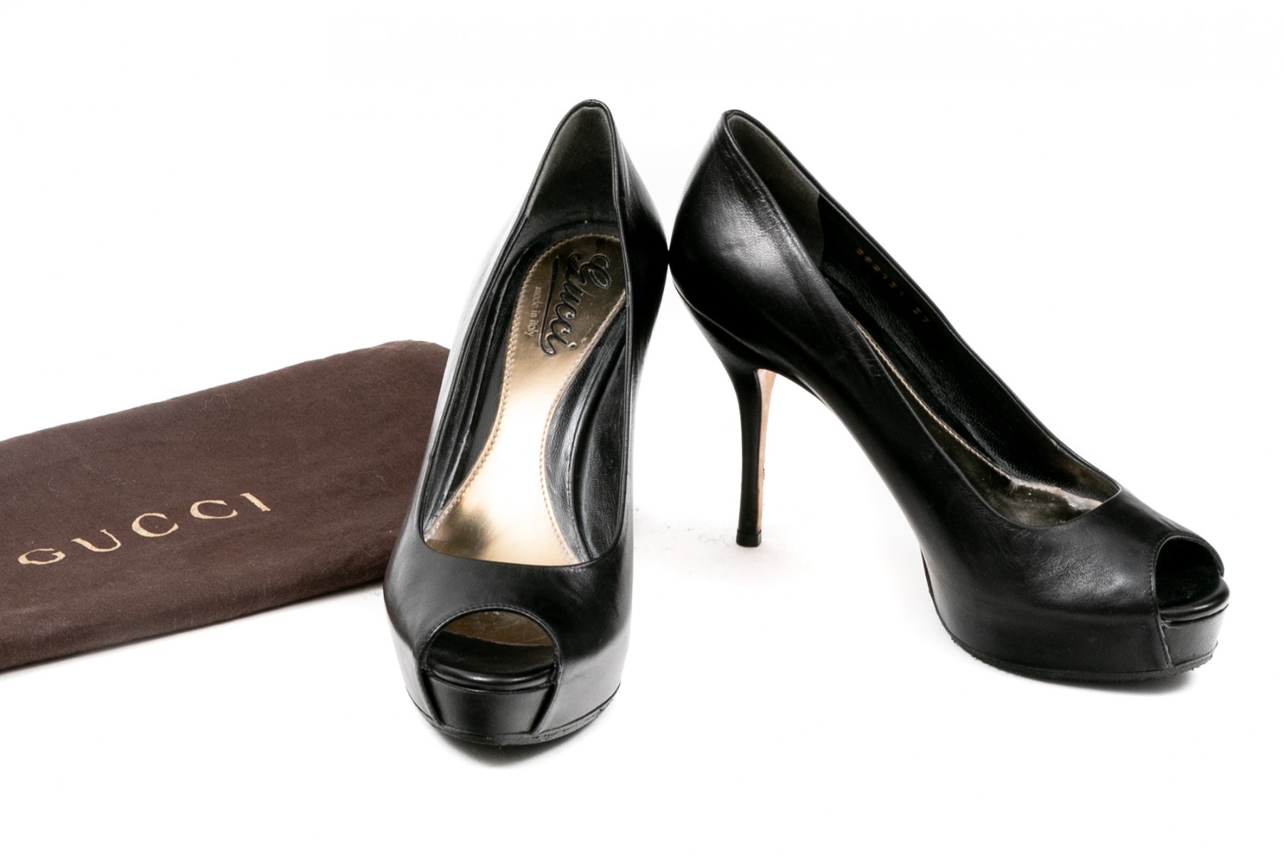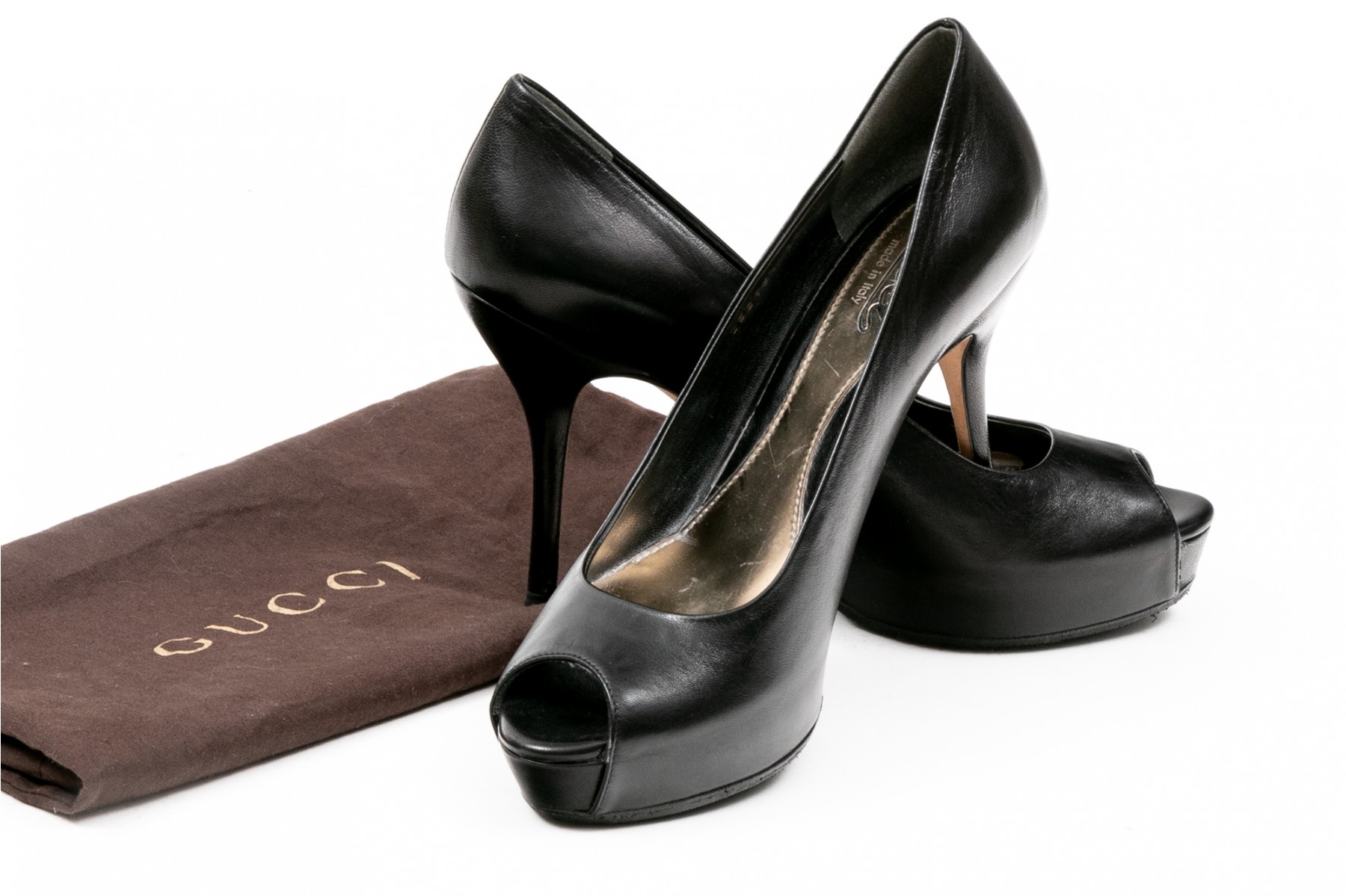 Gucci fabulous black leather peep toe platform pumps, size 37