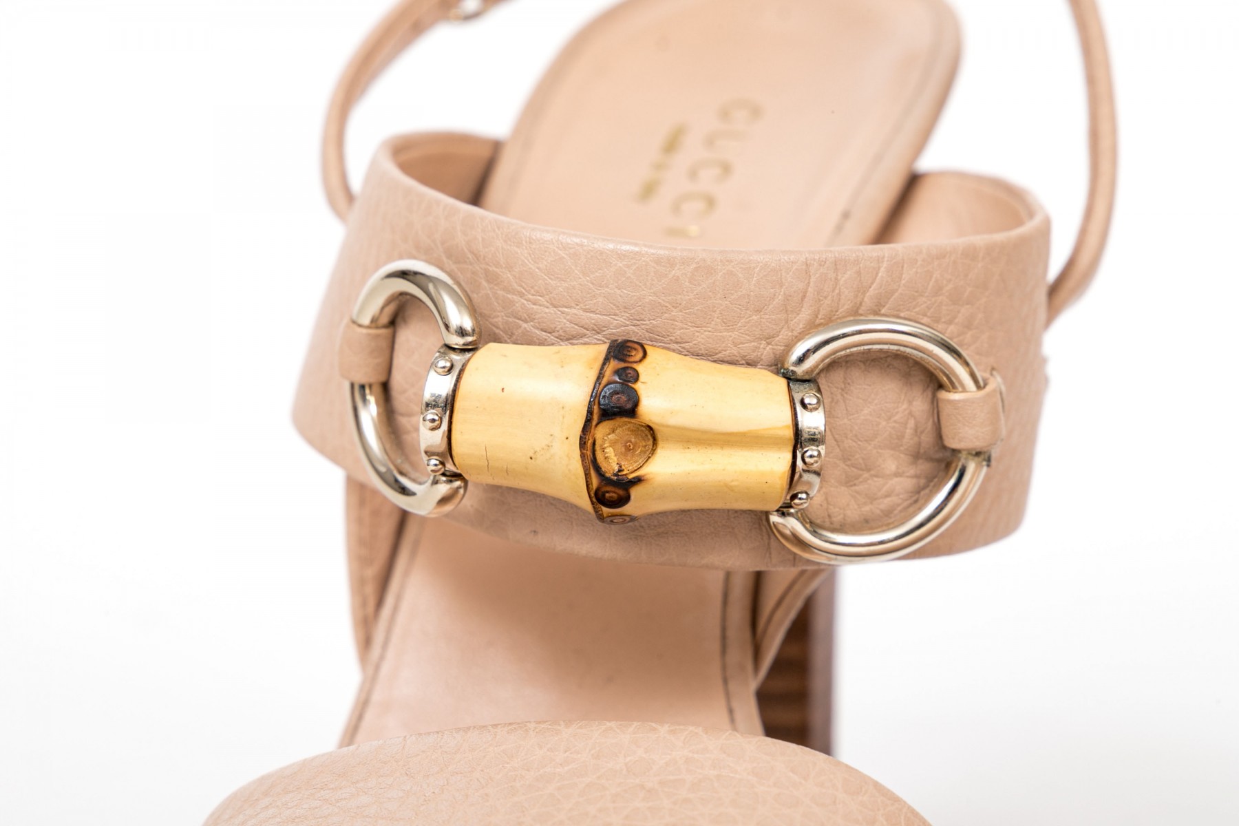 Gucci fabulous nude/blush bamboo horsebit sandals, size 37