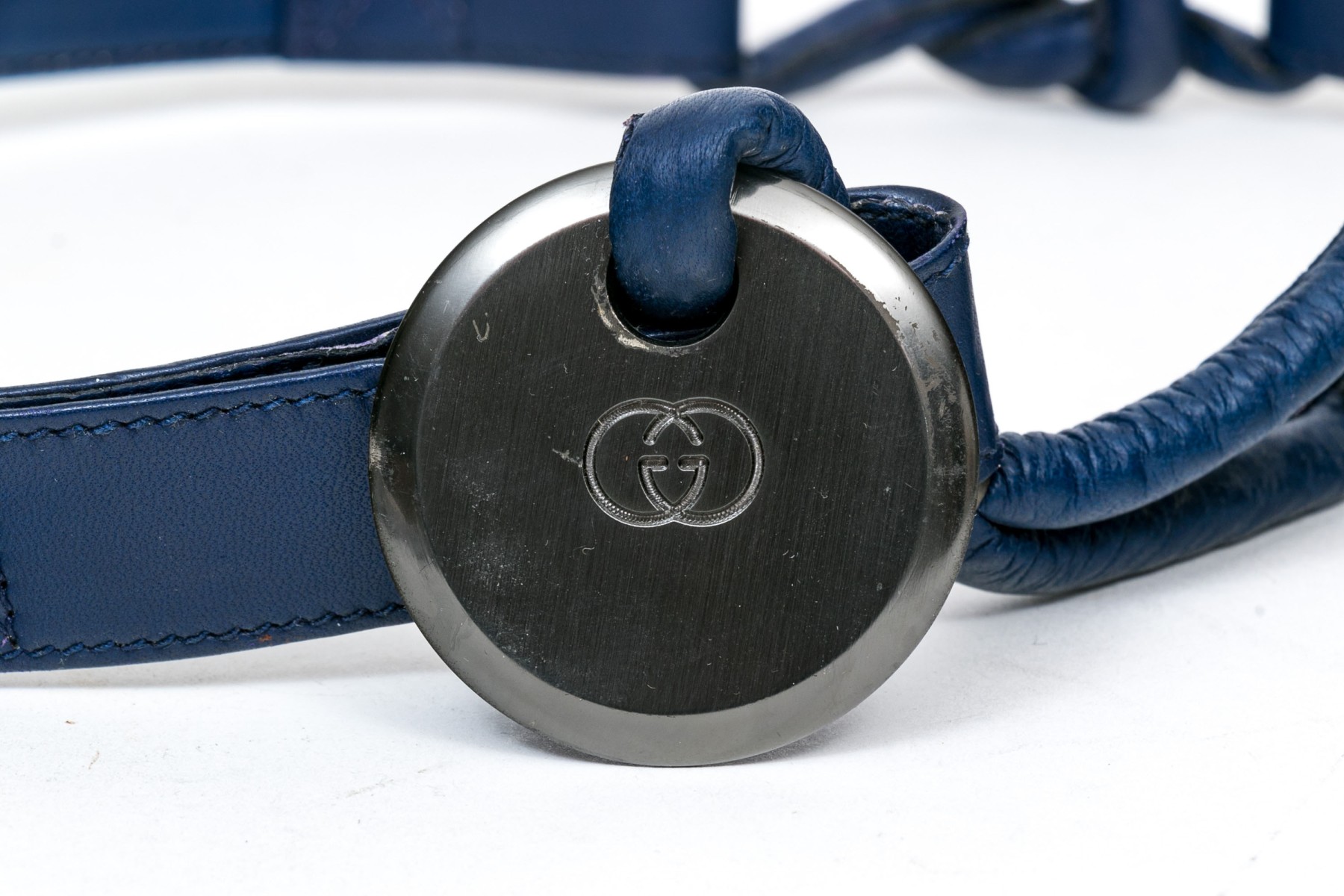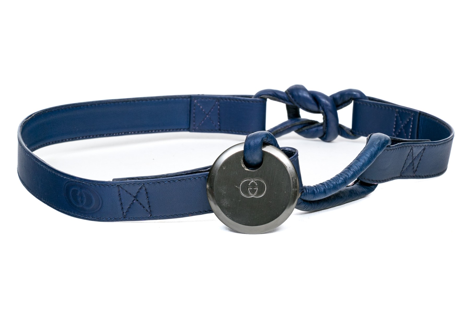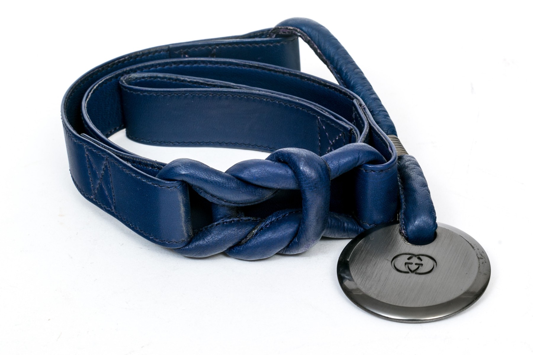 Gucci fabulous vintage blue leather know and gunmetal tone circle belt