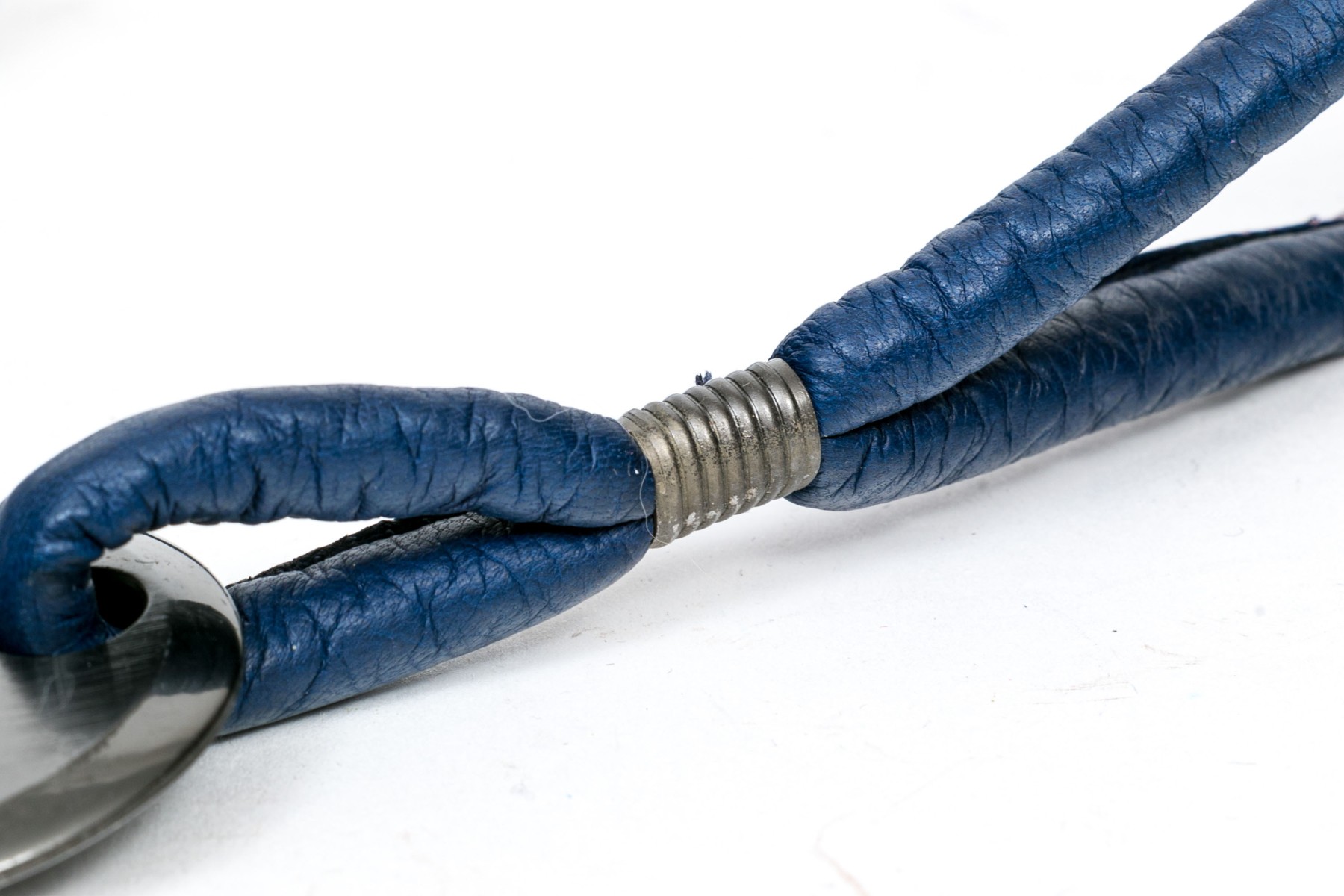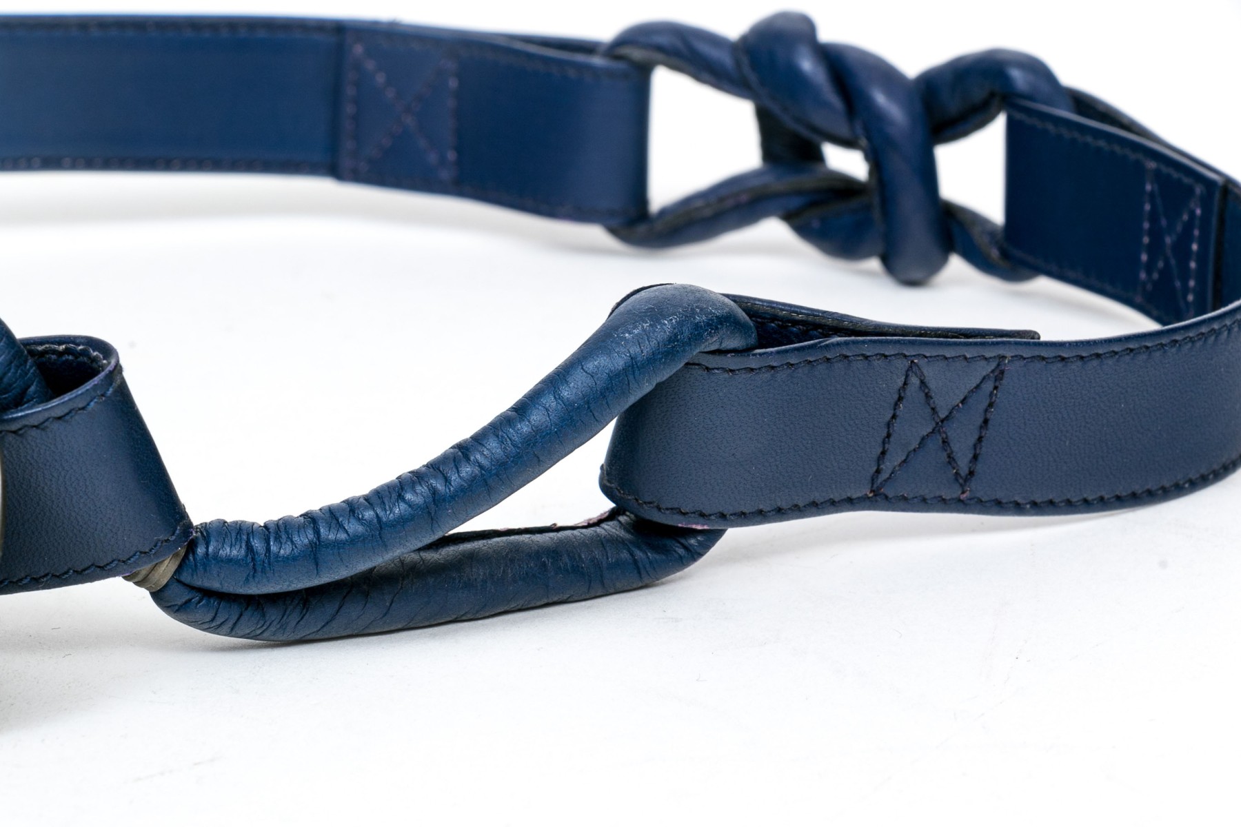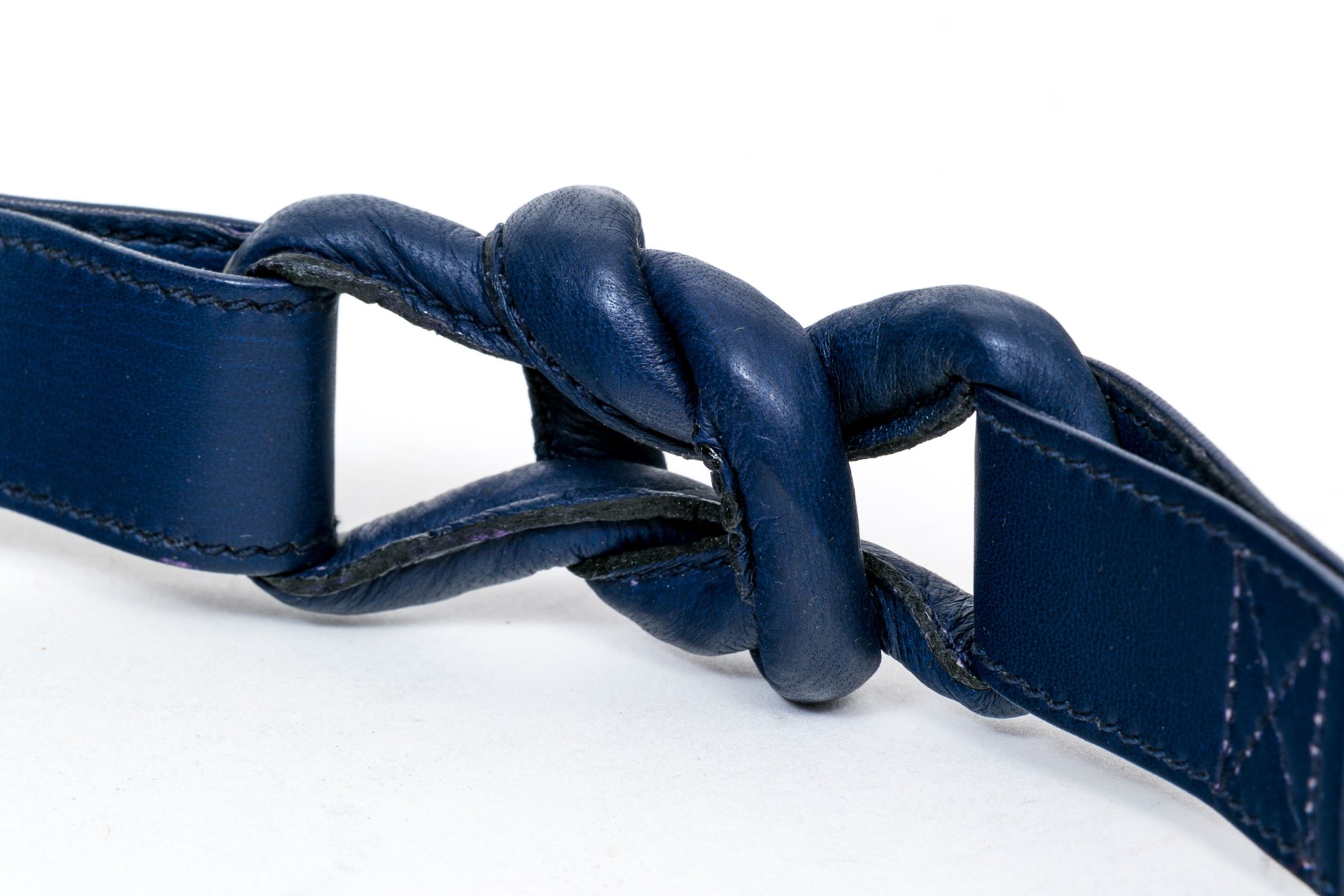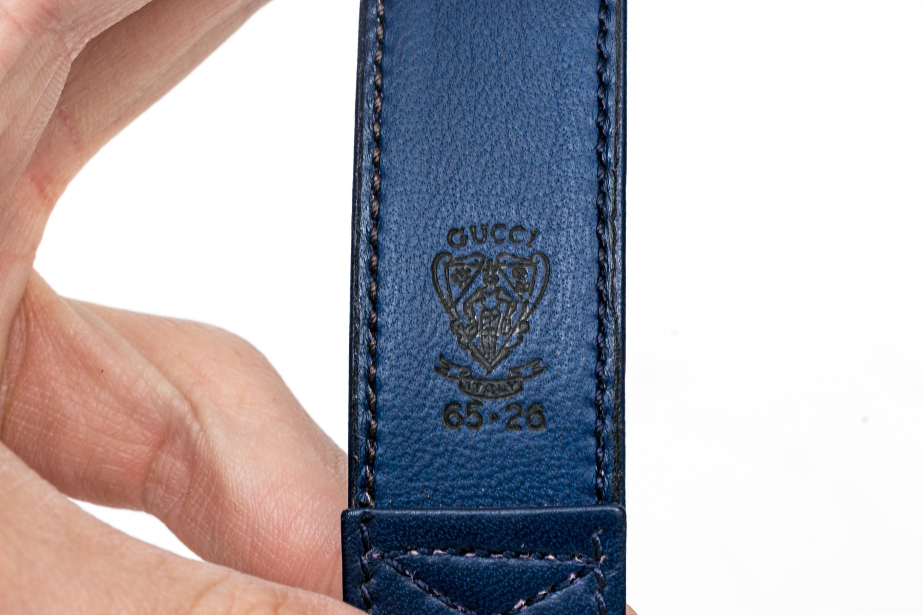 Gucci fabulous vintage blue leather know and gunmetal tone circle belt