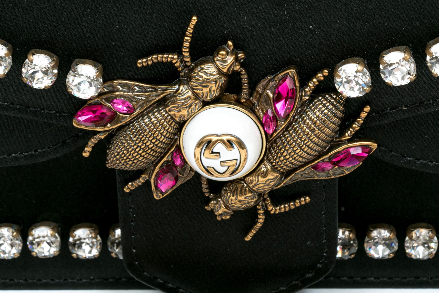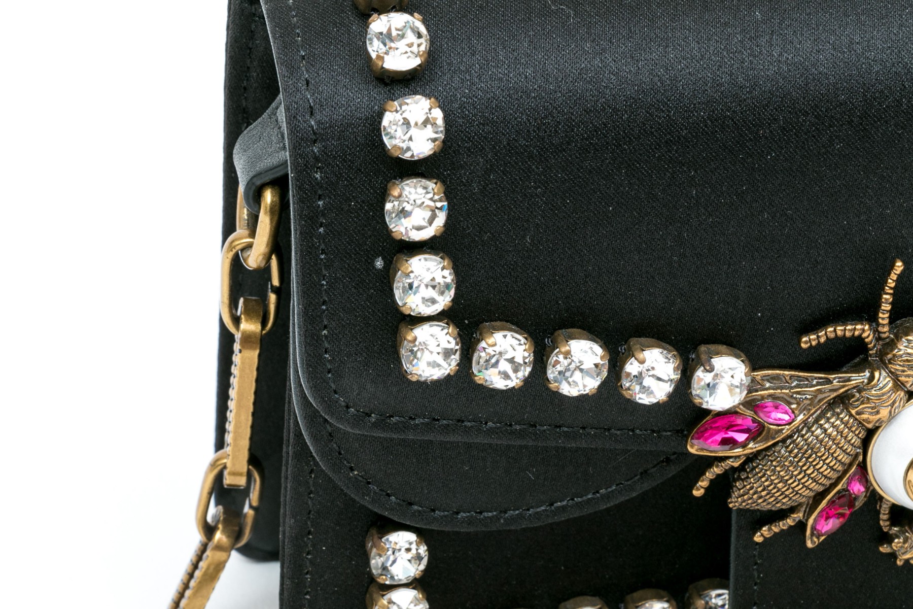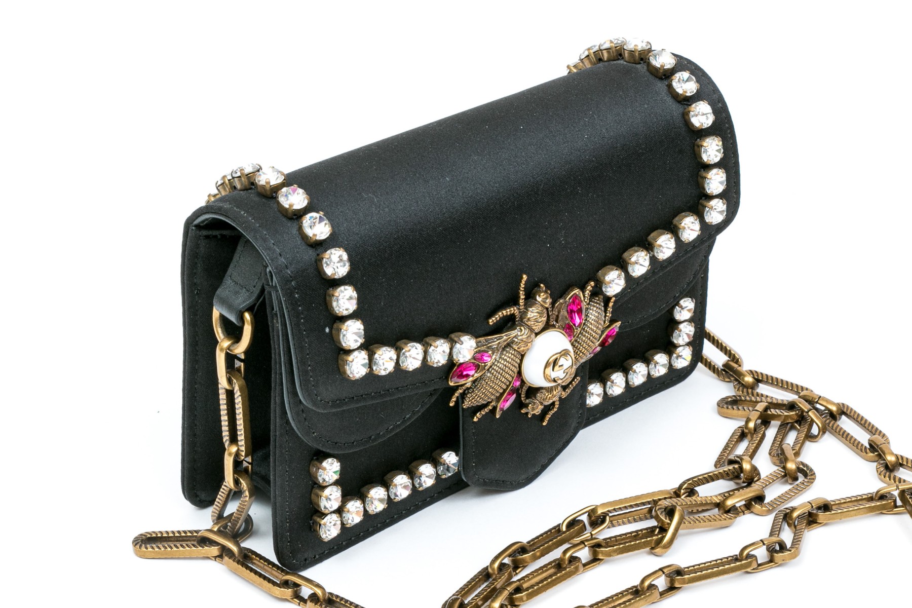 Gucci stunning mini Broadway black satin bedazzled shoulder bag