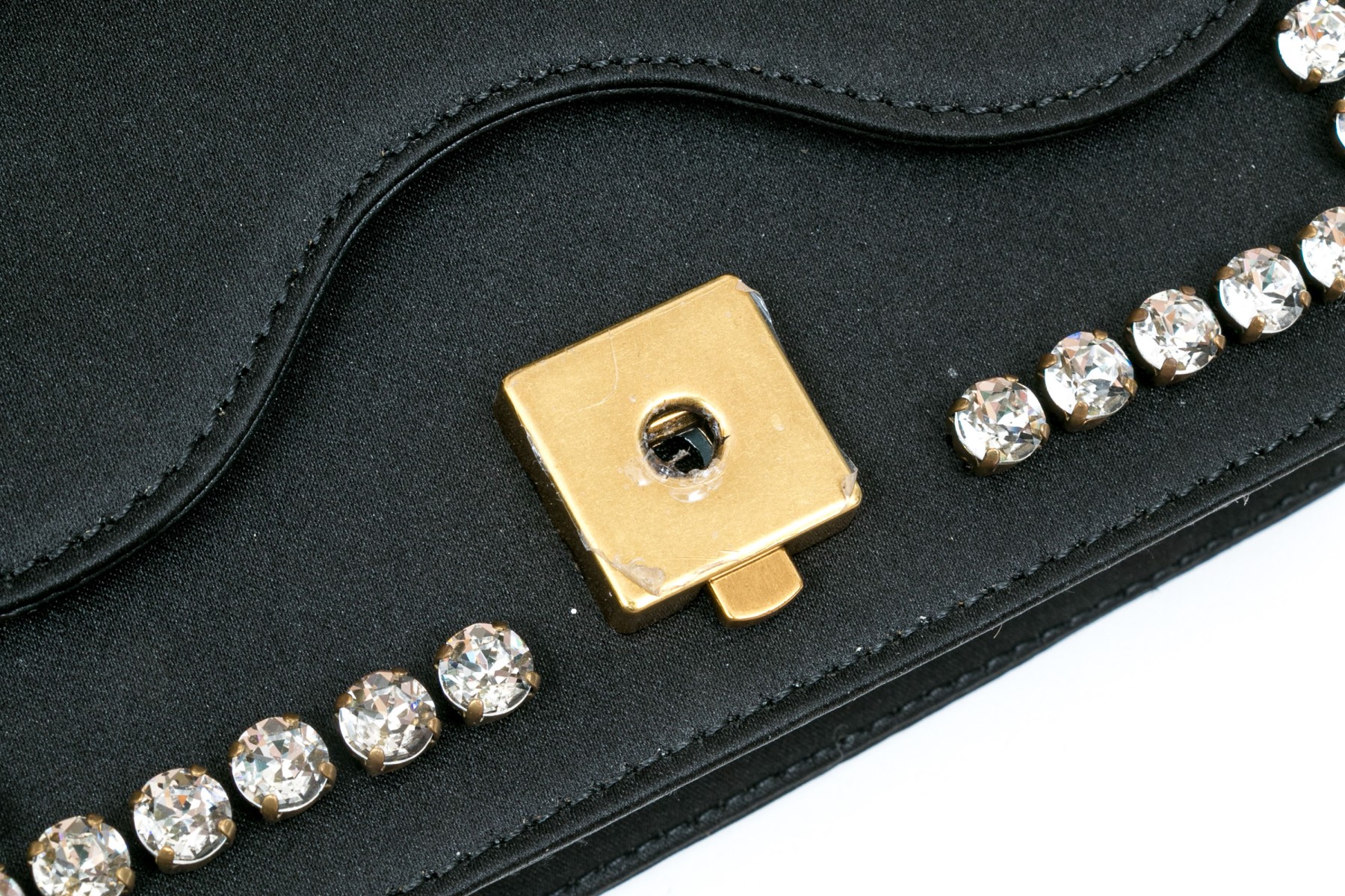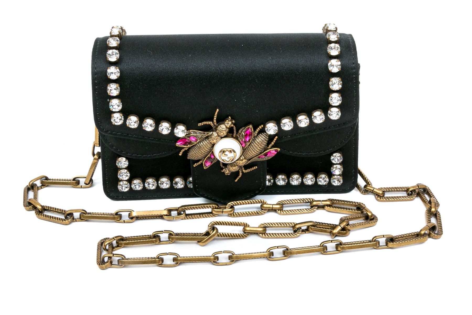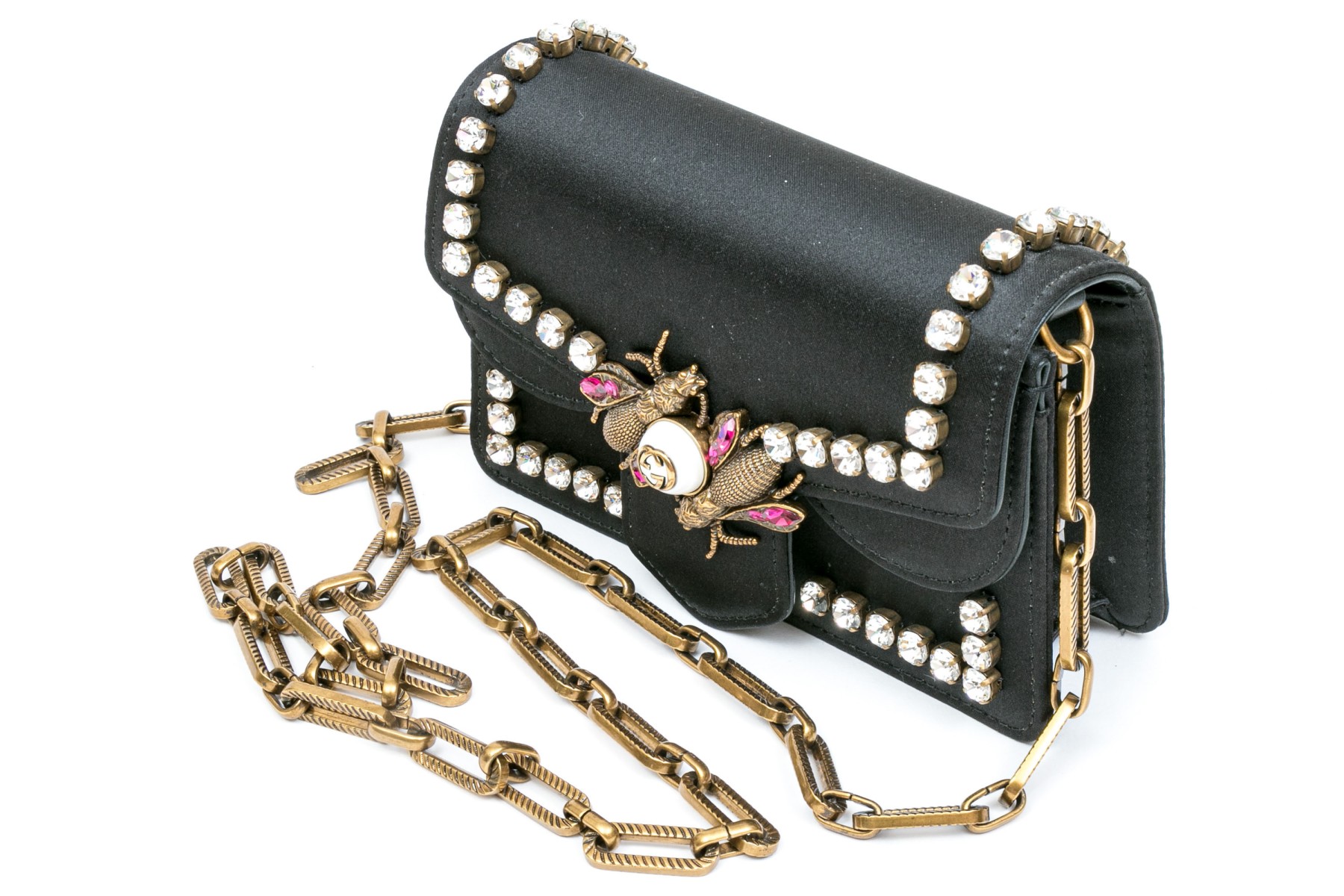 Gucci stunning mini Broadway black satin bedazzled shoulder bag