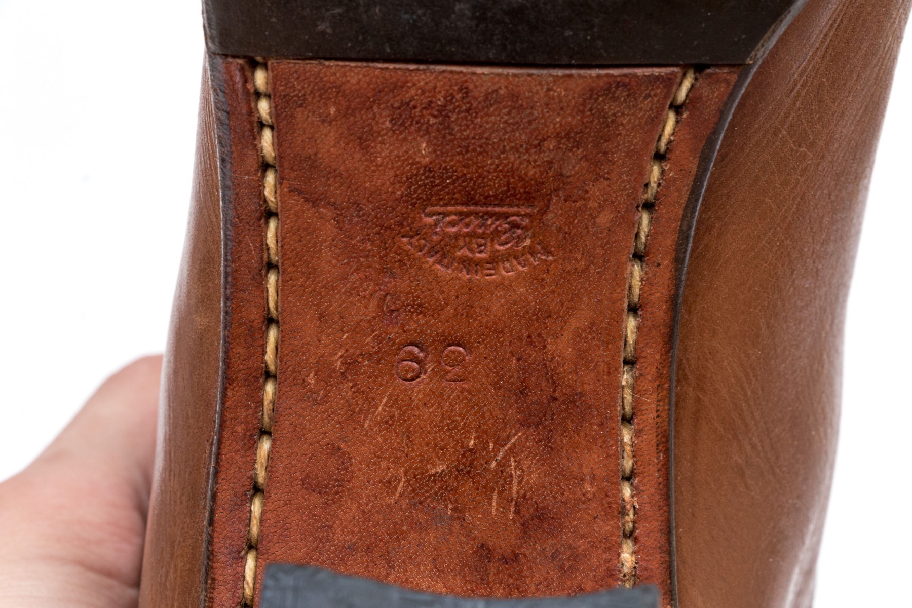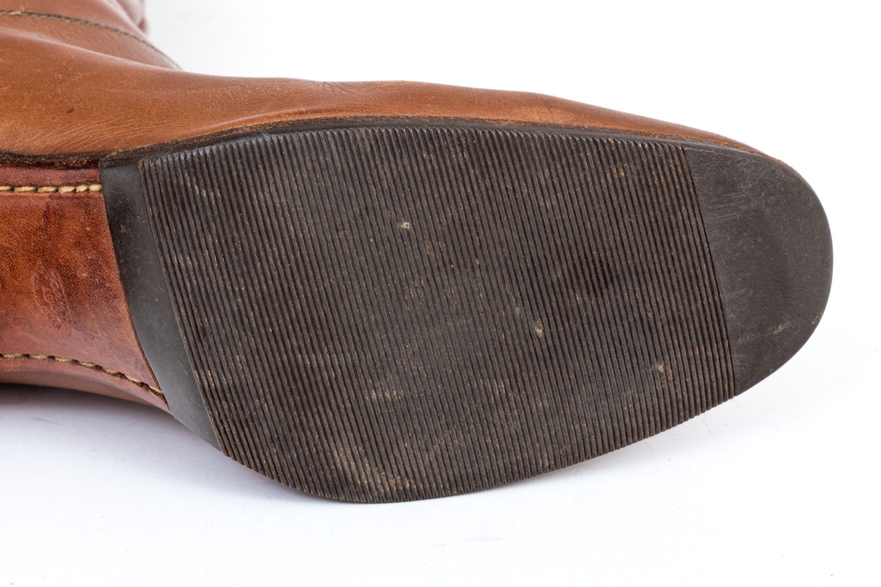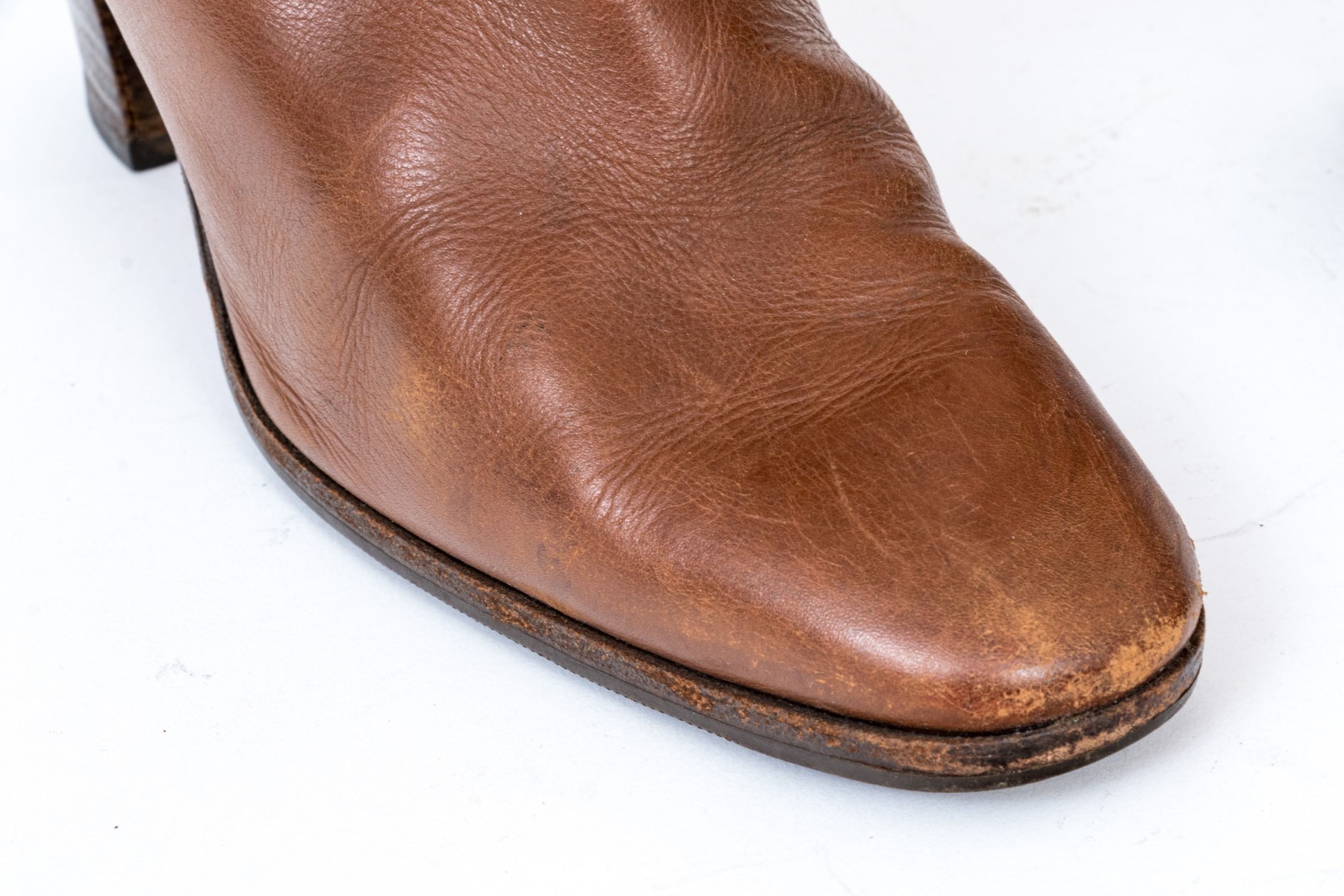 Condition: Wear to shoe tip, scuffs, scratches, some slight discoloring, some staining; wear is commensurate with age and use. Please refer to photography for additional conditions information, as this is considered part of the cataloguing