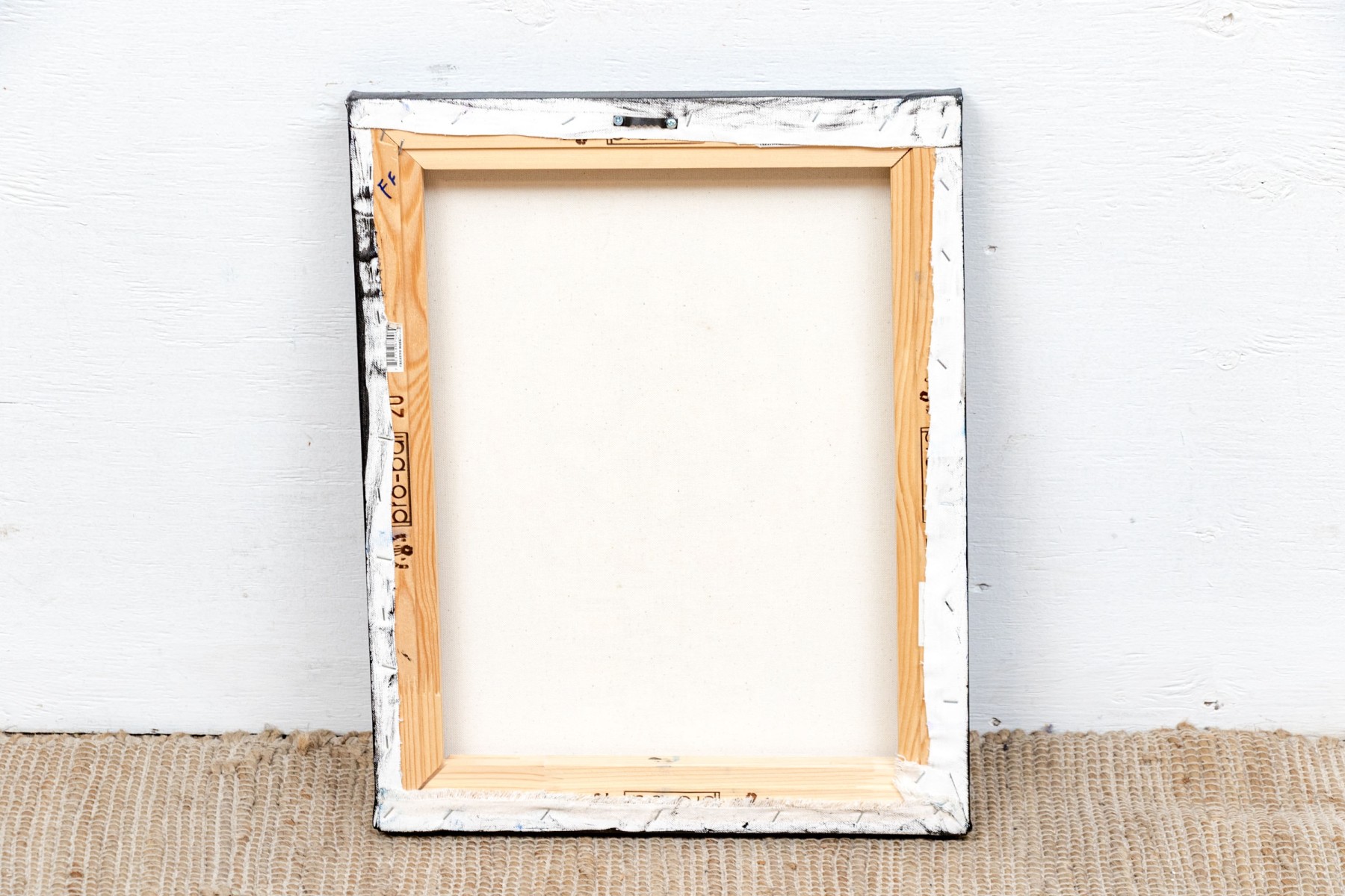 Good, gentle wear around the corners and trim edges where canvas is pulled over the stretcher support but overall in good form.